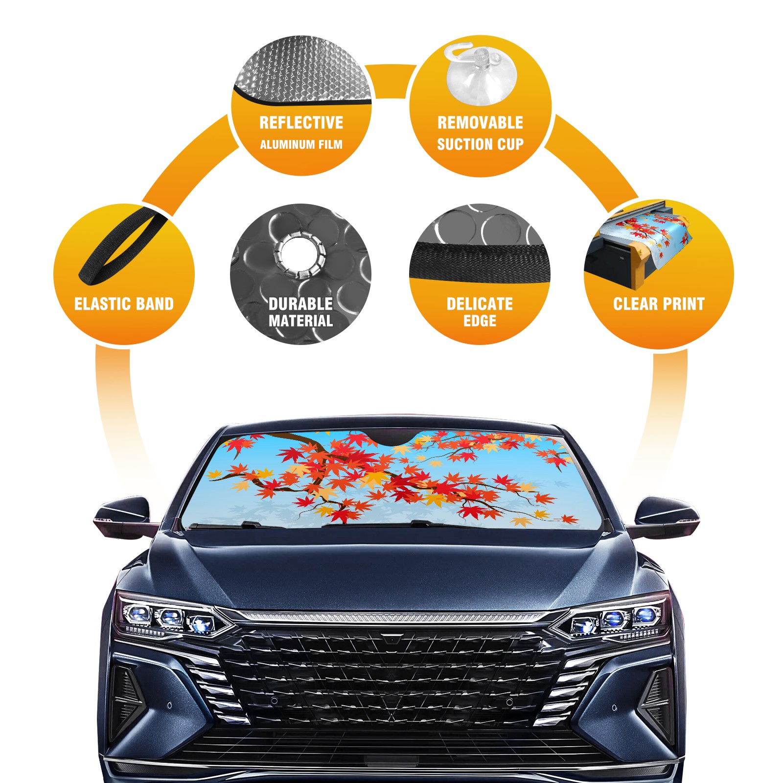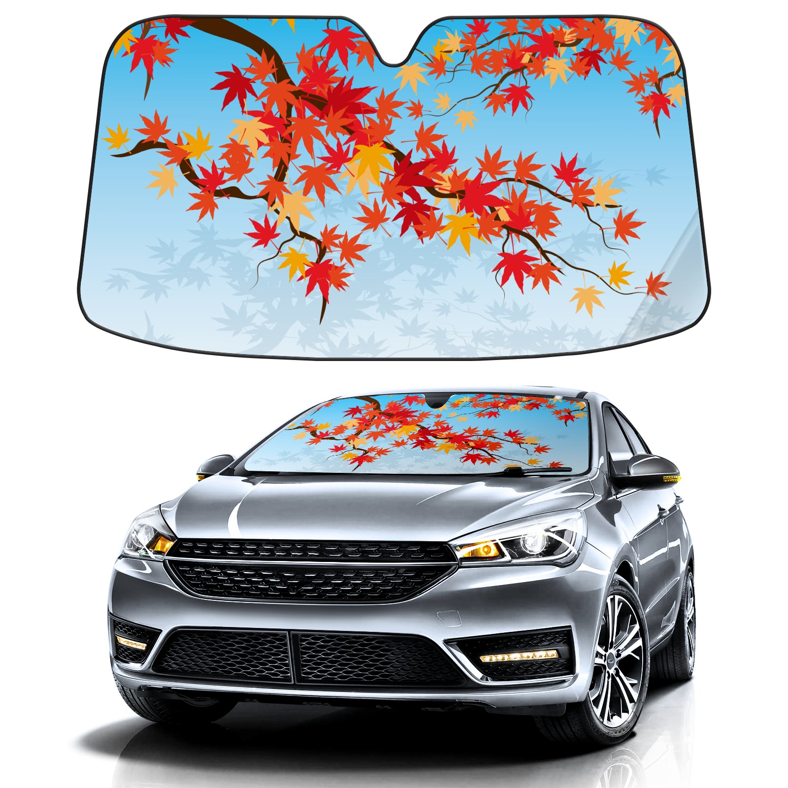 Car Windshield Sun Shade For Front Window Japanese Fall Maple Leaf Blue Sky Foldable Vehicle Windshield Car Sun Visor Covers Automotive Window Protector Car Camping Privacy Sun Blocker