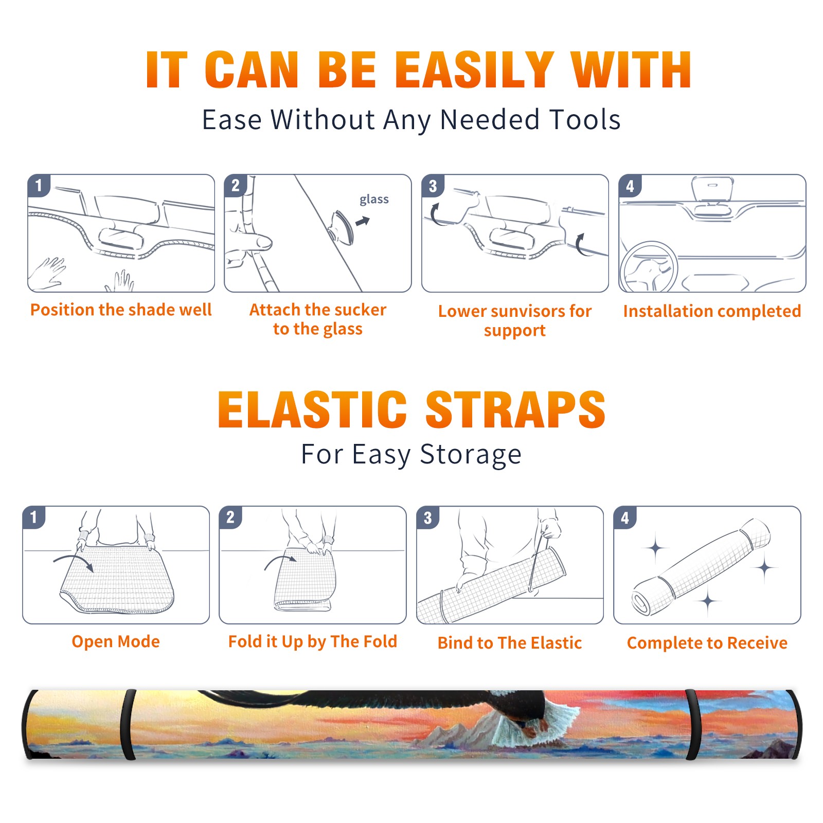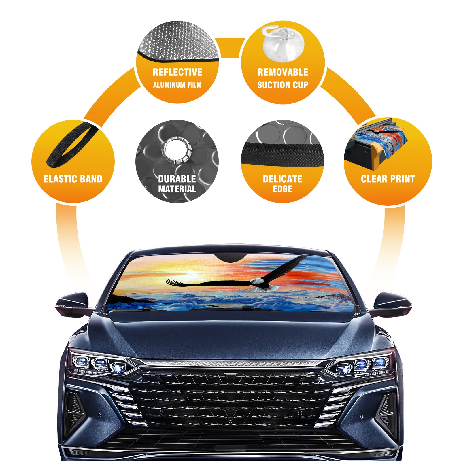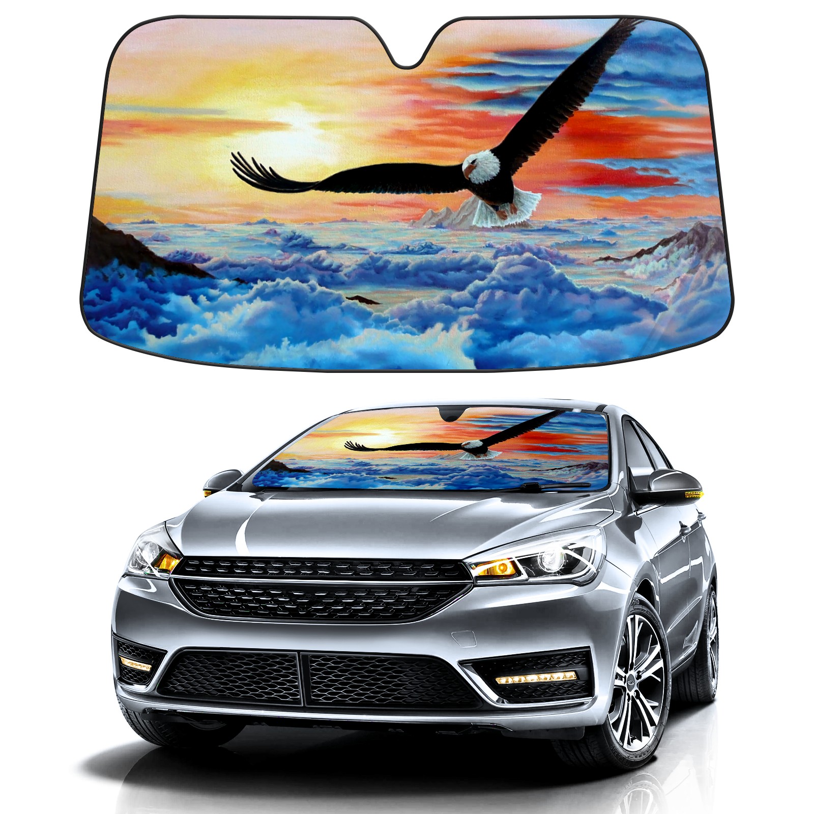 Car Windshield Sun Shade For Front Window Eagle Blue Sky Foldable Vehicle Windshield Car Sun Visor Covers Automotive Window Protector Car Camping Privacy Sun Blocker