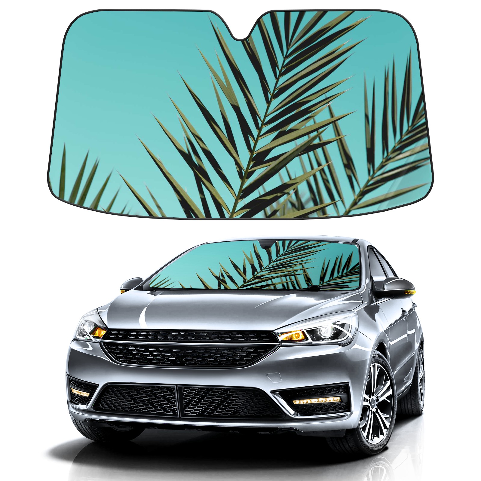 Car Windshield Sun Shade For Front Window Sky Leaves Green Colors Foldable Vehicle Windshield Car Sun Visor Covers Automotive Window Protector Car Camping Privacy Sun Blocker