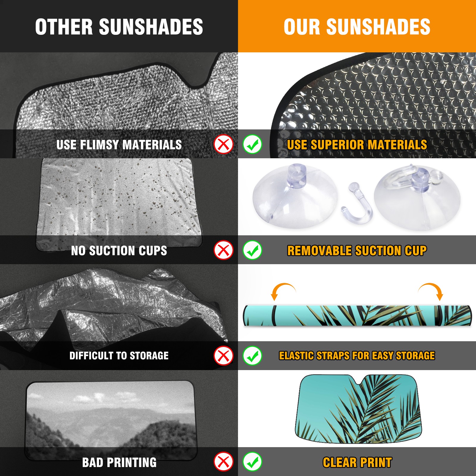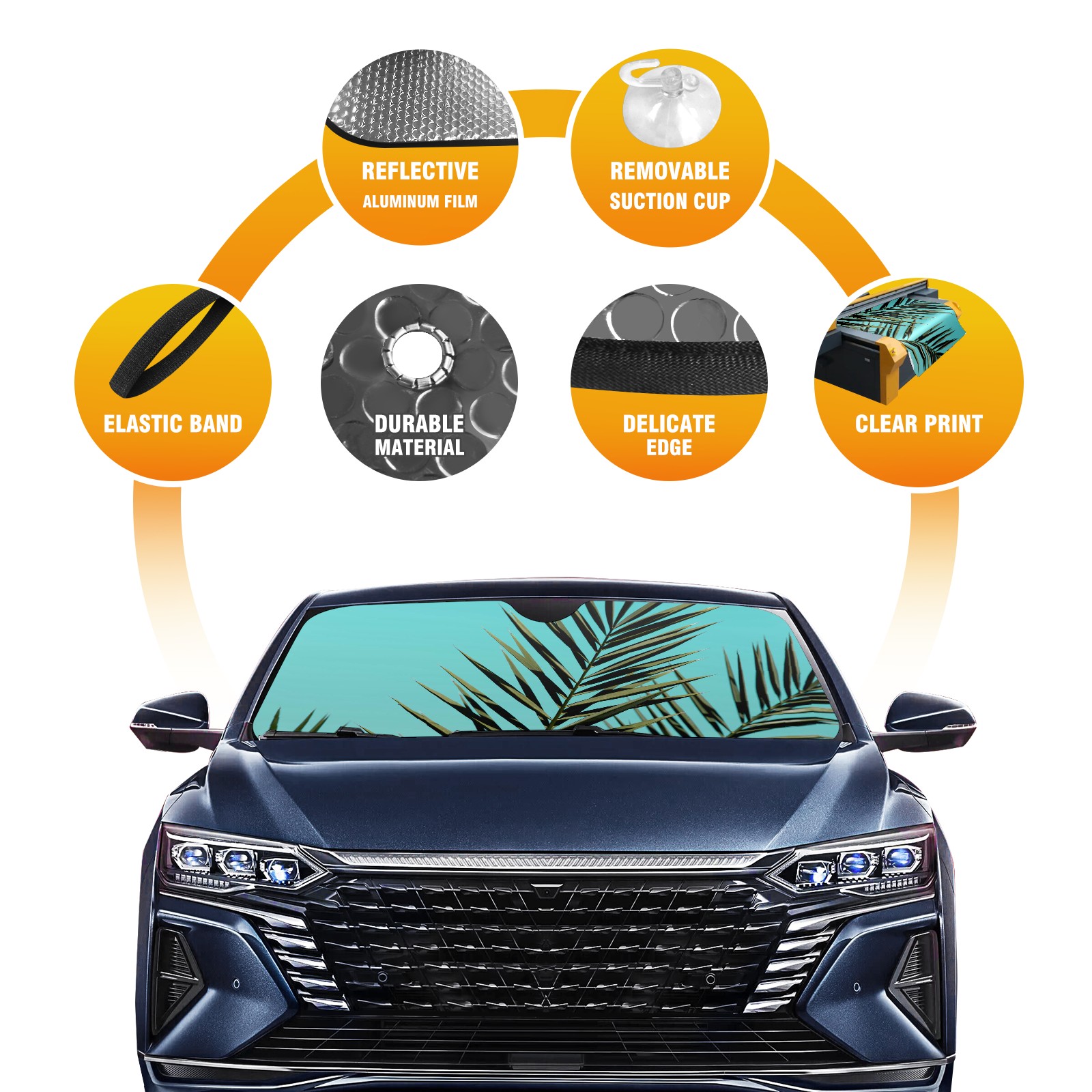 • Diameter /Size 63"L x 33.5"W Made from excellent materials which makes it sturdy and protects the car from the sun. Easy to use and pack. Makes the interior of the car cooler.You can easily stash the sunshade in the storage bag or store long term.It open and closes easy. Also the leather storage bag is durable and easy to put the umbrella back into.This windshield sunshade provides complete coverage and keeps your car interior cool under direct sun. It is easy to open and position under the windshield and around the rear-view mirror. Makes Your Car Easy To Identify, Perfect For Finding Your Car In Crowded Parking Lots And Garages.Great Choice: It Is A Great Gift For Dad, Boyfriend, Brother, Brother And Uncle, Friends, Classmates, Family And So On. Notice: Due To Difference Computer Monitors, The Color Maybe Slightly Different From Picture. As Different Measurement Methods, Measurement Data Will Float Within 2%.I Hope You Understand. If You Have Any Question About The Item Please Do Not Hesitate To Contact Us Immediately And We Will Give You A Satisfactory Reply Within 24 Hours.