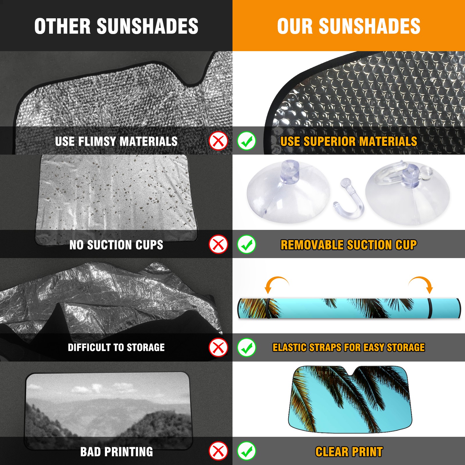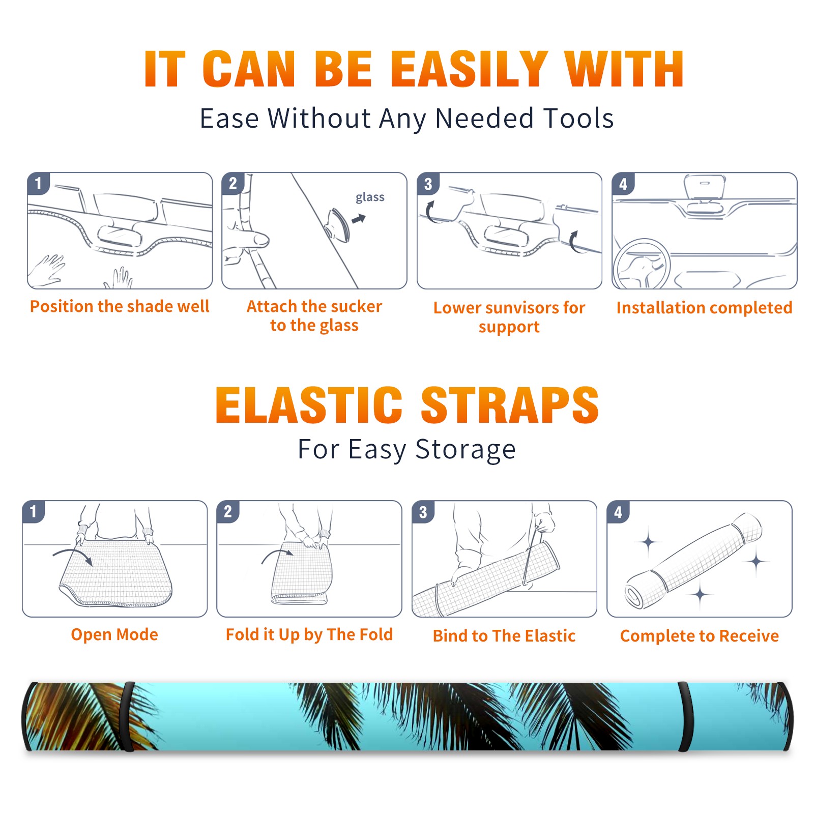 • Diameter /Size 63"L x 33.5"W Made from excellent materials which makes it sturdy and protects the car from the sun. Easy to use and pack. Makes the interior of the car cooler.You can easily stash the sunshade in the storage bag or store long term.It open and closes easy. Also the leather storage bag is durable and easy to put the umbrella back into.This windshield sunshade provides complete coverage and keeps your car interior cool under direct sun. It is easy to open and position under the windshield and around the rear-view mirror. Makes Your Car Easy To Identify, Perfect For Finding Your Car In Crowded Parking Lots And Garages.Great Choice: It Is A Great Gift For Dad, Boyfriend, Brother, Brother And Uncle, Friends, Classmates, Family And So On. Notice: Due To Difference Computer Monitors, The Color Maybe Slightly Different From Picture. As Different Measurement Methods, Measurement Data Will Float Within 2%.I Hope You Understand. If You Have Any Question About The Item Please Do Not Hesitate To Contact Us Immediately And We Will Give You A Satisfactory Reply Within 24 Hours.