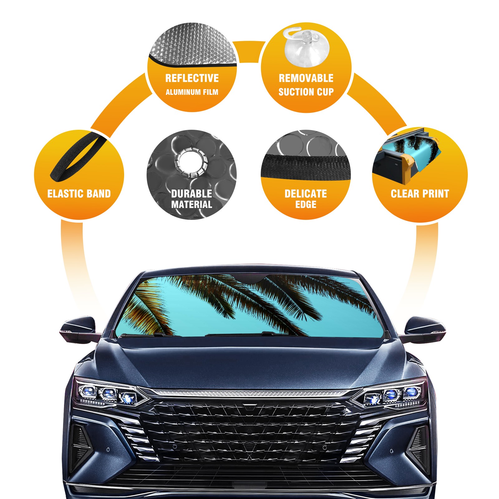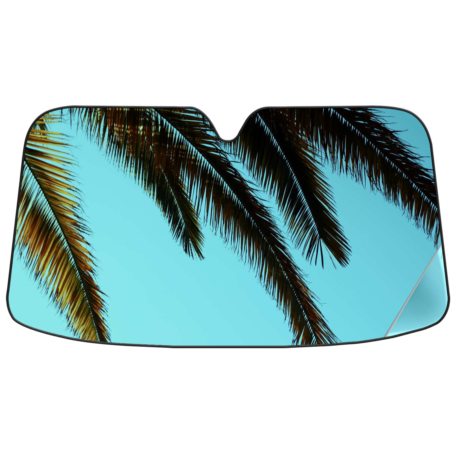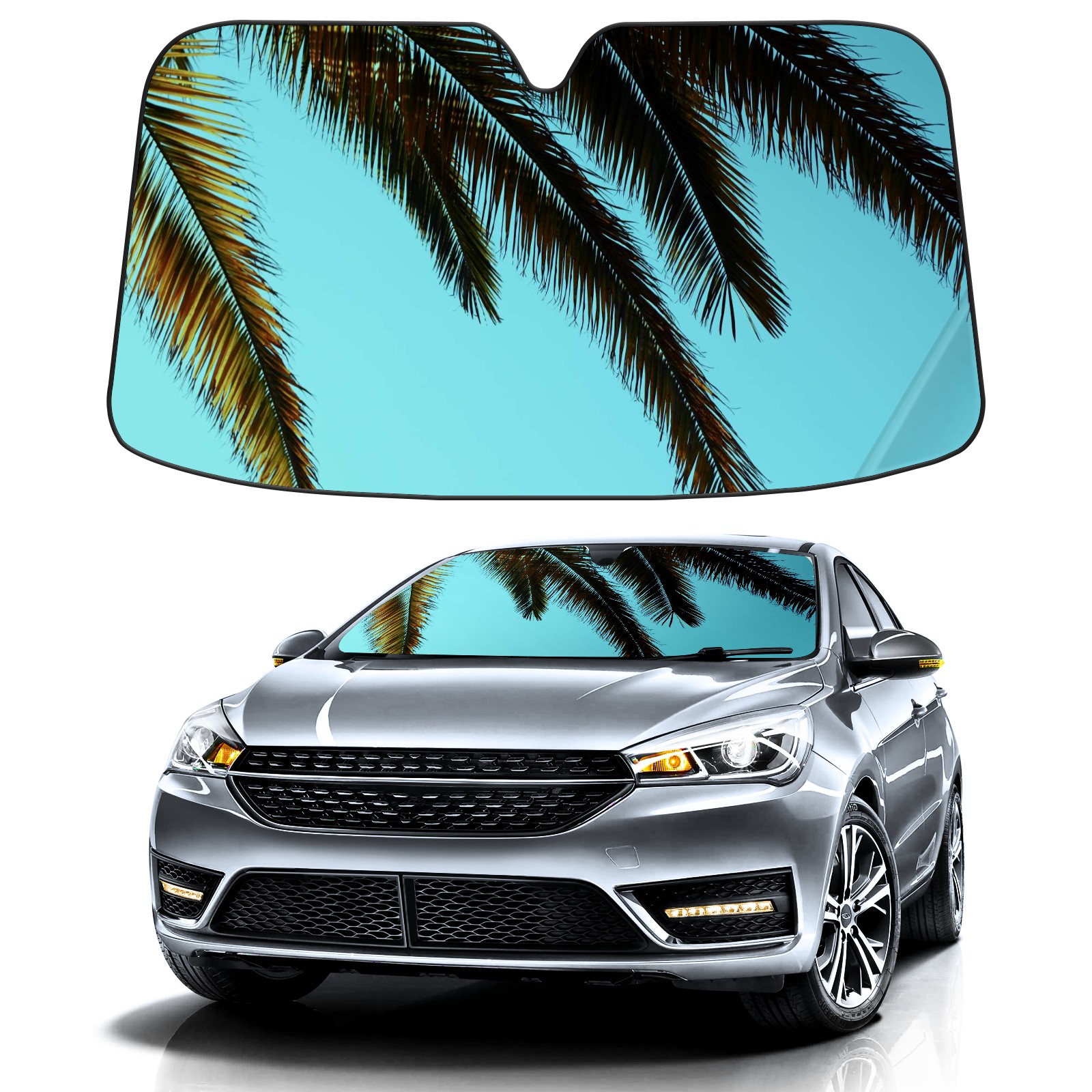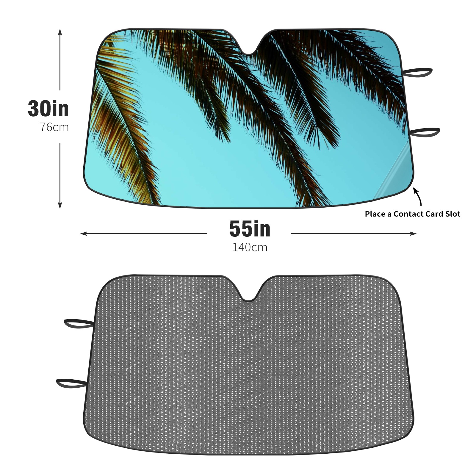 Car Windshield Sun Shade For Front Window Worm's-eyed View Of Green Palm Tree, Tropical, Blue Sky Beach Scenic Summer Foldable Vehicle Windshield Car Sun Visor Covers Automotive Window Protector Car Camping Privacy Sun Blocker