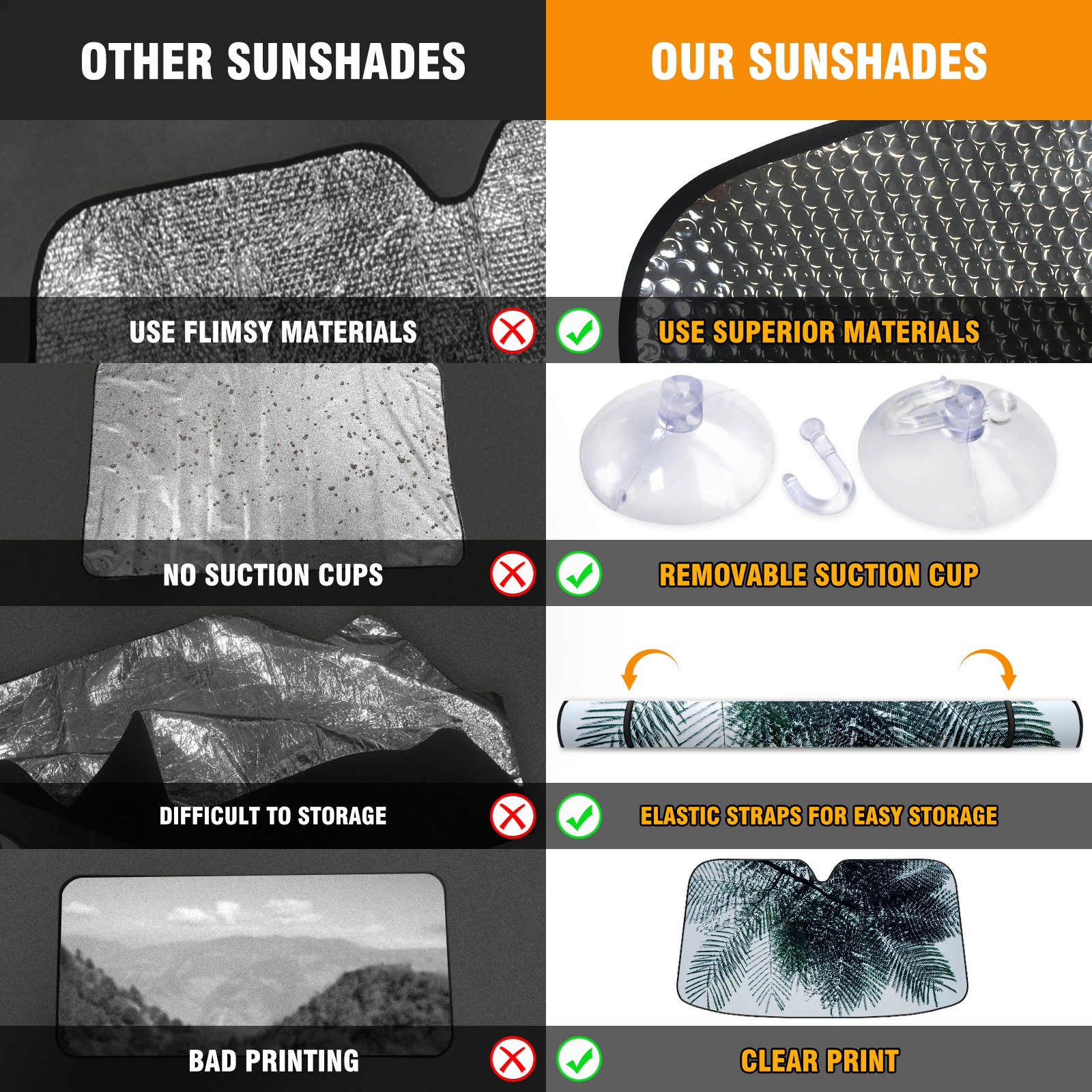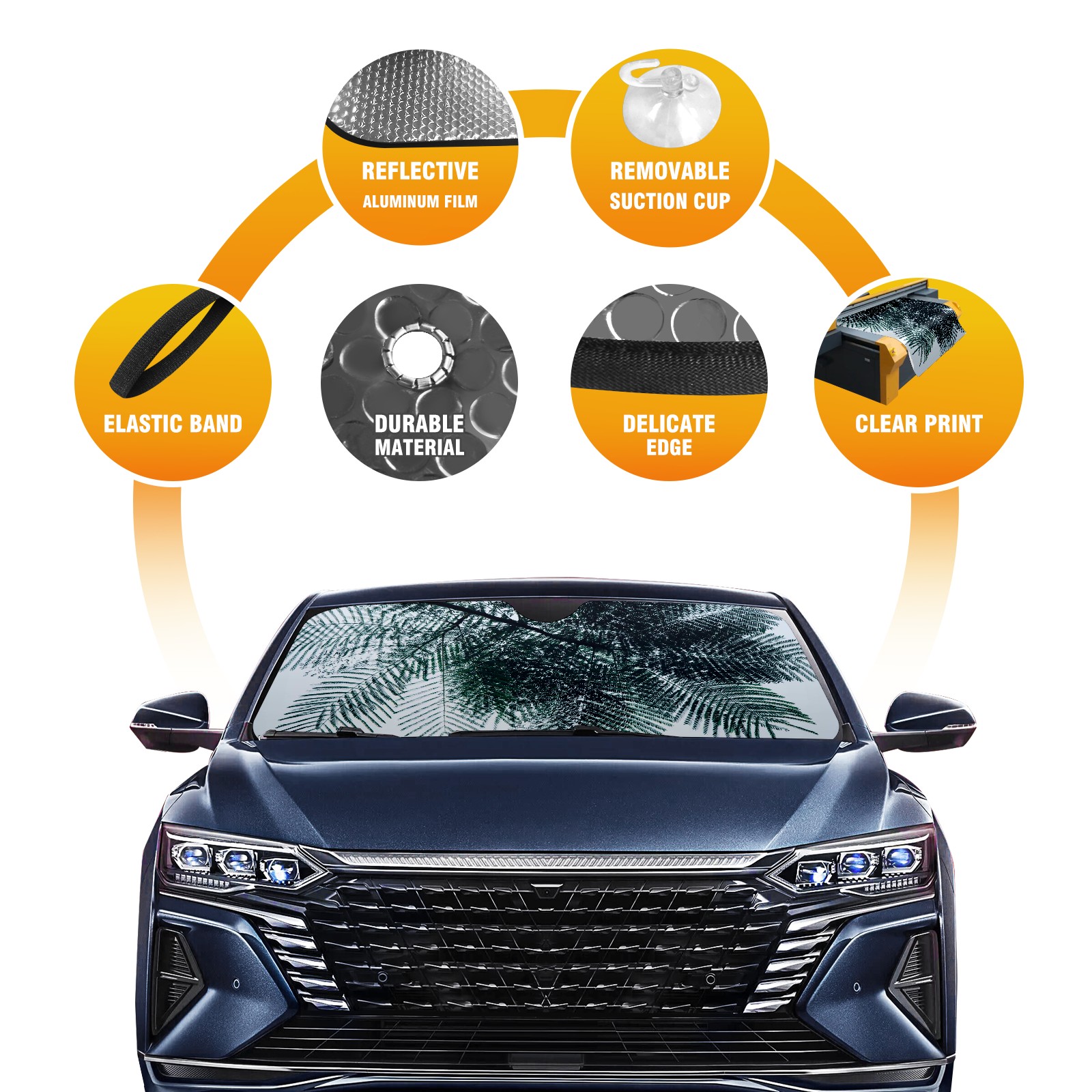 • Diameter /Size 63"L x 33.5"W Made from excellent materials which makes it sturdy and protects the car from the sun. Easy to use and pack. Makes the interior of the car cooler.You can easily stash the sunshade in the storage bag or store long term.It open and closes easy. Also the leather storage bag is durable and easy to put the umbrella back into.This windshield sunshade provides complete coverage and keeps your car interior cool under direct sun. It is easy to open and position under the windshield and around the rear-view mirror. Makes Your Car Easy To Identify, Perfect For Finding Your Car In Crowded Parking Lots And Garages.Great Choice: It Is A Great Gift For Dad, Boyfriend, Brother, Brother And Uncle, Friends, Classmates, Family And So On. Notice: Due To Difference Computer Monitors, The Color Maybe Slightly Different From Picture. As Different Measurement Methods, Measurement Data Will Float Within 2%.I Hope You Understand. If You Have Any Question About The Item Please Do Not Hesitate To Contact Us Immediately And We Will Give You A Satisfactory Reply Within 24 Hours.