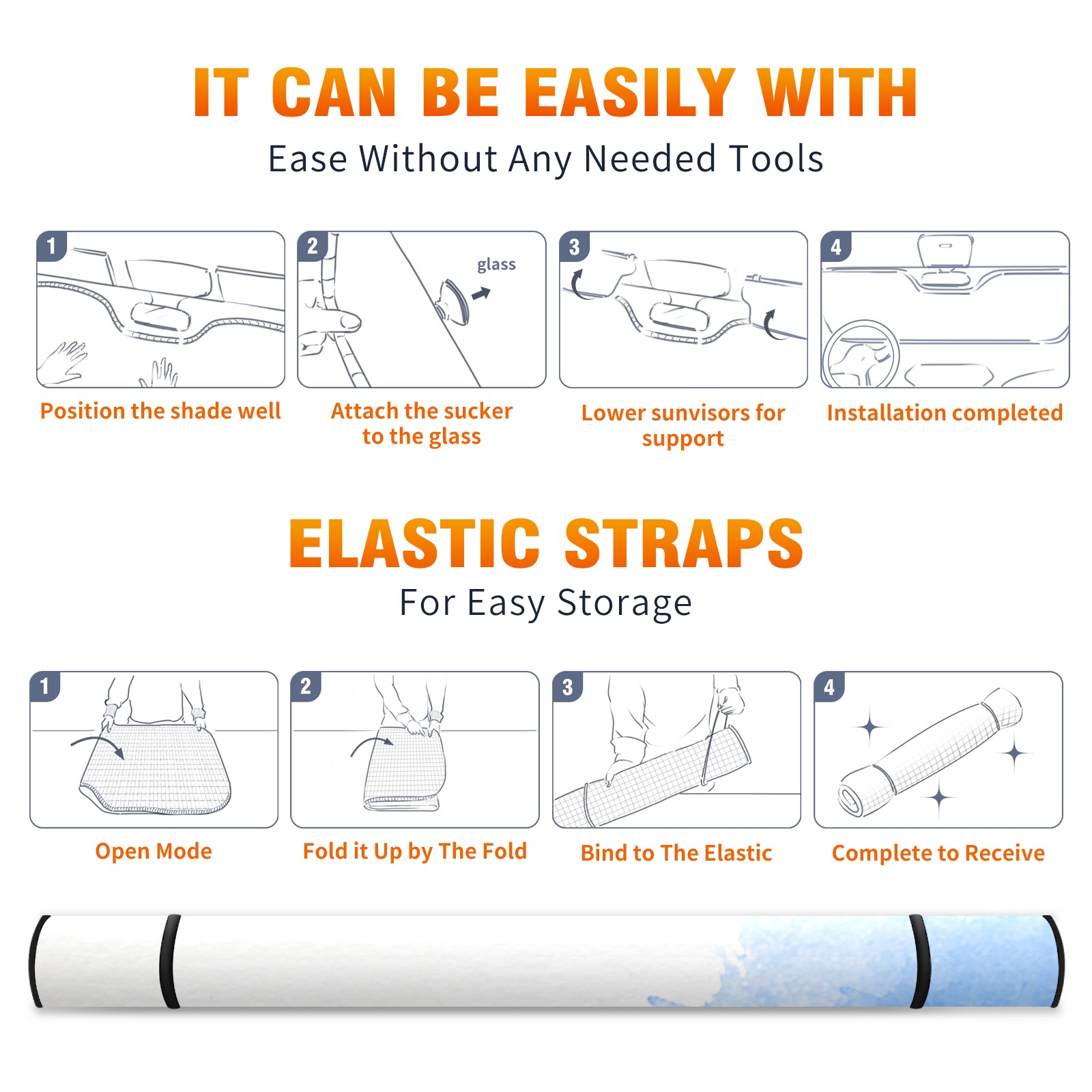 • Diameter /Size 63"L x 33.5"W Made from excellent materials which makes it sturdy and protects the car from the sun. Easy to use and pack. Makes the interior of the car cooler.You can easily stash the sunshade in the storage bag or store long term.It open and closes easy. Also the leather storage bag is durable and easy to put the umbrella back into.This windshield sunshade provides complete coverage and keeps your car interior cool under direct sun. It is easy to open and position under the windshield and around the rear-view mirror. Makes Your Car Easy To Identify, Perfect For Finding Your Car In Crowded Parking Lots And Garages.Great Choice: It Is A Great Gift For Dad, Boyfriend, Brother, Brother And Uncle, Friends, Classmates, Family And So On. Notice: Due To Difference Computer Monitors, The Color Maybe Slightly Different From Picture. As Different Measurement Methods, Measurement Data Will Float Within 2%.I Hope You Understand. If You Have Any Question About The Item Please Do Not Hesitate To Contact Us Immediately And We Will Give You A Satisfactory Reply Within 24 Hours.