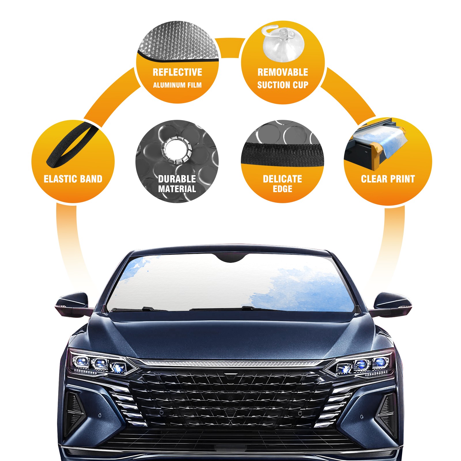 Car Windshield Sun Shade For Front Window Painted Watercolor Sky Clouds Foldable Vehicle Windshield Car Sun Visor Covers Automotive Window Protector Car Camping Privacy Sun Blocker