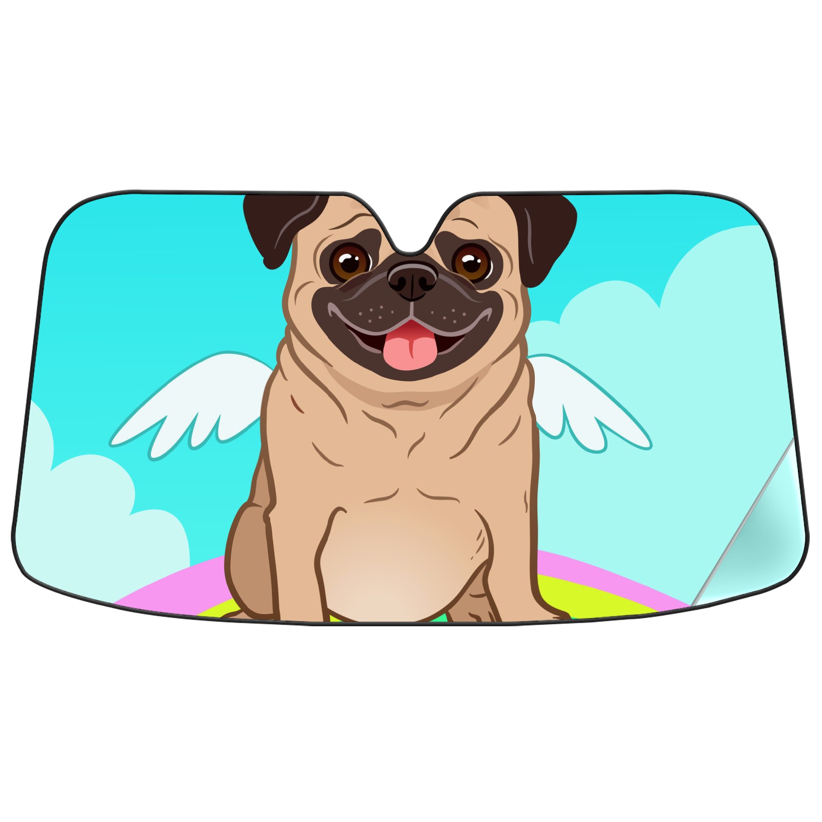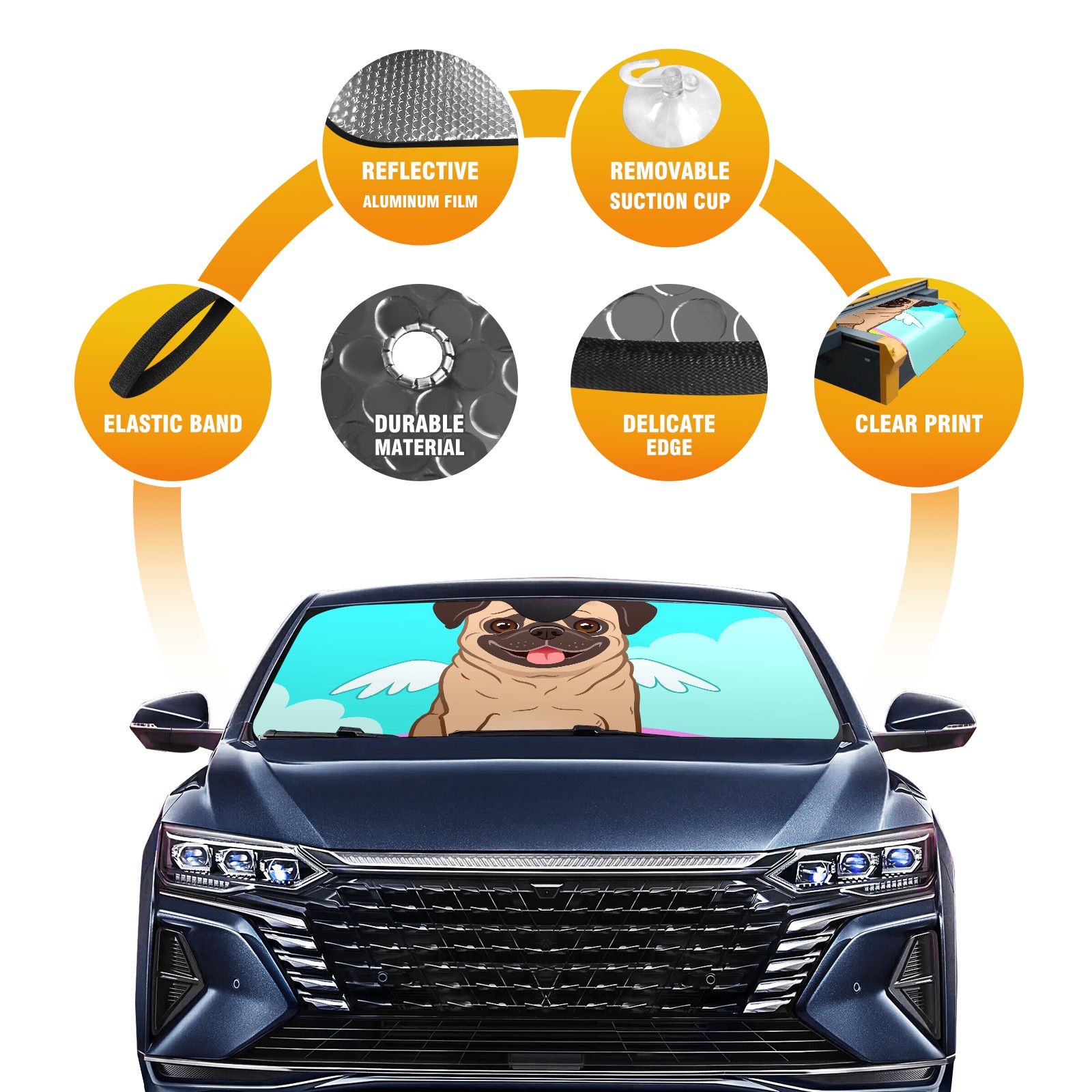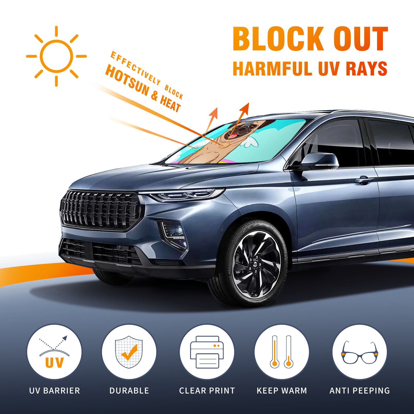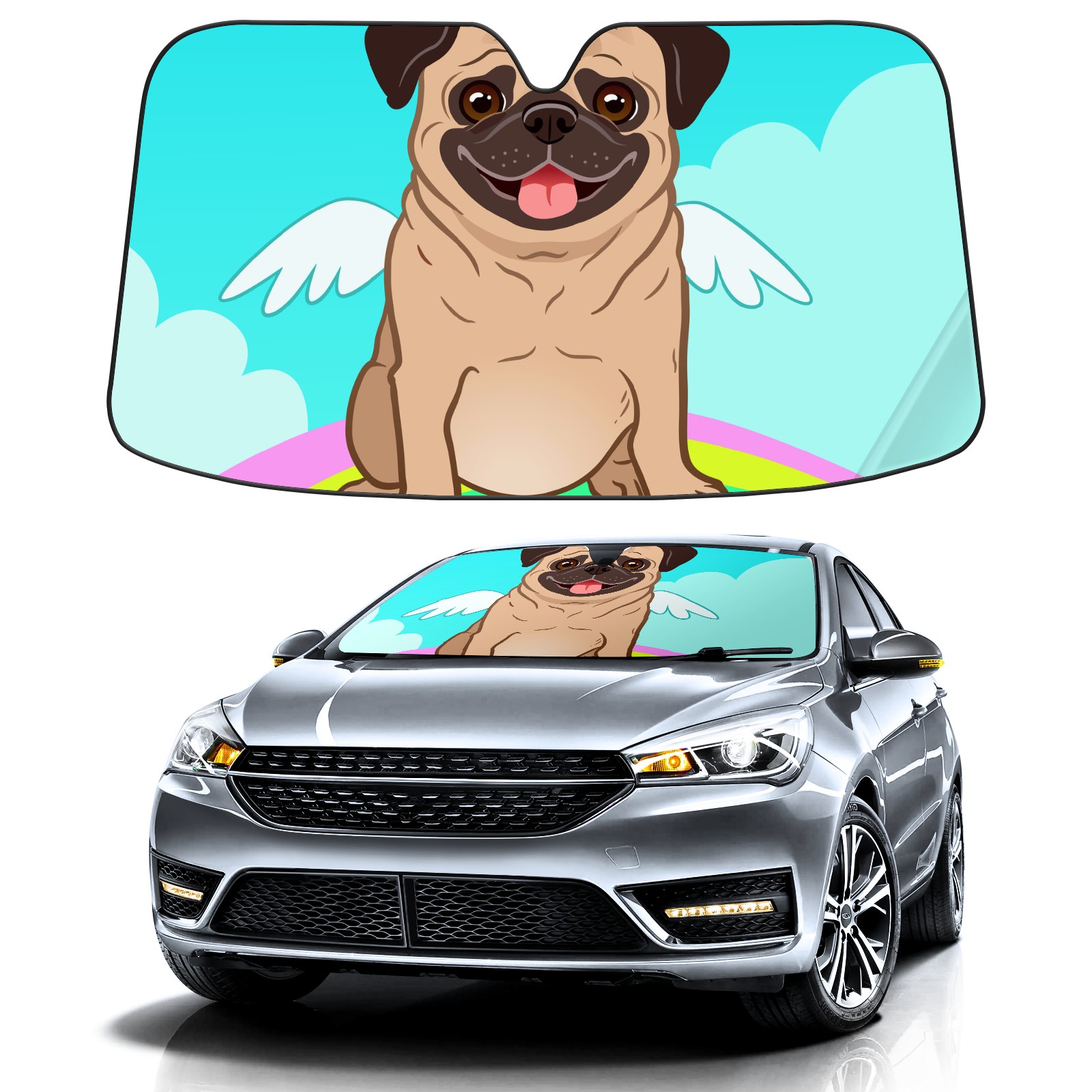 Car Windshield Sun Shade For Front Window Blue Sky Rainbow Angelic Winged Dog Unicorn Foldable Vehicle Windshield Car Sun Visor Covers Automotive Window Protector Car Camping Privacy Sun Blocker