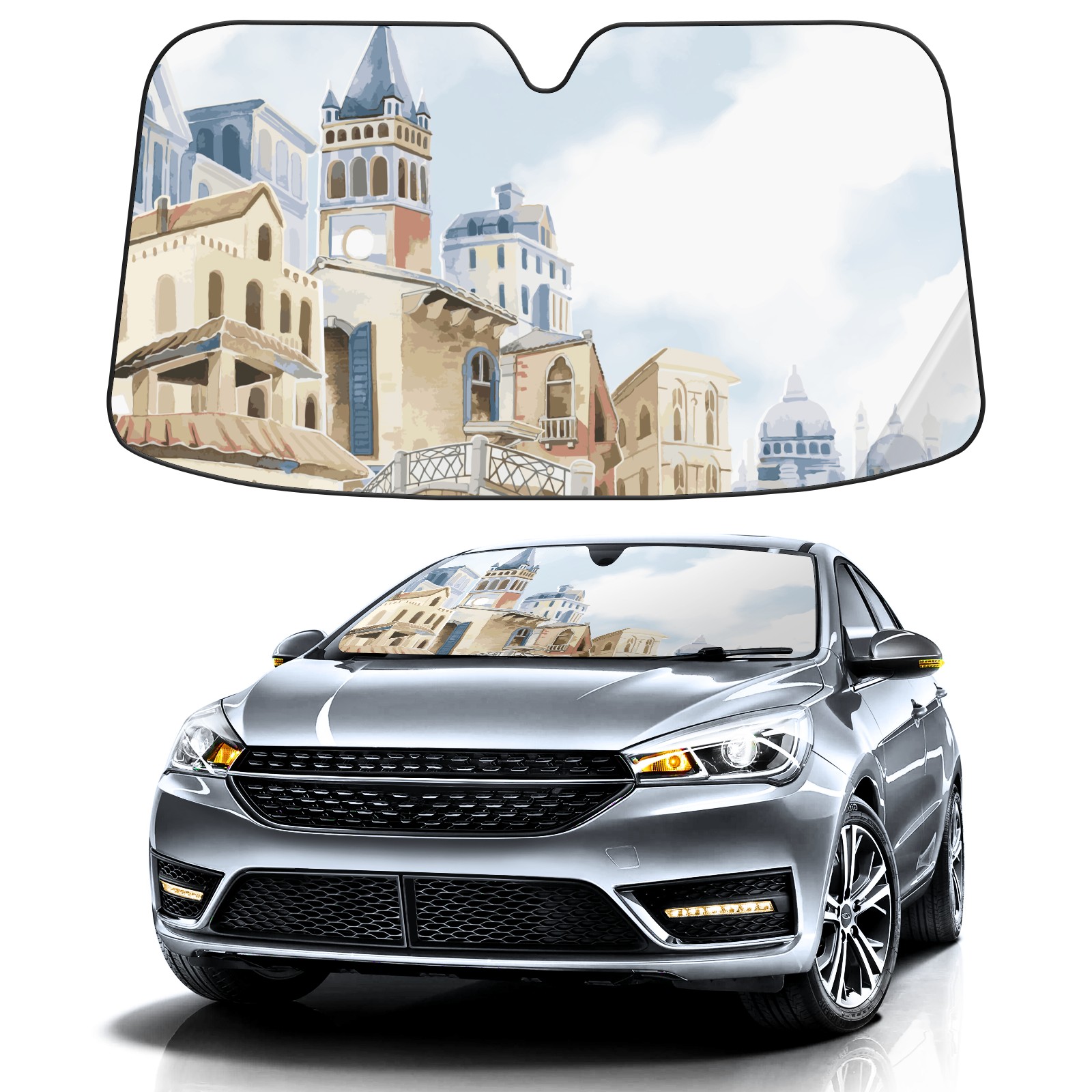 Car Windshield Sun Shade For Front Window Castle Tribe Sky Foldable Vehicle Windshield Car Sun Visor Covers Automotive Window Protector Car Camping Privacy Sun Blocker