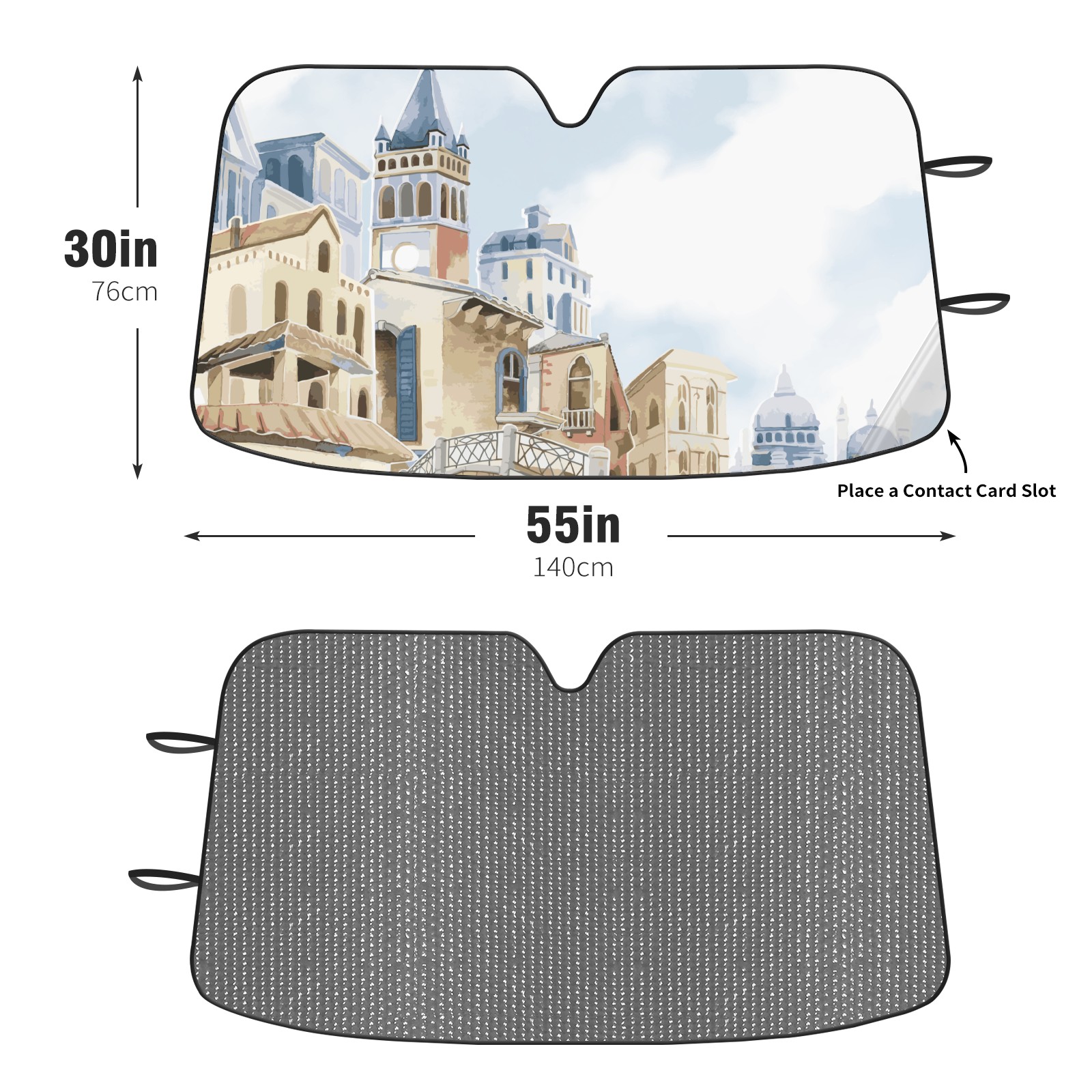 Diameter /Size 63"L x 33.5"W Made from excellent materials which makes it sturdy and protects the car from the sun. Easy to use and pack. Makes the interior of the car cooler.You can easily stash the sunshade in the storage bag or store long term.It open and closes easy. Also the leather storage bag is durable and easy to put the umbrella back into.This windshield sunshade provides complete coverage and keeps your car interior cool under direct sun. It is easy to open and position under the windshield and around the rear-view mirror. Makes Your Car Easy To Identify, Perfect For Finding Your Car In Crowded Parking Lots And Garages.Great Choice: It Is A Great Gift For Dad, Boyfriend, Brother, Brother And Uncle, Friends, Classmates, Family And So On. Notice: Due To Difference Computer Monitors, The Color Maybe Slightly Different From Picture. As Different Measurement Methods, Measurement Data Will Float Within 2%.I Hope You Understand. If You Have Any Question About The Item Please Do Not Hesitate To Contact Us Immediately And We Will Give You A Satisfactory Reply Within 24 Hours.