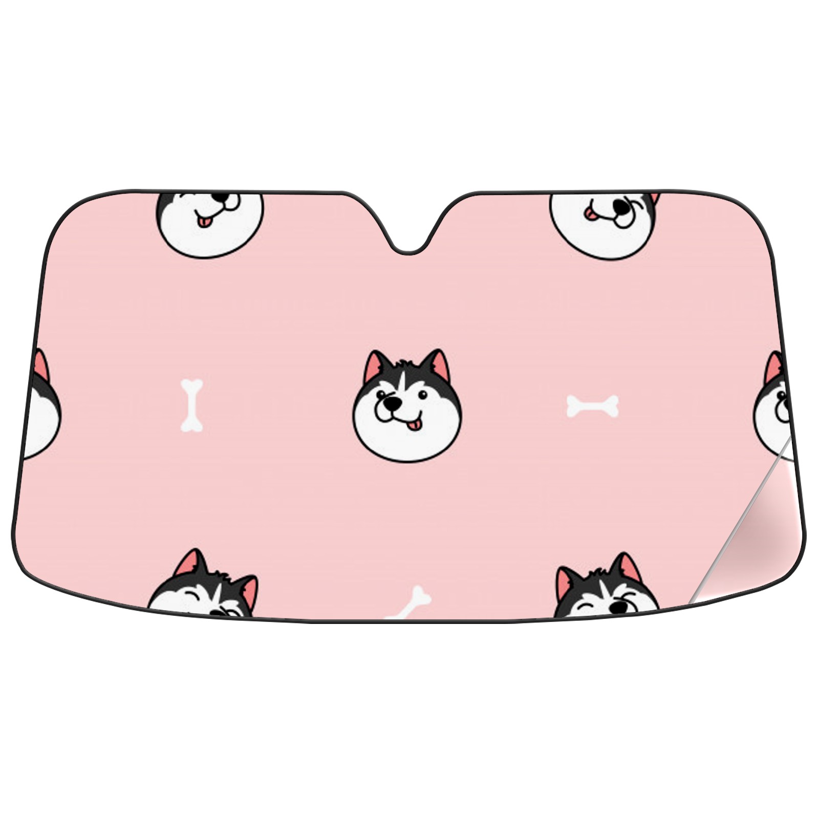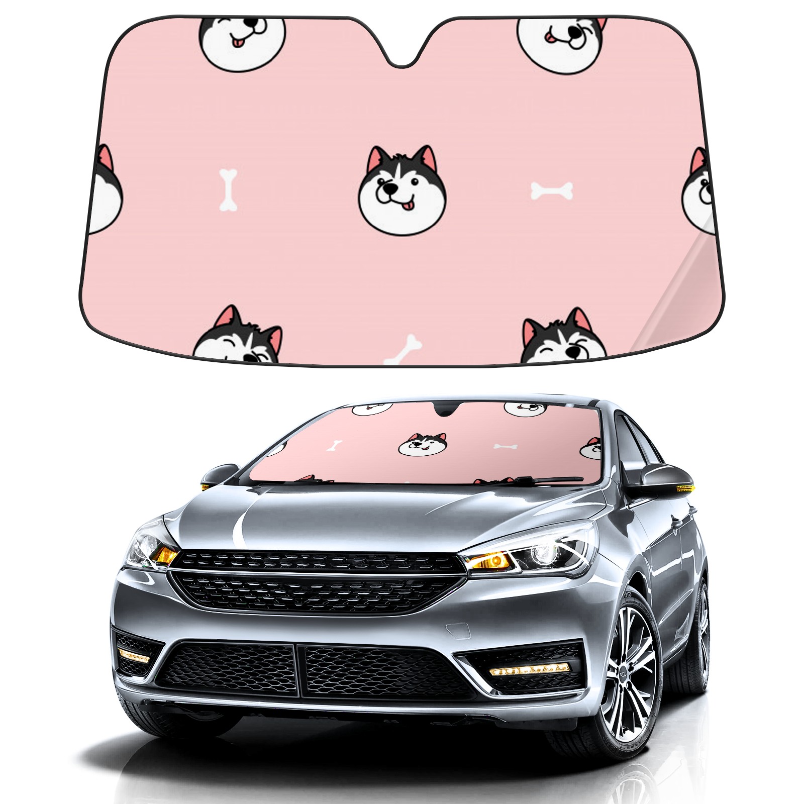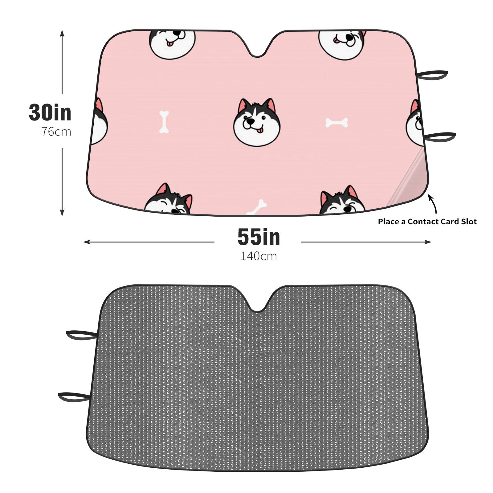 Car Windshield Sun Shade For Front Window Cute Husky Dog Head With Bone Foldable Vehicle Windshield Car Sun Visor Covers Automotive Window Protector Car Camping Privacy Sun Blocker