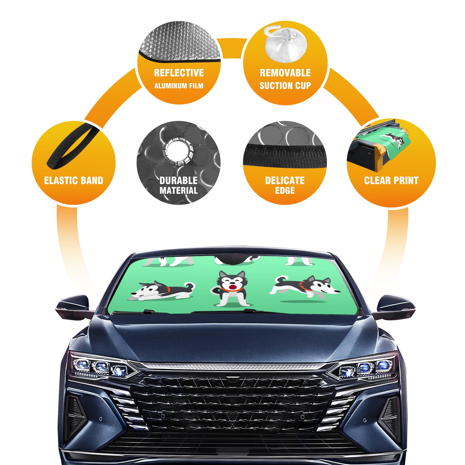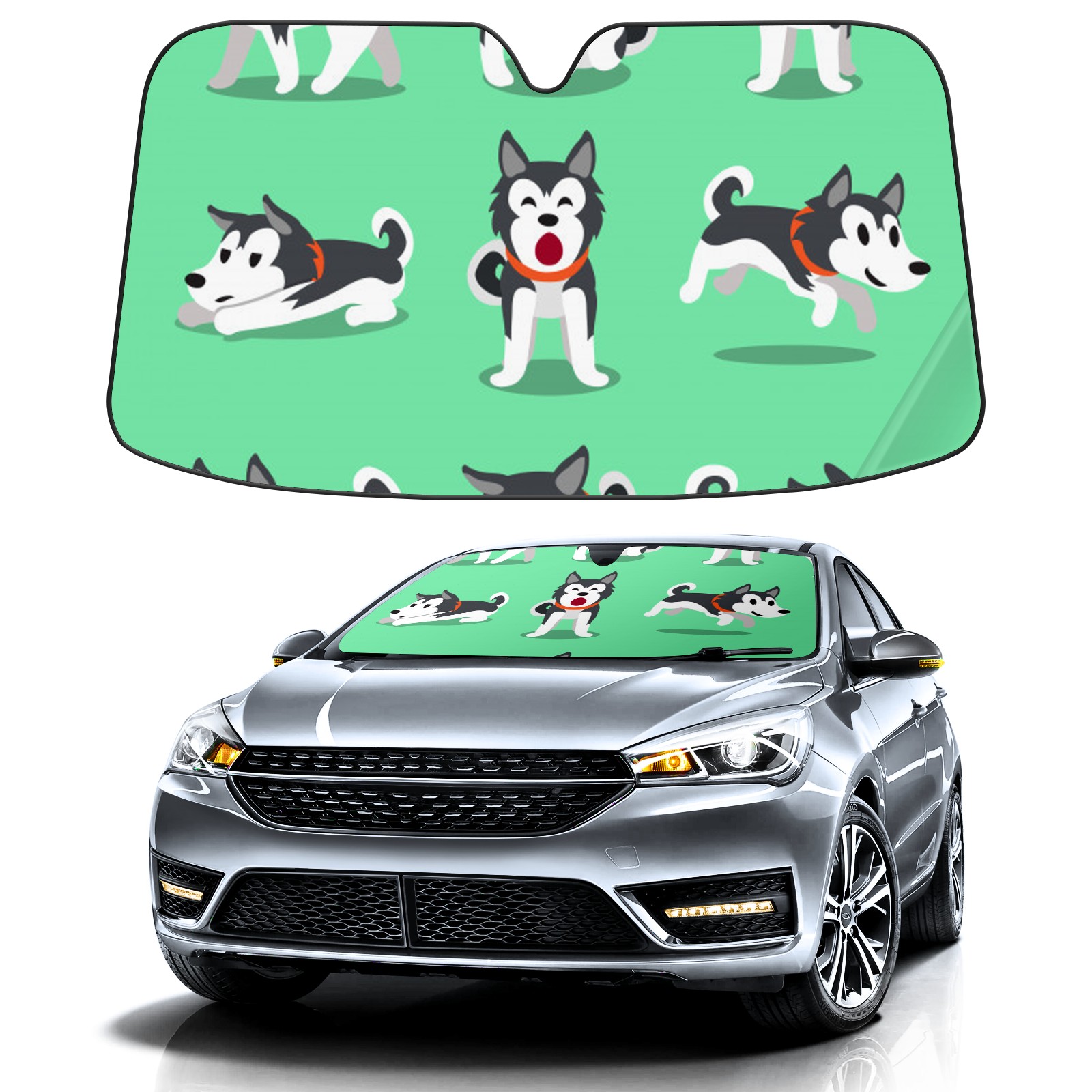 Car Windshield Sun Shade For Front Window Cartoon Character Husky Dog Foldable Vehicle Windshield Car Sun Visor Covers Automotive Window Protector Car Camping Privacy Sun Blocker