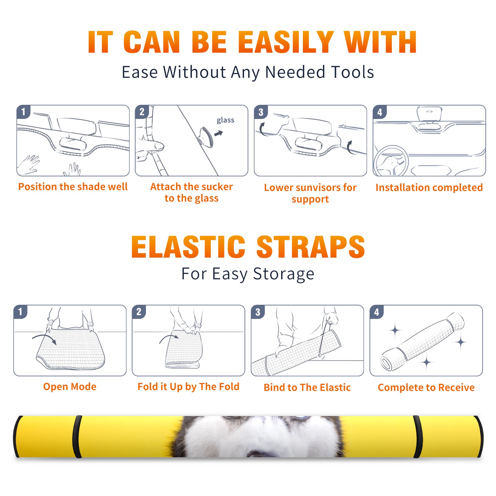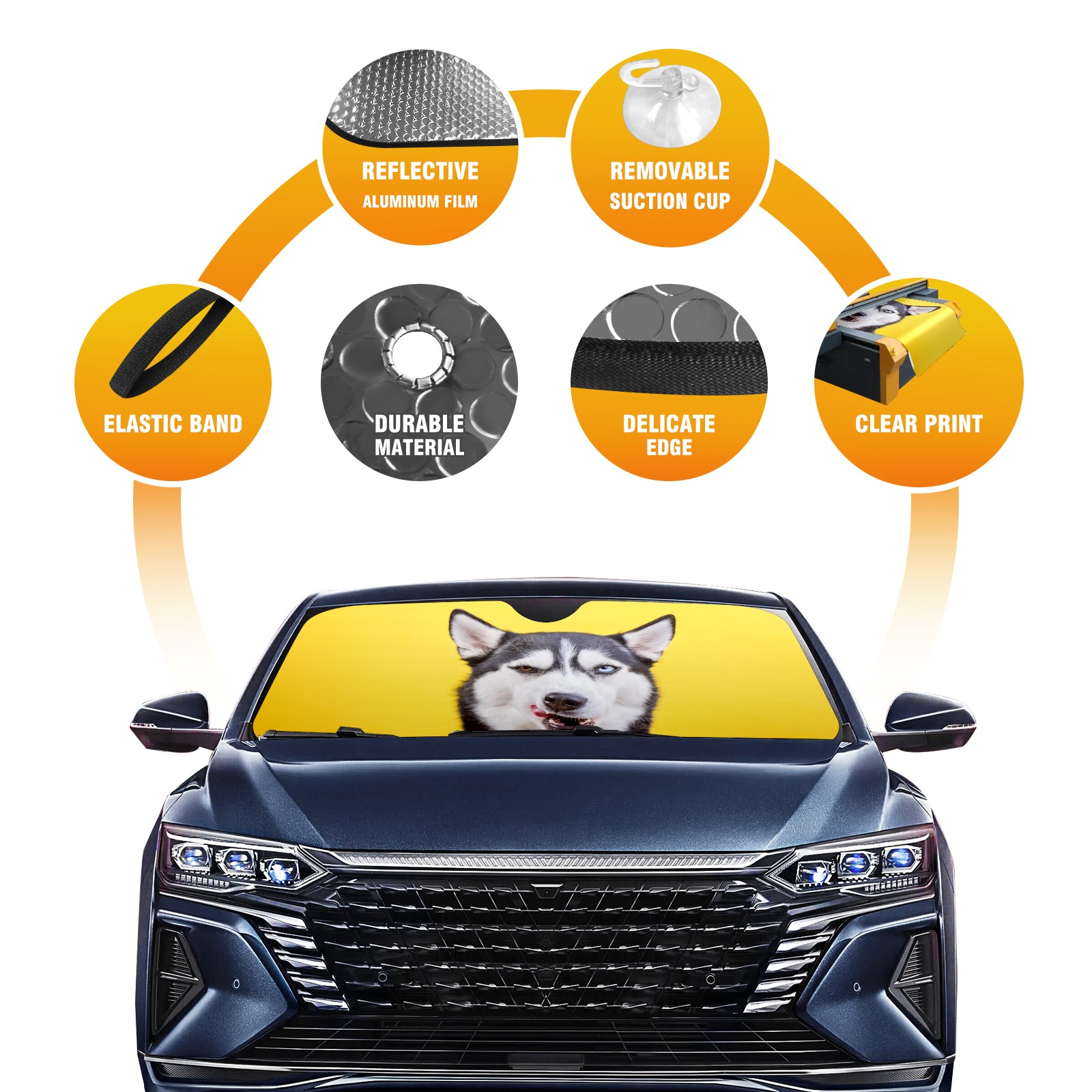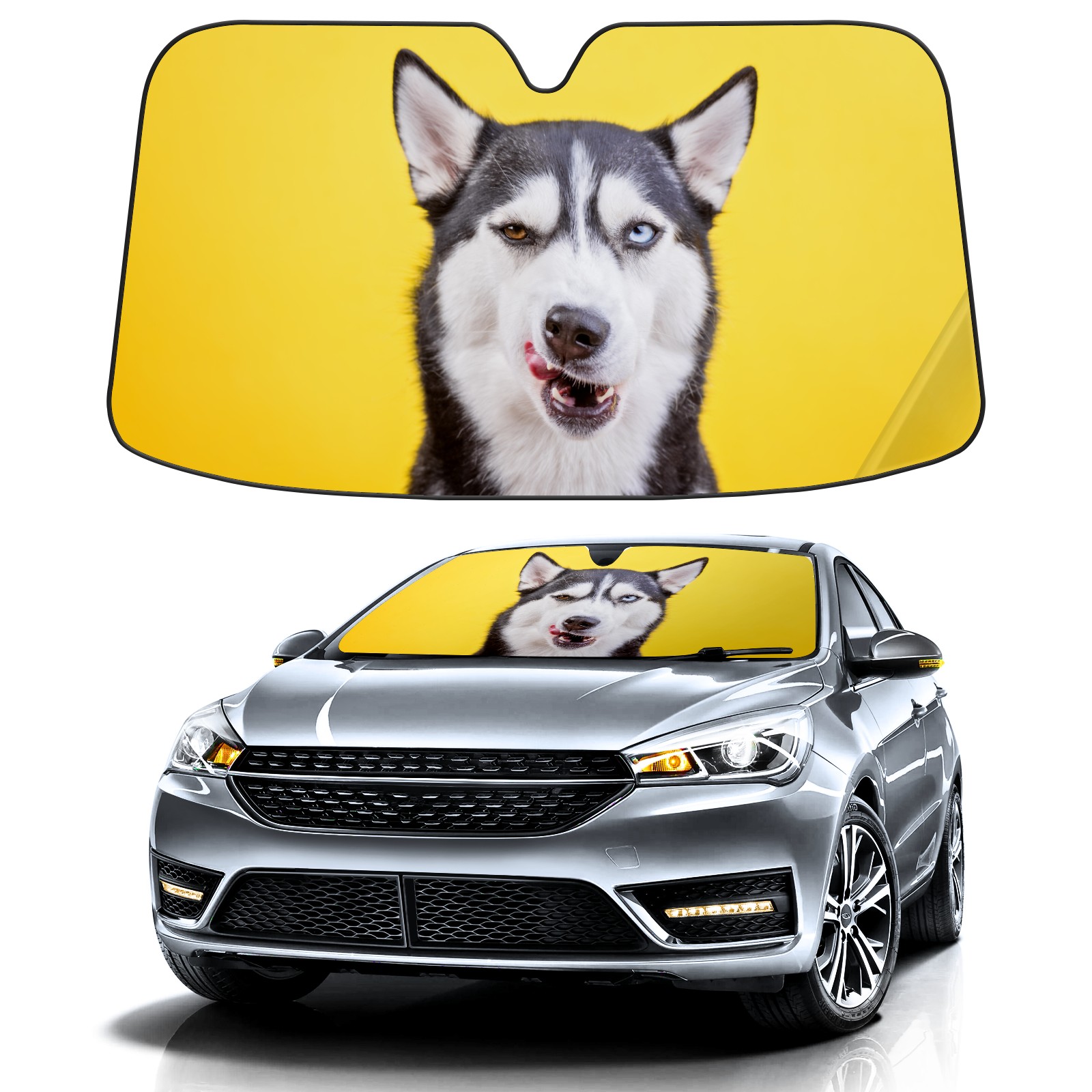 Car Windshield Sun Shade For Front Window Funny Husky Foldable Vehicle Windshield Car Sun Visor Covers Automotive Window Protector Car Camping Privacy Sun Blocker