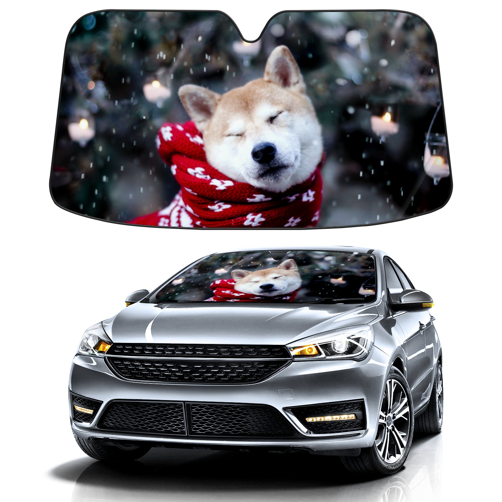 Car Windshield Sun Shade For Front Window Beautiful Funny Husky Winter Foldable Vehicle Windshield Car Sun Visor Covers Automotive Window Protector Car Camping Privacy Sun Blocker
