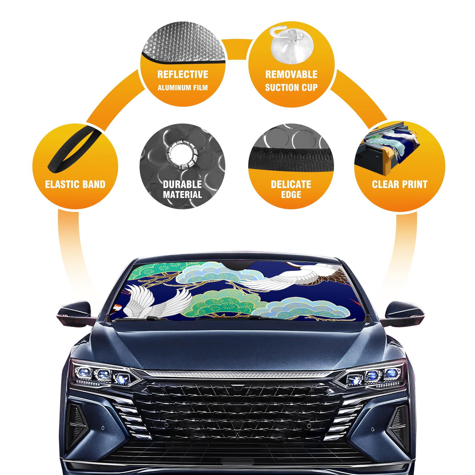 Car Windshield Sun Shade For Front Window Sky White Crane Foldable Vehicle Windshield Car Sun Visor Covers Automotive Window Protector Car Camping Privacy Sun Blocker