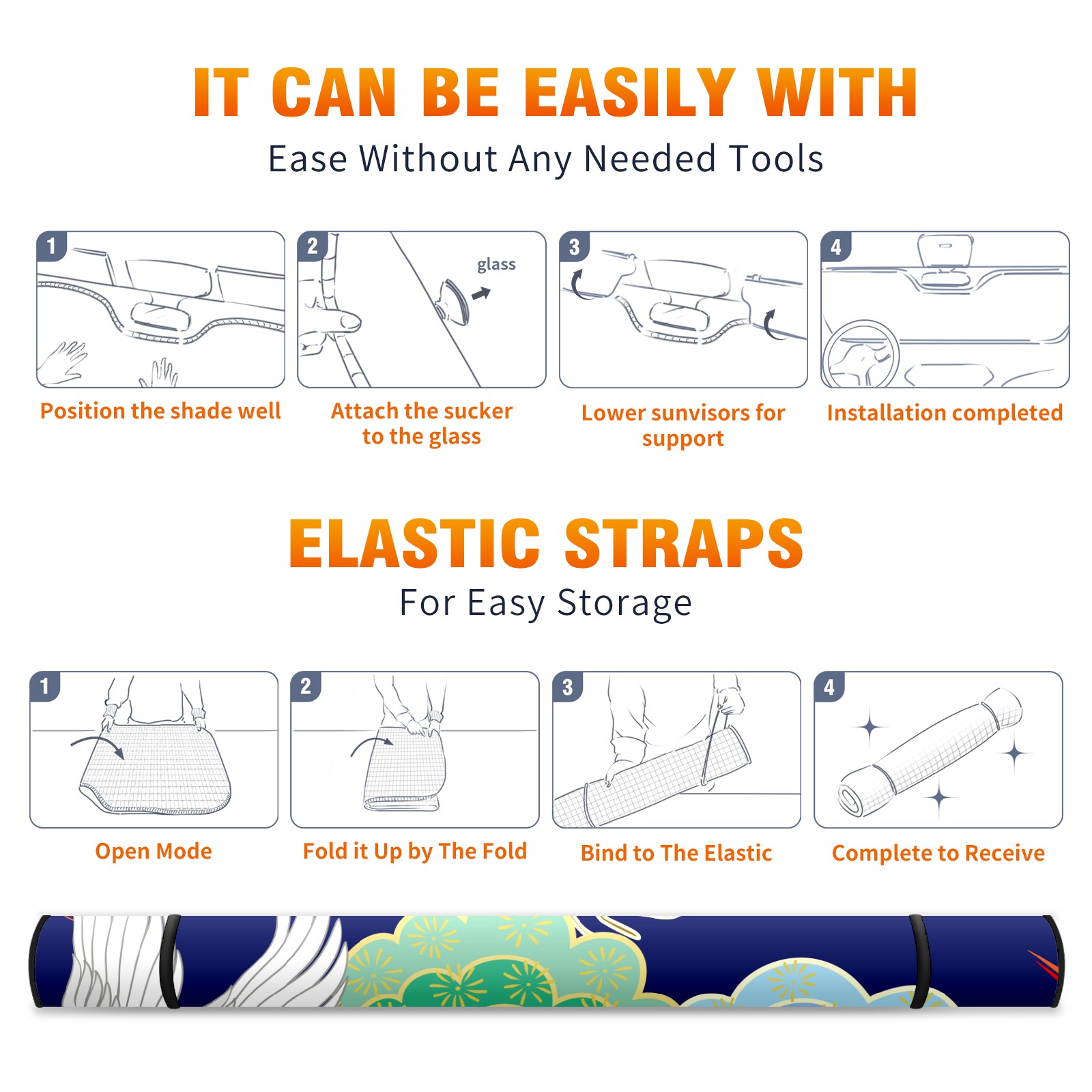 • Diameter /Size 63"L x 33.5"W Made from excellent materials which makes it sturdy and protects the car from the sun. Easy to use and pack. Makes the interior of the car cooler.You can easily stash the sunshade in the storage bag or store long term.It open and closes easy. Also the leather storage bag is durable and easy to put the umbrella back into.This windshield sunshade provides complete coverage and keeps your car interior cool under direct sun. It is easy to open and position under the windshield and around the rear-view mirror. Makes Your Car Easy To Identify, Perfect For Finding Your Car In Crowded Parking Lots And Garages.Great Choice: It Is A Great Gift For Dad, Boyfriend, Brother, Brother And Uncle, Friends, Classmates, Family And So On. Notice: Due To Difference Computer Monitors, The Color Maybe Slightly Different From Picture. As Different Measurement Methods, Measurement Data Will Float Within 2%.I Hope You Understand. If You Have Any Question About The Item Please Do Not Hesitate To Contact Us Immediately And We Will Give You A Satisfactory Reply Within 24 Hours.