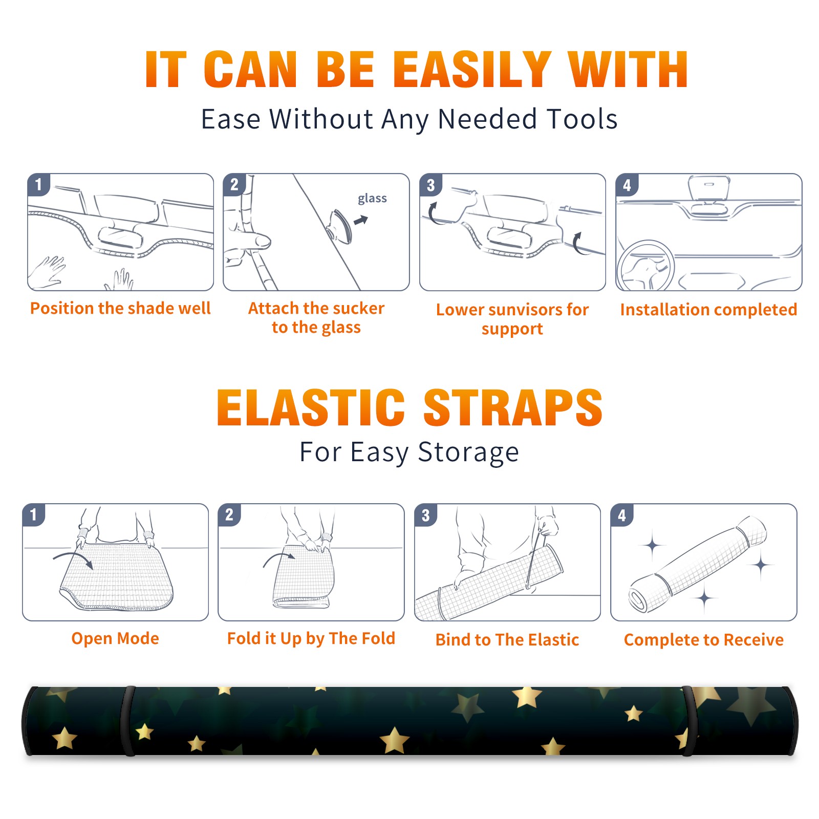 Car Windshield Sun Shade For Front Window Night Sky With Golden Star Foldable Vehicle Windshield Car Sun Visor Covers Automotive Window Protector Car Camping Privacy Sun Blocker