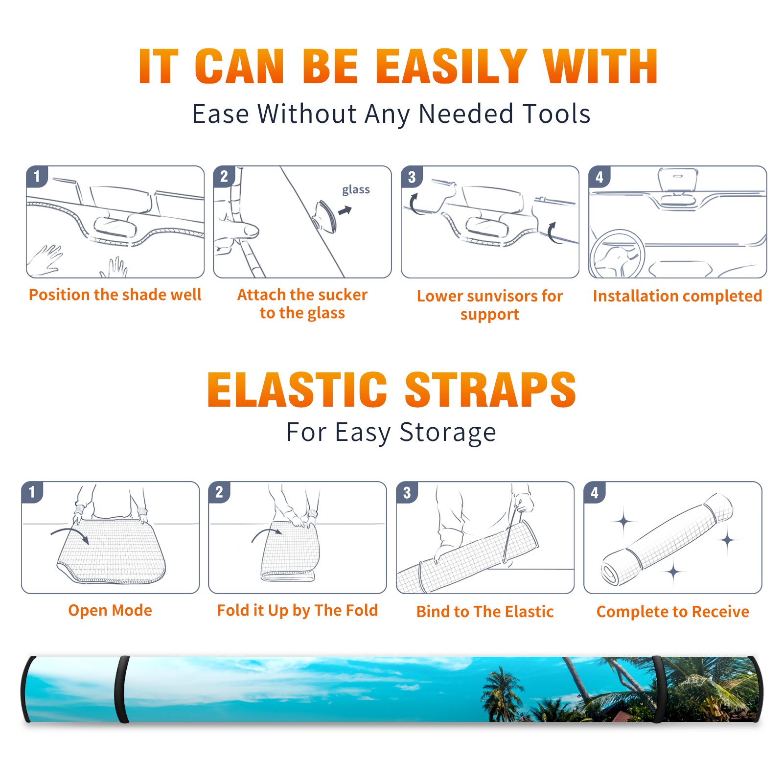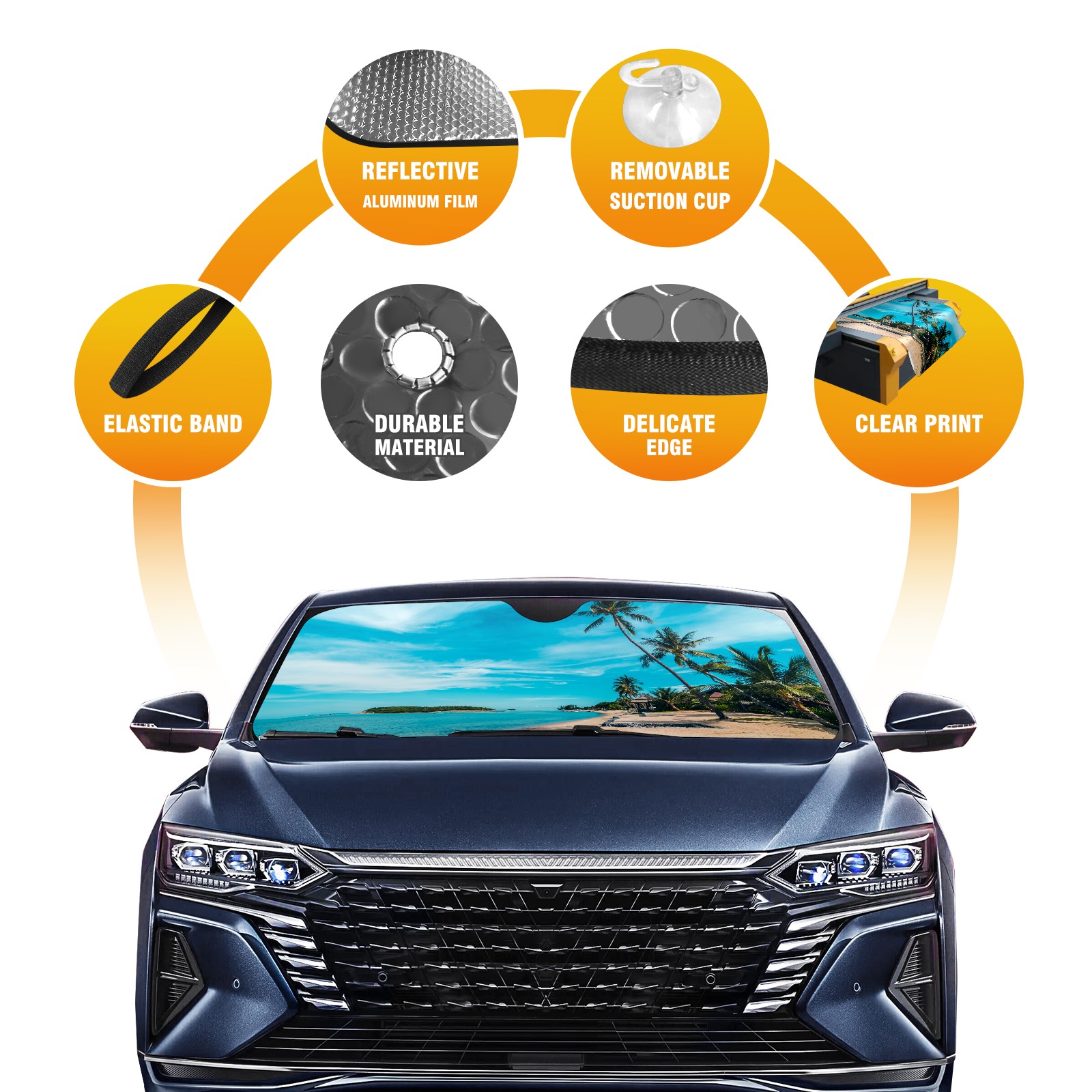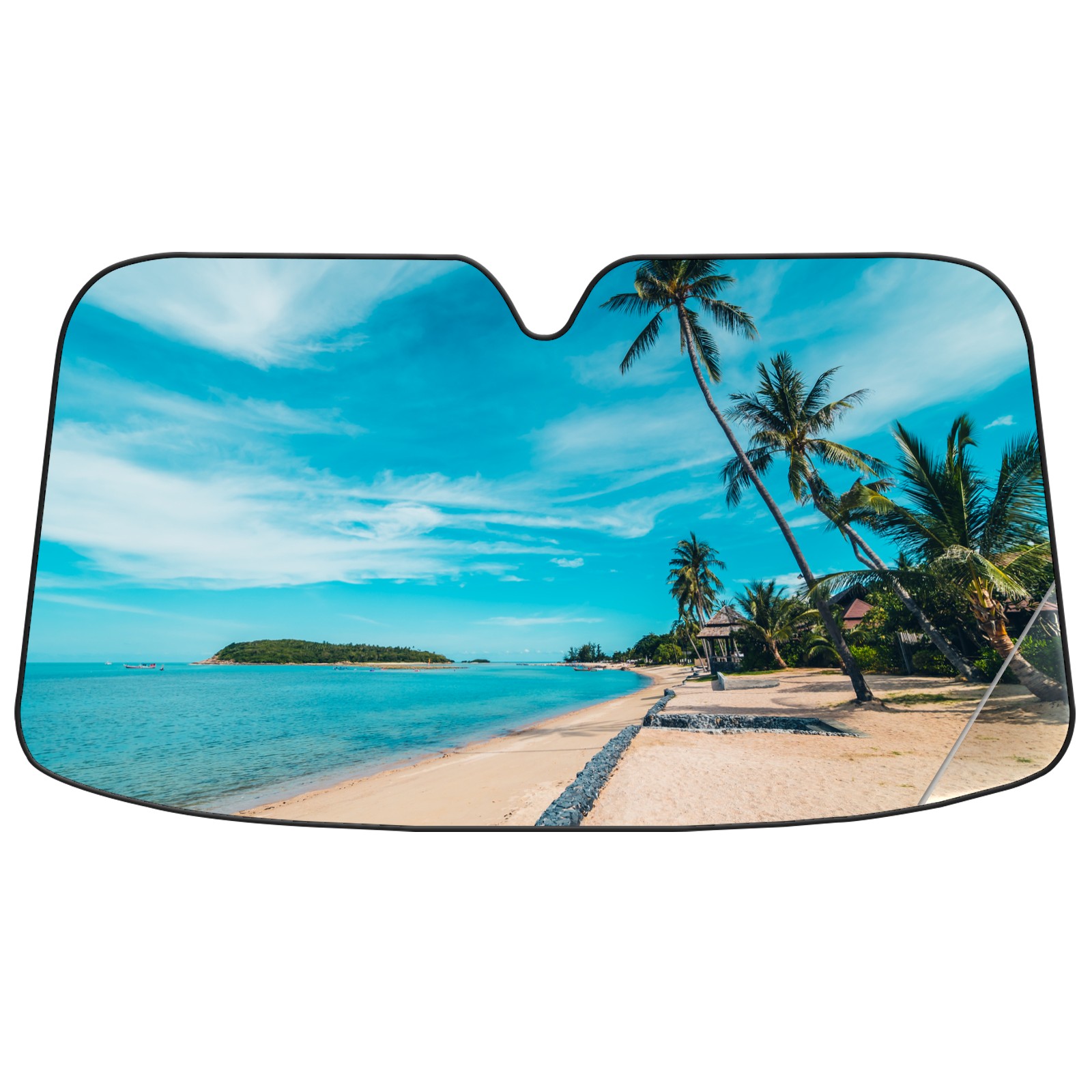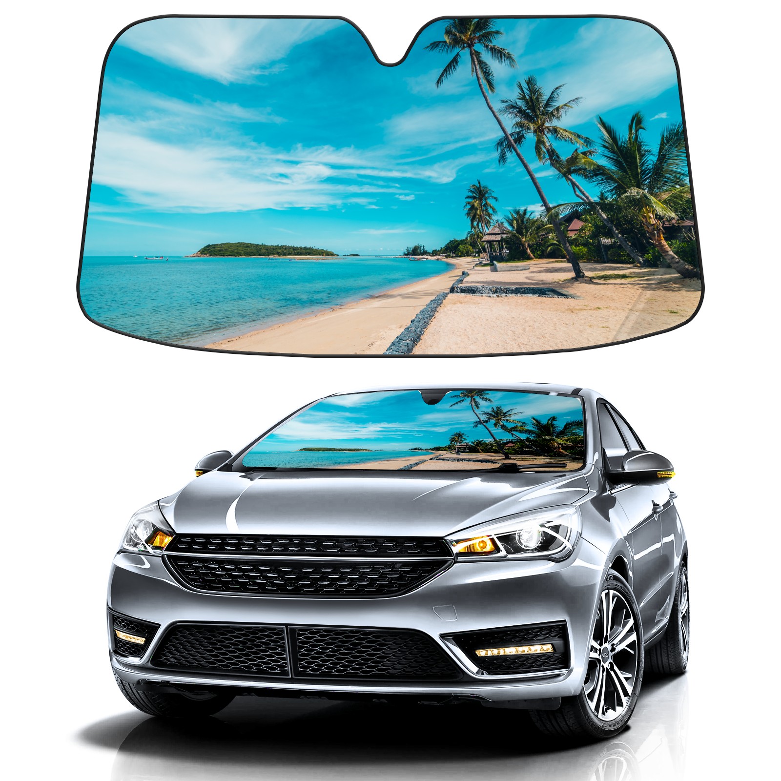 Car Windshield Sun Shade For Front Window Tropical Beach Sea Sand blue-sky-white-cloud Foldable Vehicle Windshield Car Sun Visor Covers Automotive Window Protector Car Camping Privacy Sun Blocker
