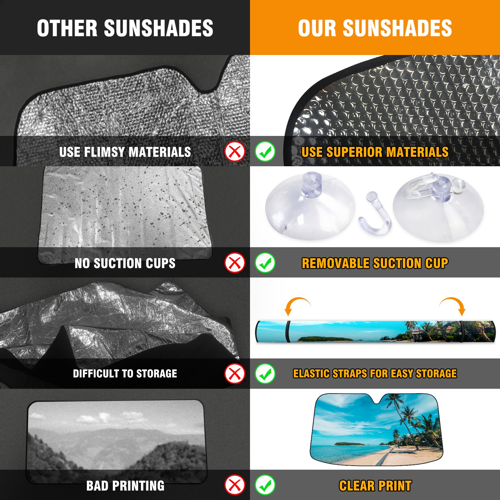 • Diameter /Size 63"L x 33.5"W Made from excellent materials which makes it sturdy and protects the car from the sun. Easy to use and pack. Makes the interior of the car cooler.You can easily stash the sunshade in the storage bag or store long term.It open and closes easy. Also the leather storage bag is durable and easy to put the umbrella back into.This windshield sunshade provides complete coverage and keeps your car interior cool under direct sun. It is easy to open and position under the windshield and around the rear-view mirror. Makes Your Car Easy To Identify, Perfect For Finding Your Car In Crowded Parking Lots And Garages.Great Choice: It Is A Great Gift For Dad, Boyfriend, Brother, Brother And Uncle, Friends, Classmates, Family And So On. Notice: Due To Difference Computer Monitors, The Color Maybe Slightly Different From Picture. As Different Measurement Methods, Measurement Data Will Float Within 2%.I Hope You Understand. If You Have Any Question About The Item Please Do Not Hesitate To Contact Us Immediately And We Will Give You A Satisfactory Reply Within 24 Hours.