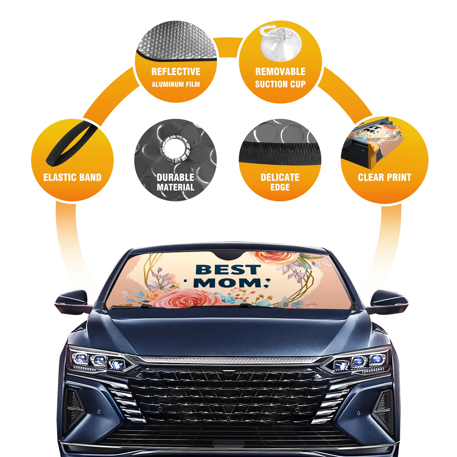 • Diameter /Size 63"L x 33.5"W Made from excellent materials which makes it sturdy and protects the car from the sun. Easy to use and pack. Makes the interior of the car cooler.You can easily stash the sunshade in the storage bag or store long term.It open and closes easy. Also the leather storage bag is durable and easy to put the umbrella back into.This windshield sunshade provides complete coverage and keeps your car interior cool under direct sun. It is easy to open and position under the windshield and around the rear-view mirror. Makes Your Car Easy To Identify, Perfect For Finding Your Car In Crowded Parking Lots And Garages.Great Choice: It Is A Great Gift For Dad, Boyfriend, Brother, Brother And Uncle, Friends, Classmates, Family And So On. Notice: Due To Difference Computer Monitors, The Color Maybe Slightly Different From Picture. As Different Measurement Methods, Measurement Data Will Float Within 2%.I Hope You Understand. If You Have Any Question About The Item Please Do Not Hesitate To Contact Us Immediately And We Will Give You A Satisfactory Reply Within 24 Hours.