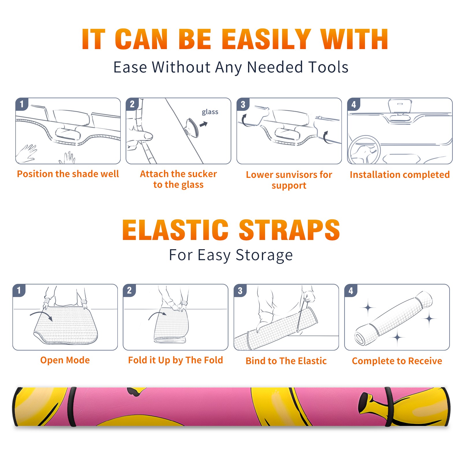 Car Windshield Sun Shade For Front Window Banana Foldable Vehicle Windshield Car Sun Visor Covers Automotive Window Protector Car Camping Privacy Sun Blocker