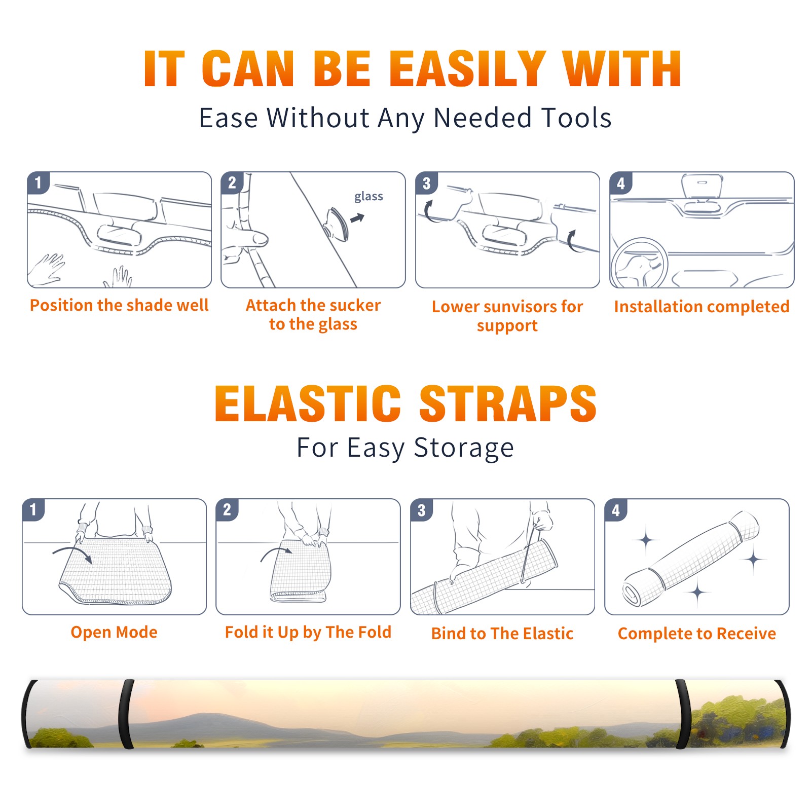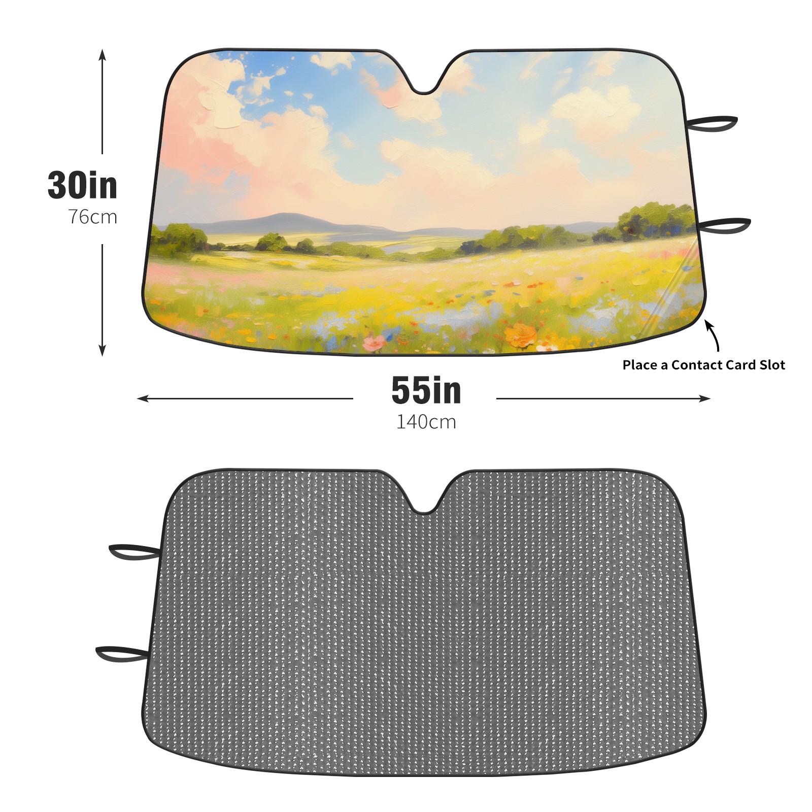 • Diameter /Size 63"L x 33.5"W Made from excellent materials which makes it sturdy and protects the car from the sun. Easy to use and pack. Makes the interior of the car cooler.You can easily stash the sunshade in the storage bag or store long term.It open and closes easy. Also the leather storage bag is durable and easy to put the umbrella back into.This windshield sunshade provides complete coverage and keeps your car interior cool under direct sun. It is easy to open and position under the windshield and around the rear-view mirror. Makes Your Car Easy To Identify, Perfect For Finding Your Car In Crowded Parking Lots And Garages.Great Choice: It Is A Great Gift For Dad, Boyfriend, Brother, Brother And Uncle, Friends, Classmates, Family And So On. Notice: Due To Difference Computer Monitors, The Color Maybe Slightly Different From Picture. As Different Measurement Methods, Measurement Data Will Float Within 2%.I Hope You Understand. If You Have Any Question About The Item Please Do Not Hesitate To Contact Us Immediately And We Will Give You A Satisfactory Reply Within 24 Hours.