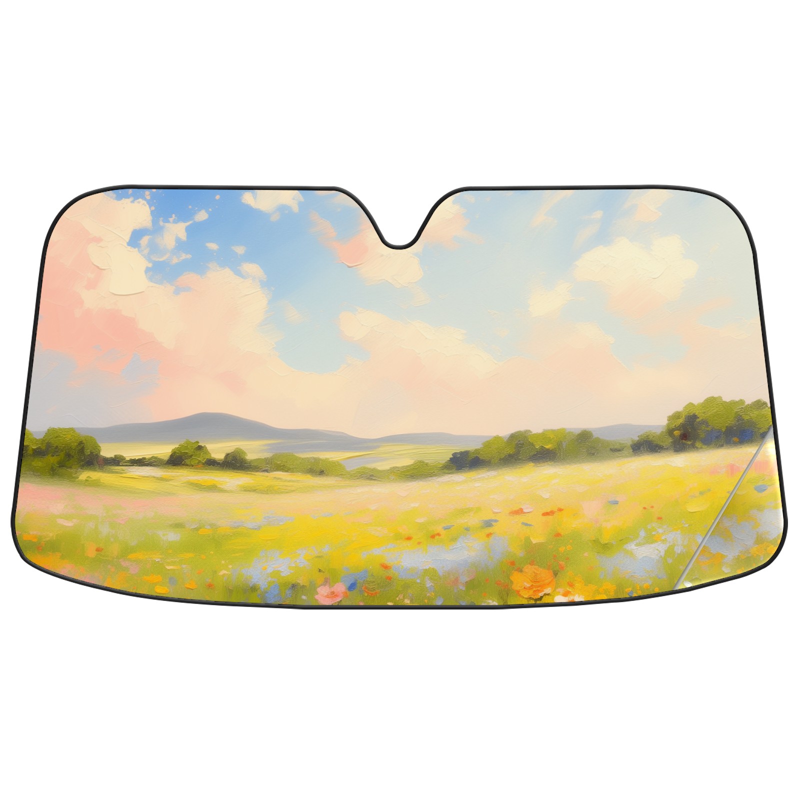 Diameter /Size 63"L x 33.5"W Made from excellent materials which makes it sturdy and protects the car from the sun. Easy to use and pack. Makes the interior of the car cooler.You can easily stash the sunshade in the storage bag or store long term.It open and closes easy. Also the leather storage bag is durable and easy to put the umbrella back into.This windshield sunshade provides complete coverage and keeps your car interior cool under direct sun. It is easy to open and position under the windshield and around the rear-view mirror. Makes Your Car Easy To Identify, Perfect For Finding Your Car In Crowded Parking Lots And Garages.Great Choice: It Is A Great Gift For Dad, Boyfriend, Brother, Brother And Uncle, Friends, Classmates, Family And So On. Notice: Due To Difference Computer Monitors, The Color Maybe Slightly Different From Picture. As Different Measurement Methods, Measurement Data Will Float Within 2%.I Hope You Understand. If You Have Any Question About The Item Please Do Not Hesitate To Contact Us Immediately And We Will Give You A Satisfactory Reply Within 24 Hours.