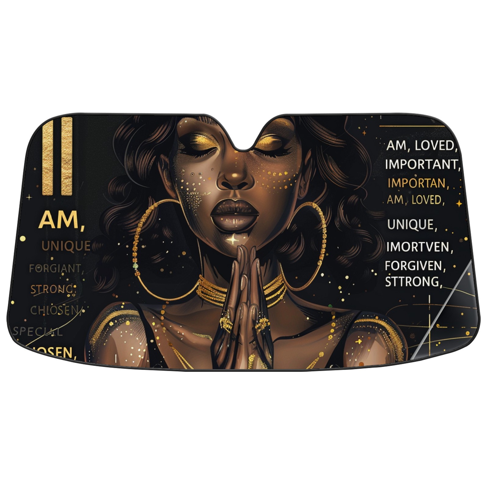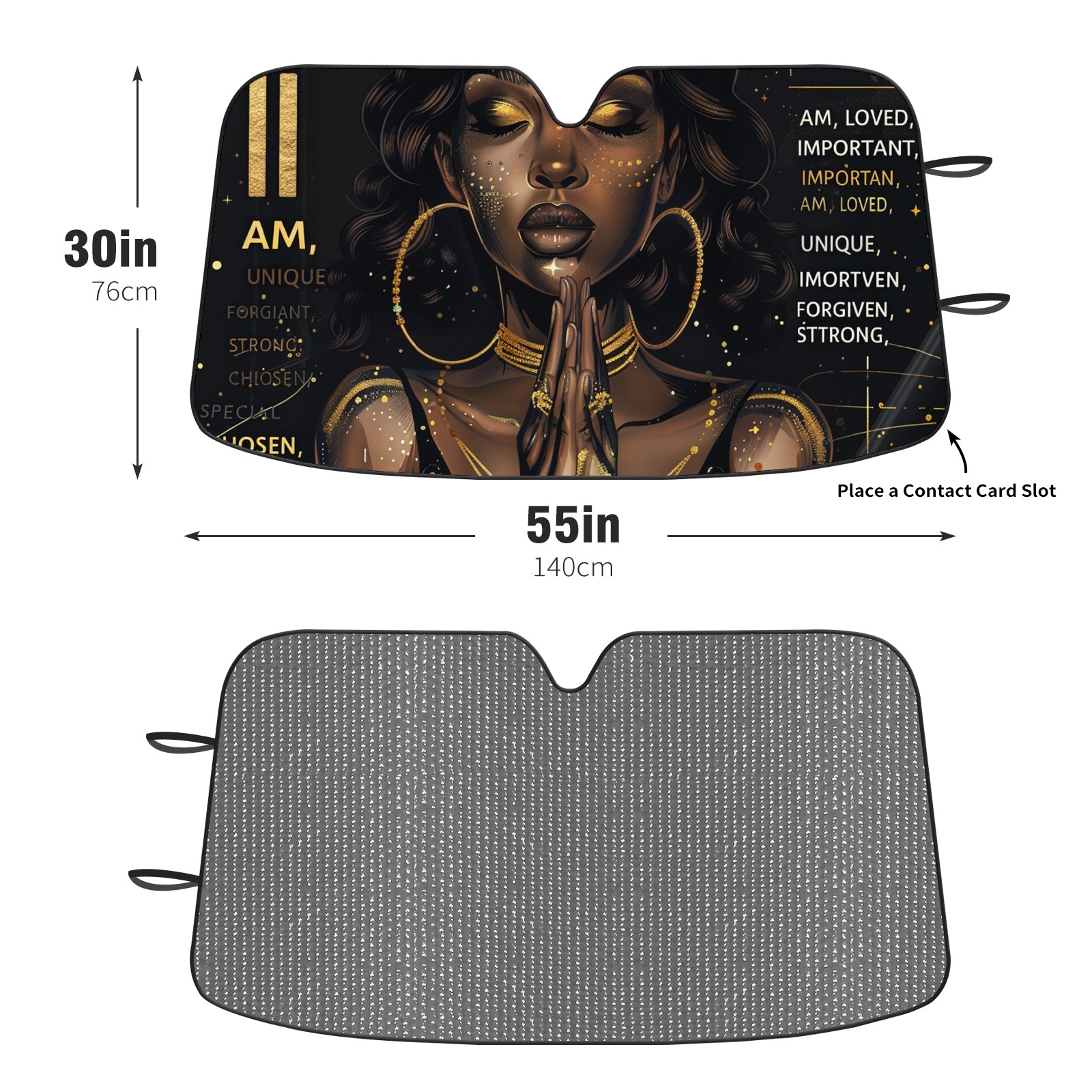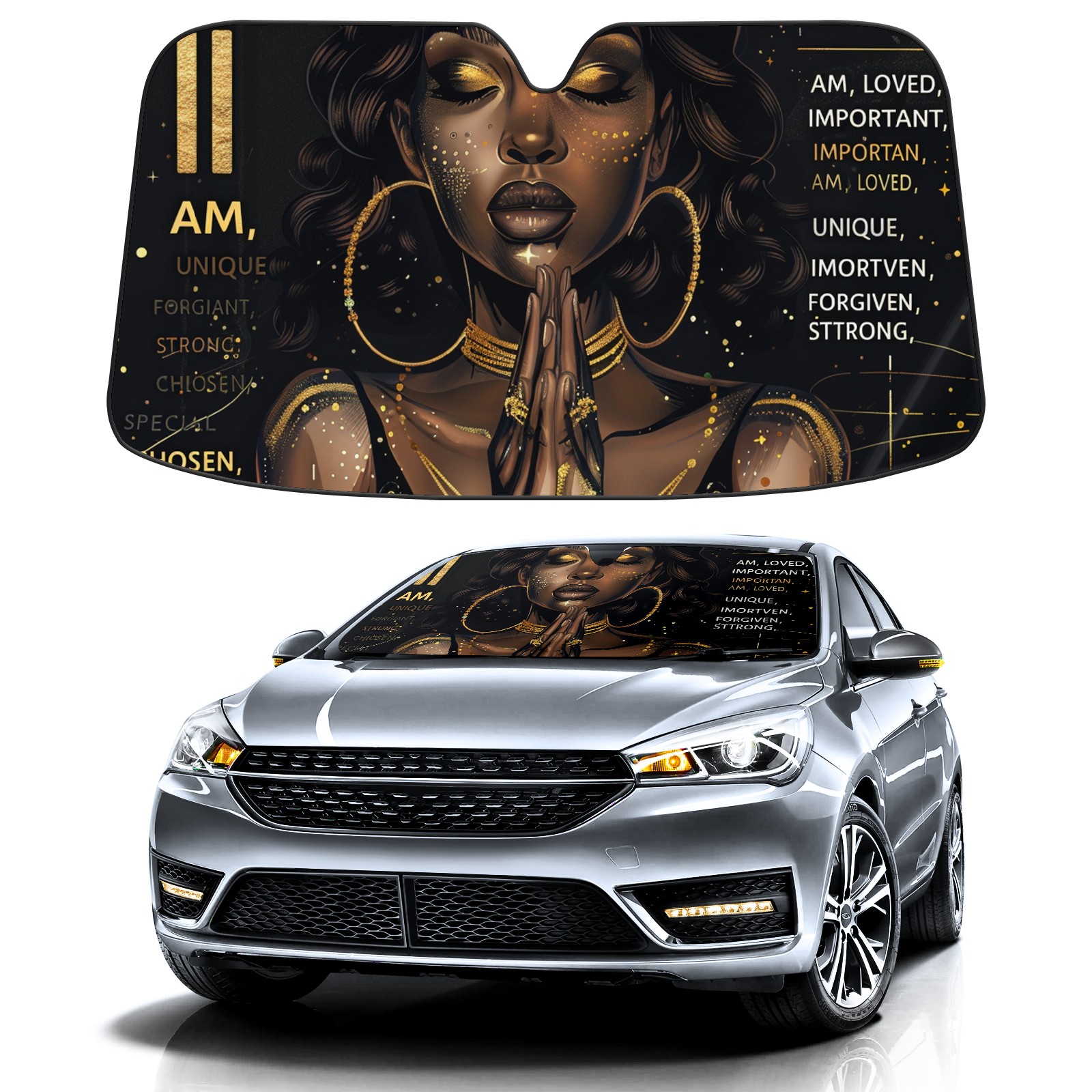 Car Windshield Sun Shade For Front Window Black Girl Foldable Vehicle Windshield Car Sun Visor Covers Automotive Window Protector Car Camping Privacy Sun Blocker
