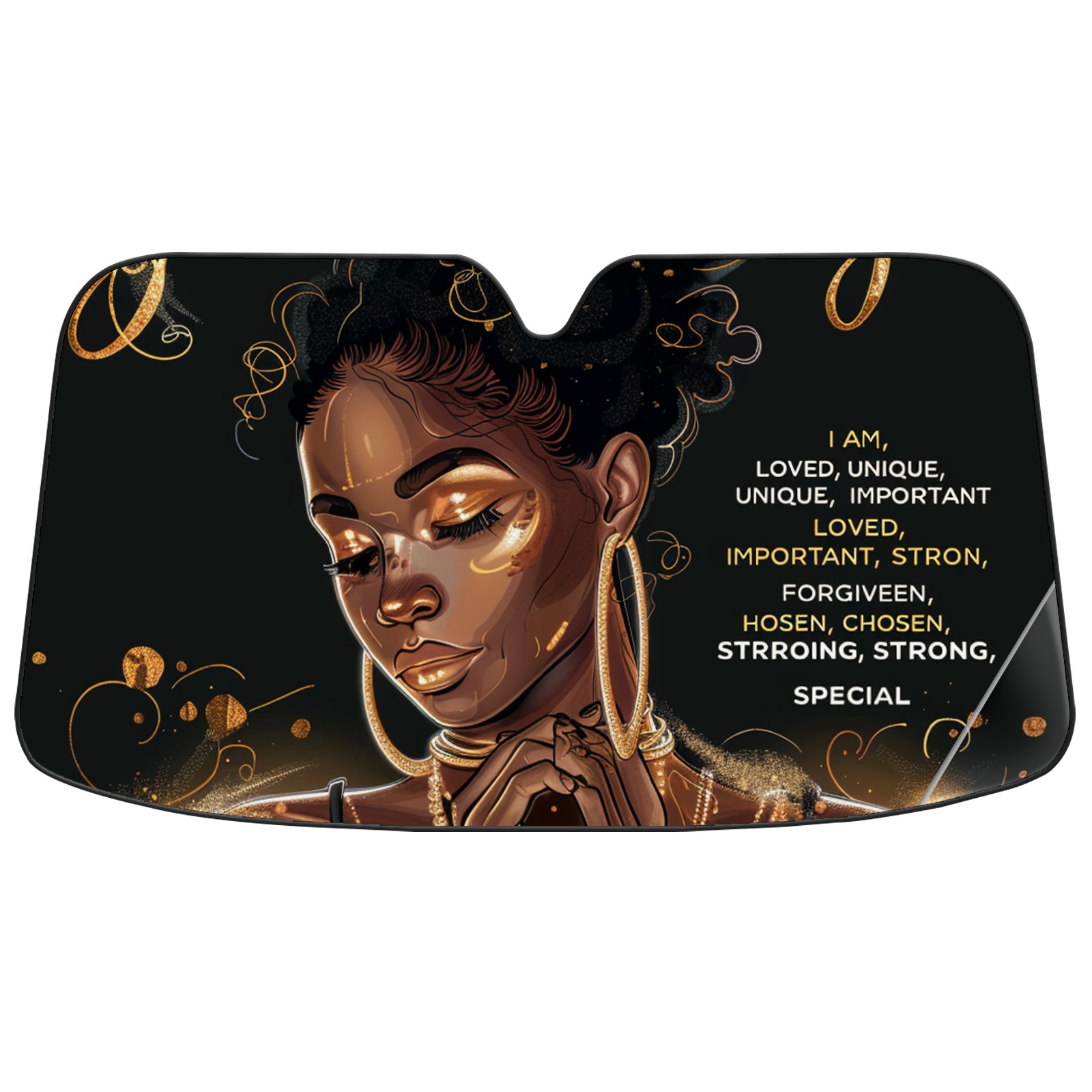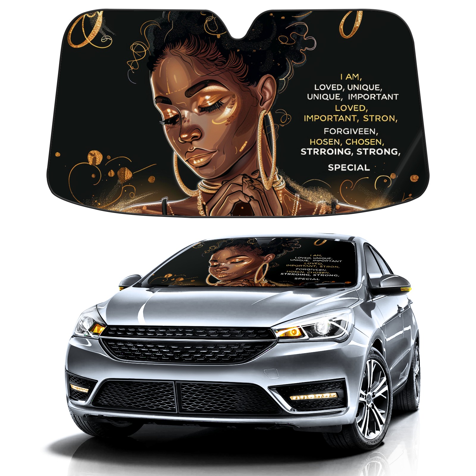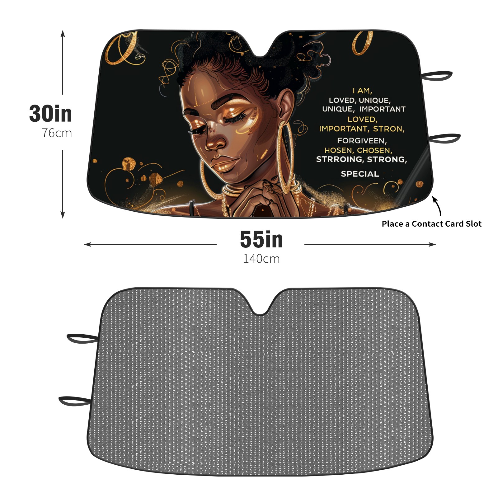 Car Windshield Sun Shade For Front Window Black Girl Foldable Vehicle Windshield Car Sun Visor Covers Automotive Window Protector Car Camping Privacy Sun Blocker