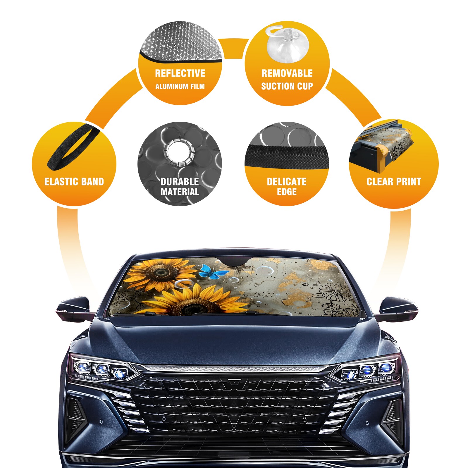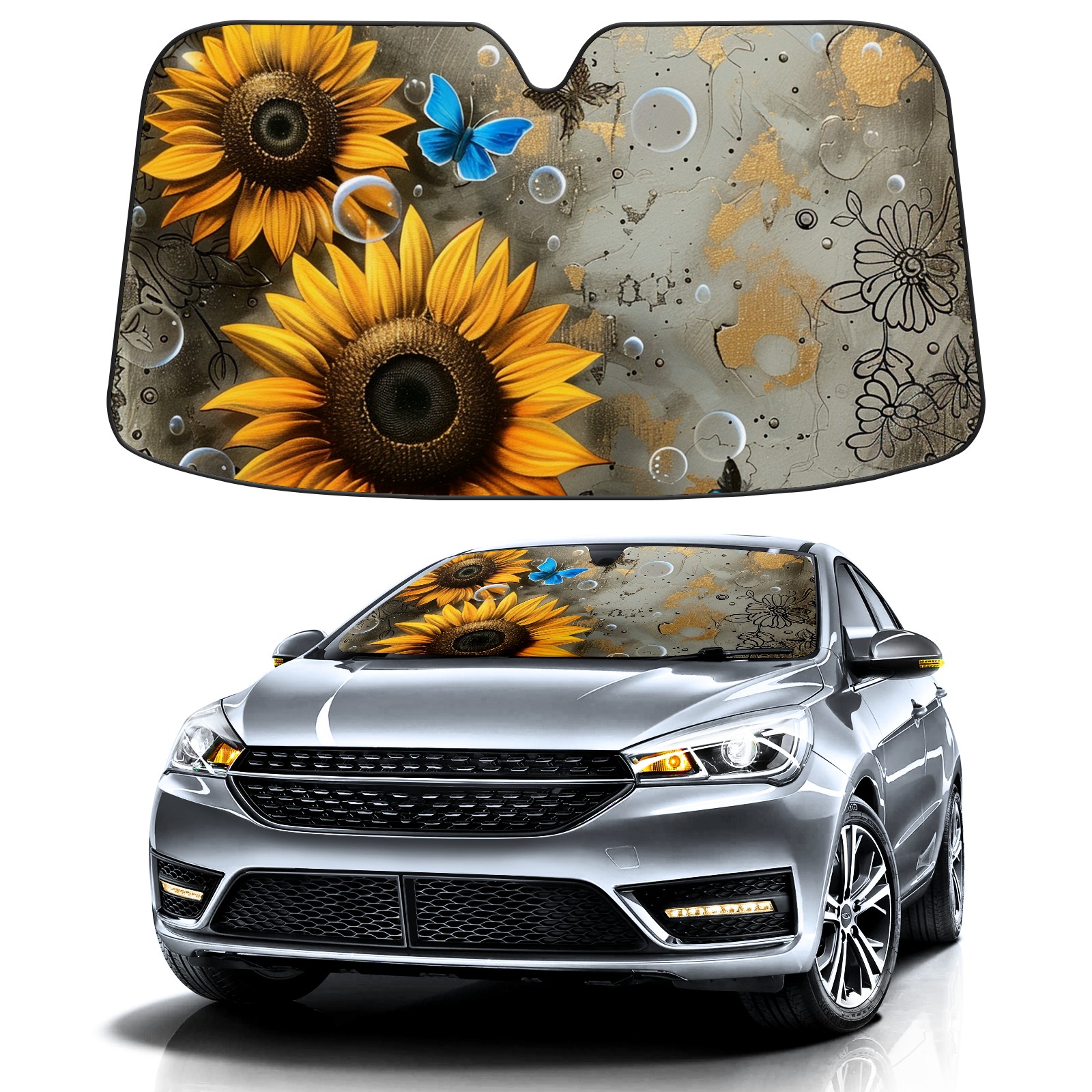 Car Windshield Sun Shade For Front Window Butterfly Daisy Foldable Vehicle Windshield Car Sun Visor Covers Automotive Window Protector Car Camping Privacy Sun Blocker