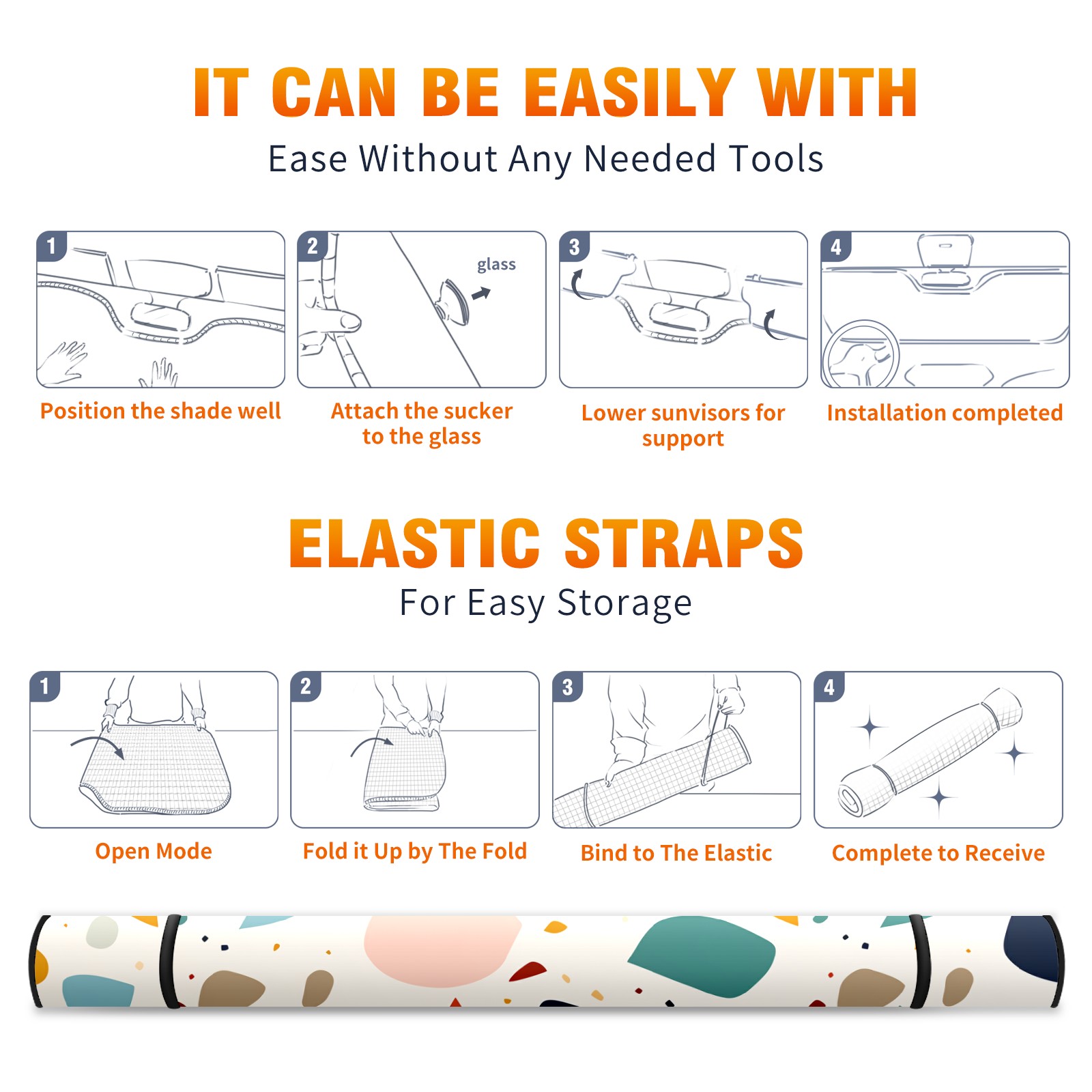 • Diameter /Size 63"L x 33.5"W Made from excellent materials which makes it sturdy and protects the car from the sun. Easy to use and pack. Makes the interior of the car cooler.You can easily stash the sunshade in the storage bag or store long term.It open and closes easy. Also the leather storage bag is durable and easy to put the umbrella back into.This windshield sunshade provides complete coverage and keeps your car interior cool under direct sun. It is easy to open and position under the windshield and around the rear-view mirror. Makes Your Car Easy To Identify, Perfect For Finding Your Car In Crowded Parking Lots And Garages.Great Choice: It Is A Great Gift For Dad, Boyfriend, Brother, Brother And Uncle, Friends, Classmates, Family And So On. Notice: Due To Difference Computer Monitors, The Color Maybe Slightly Different From Picture. As Different Measurement Methods, Measurement Data Will Float Within 2%.I Hope You Understand. If You Have Any Question About The Item Please Do Not Hesitate To Contact Us Immediately And We Will Give You A Satisfactory Reply Within 24 Hours.
