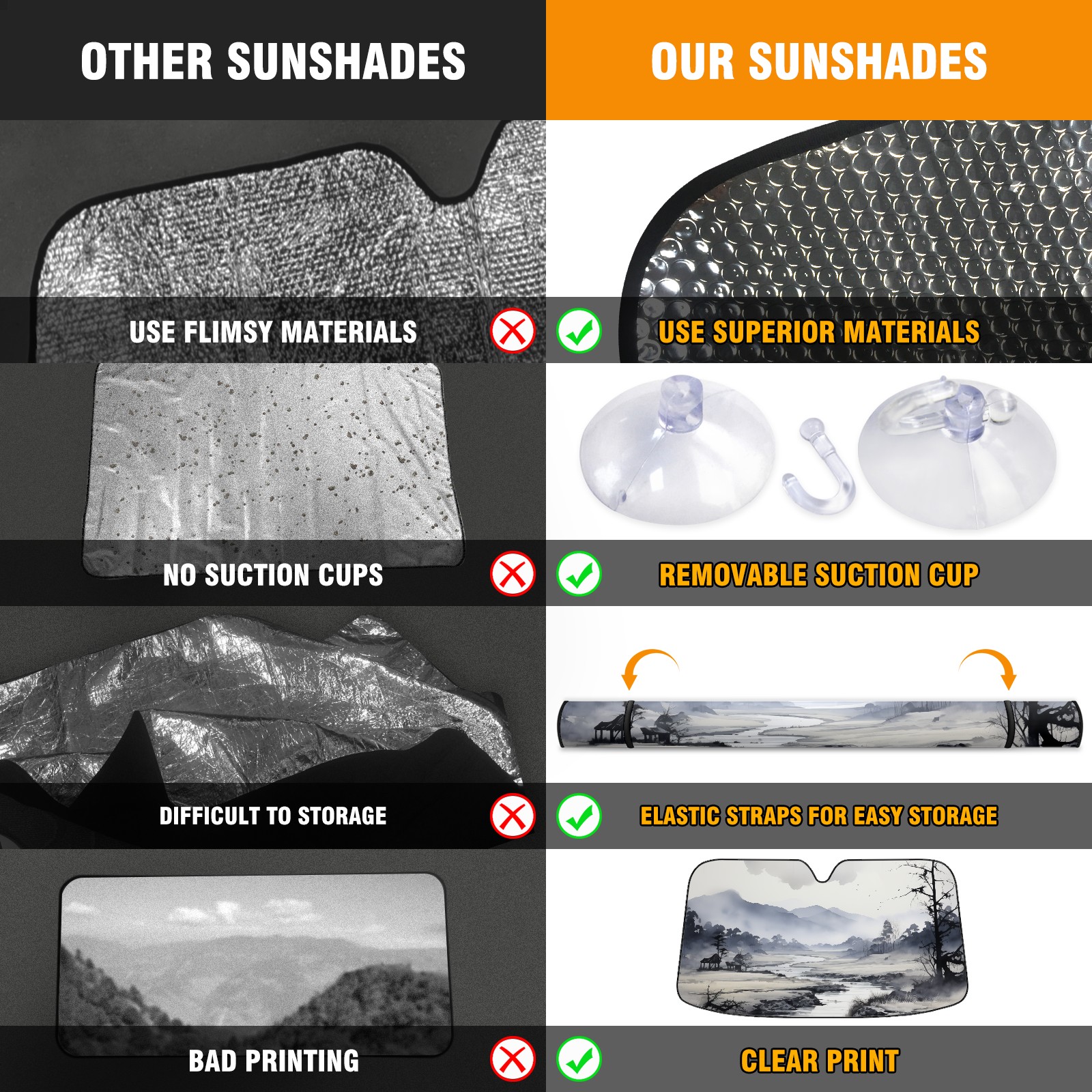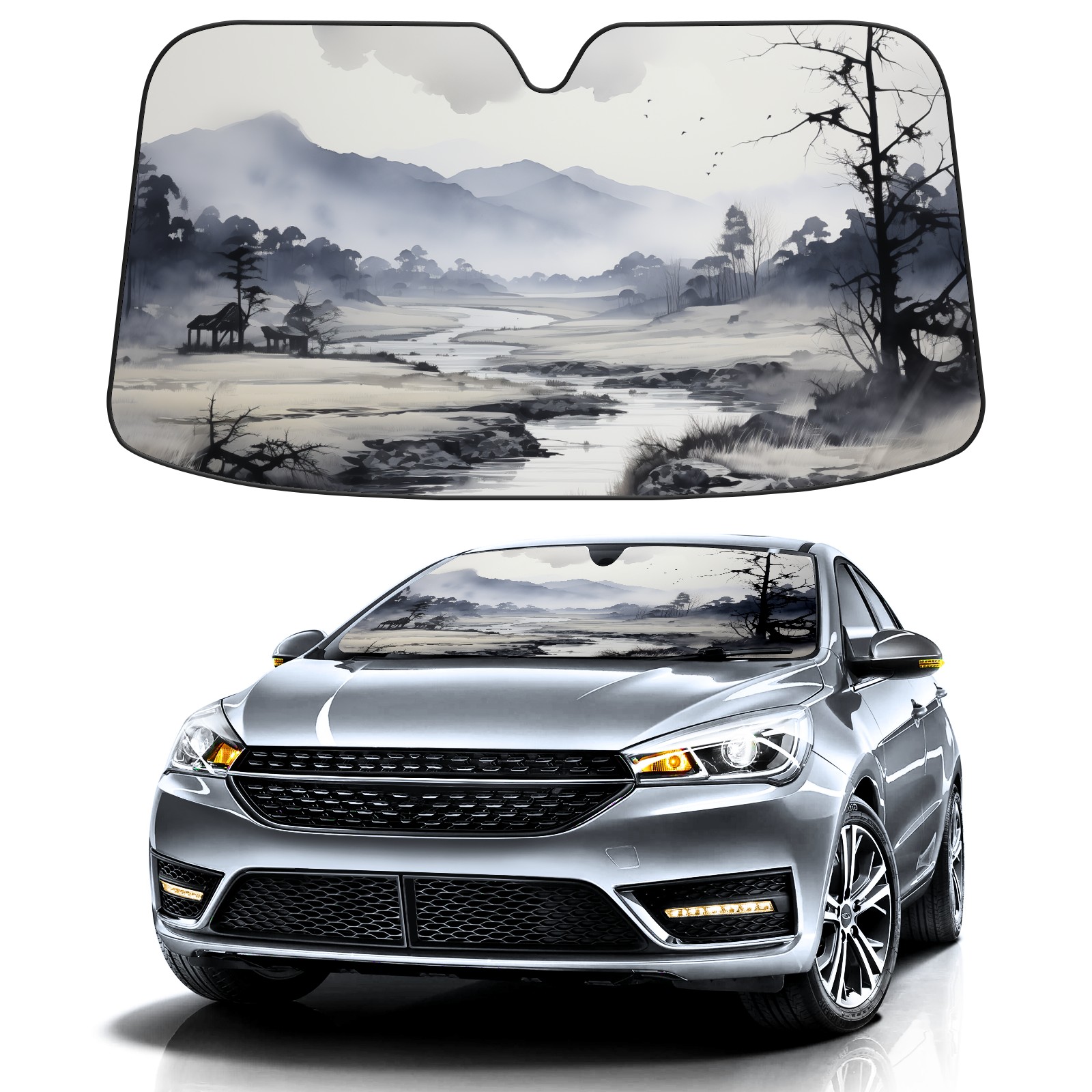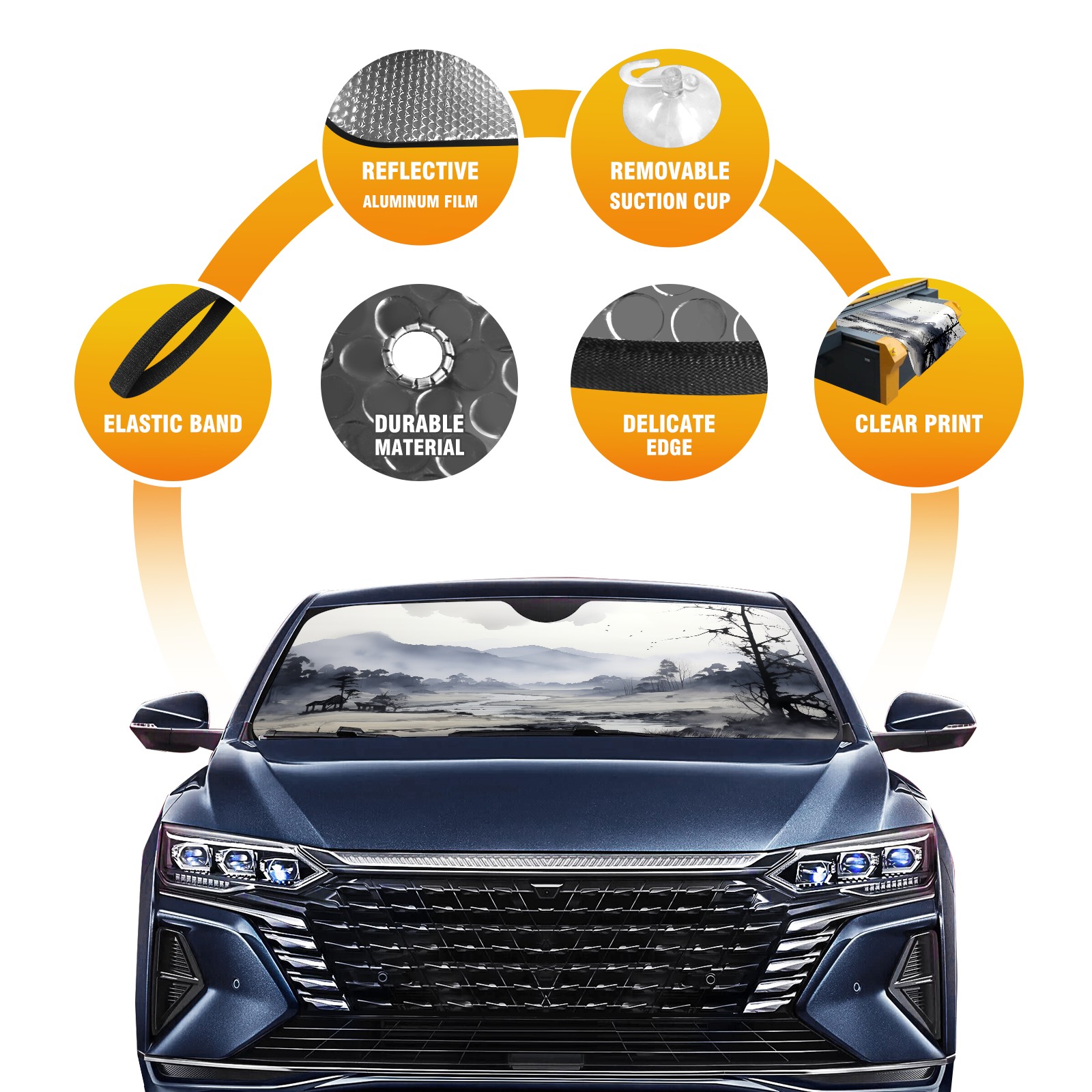 • Diameter /Size 63"L x 33.5"W Made from excellent materials which makes it sturdy and protects the car from the sun. Easy to use and pack. Makes the interior of the car cooler.You can easily stash the sunshade in the storage bag or store long term.It open and closes easy. Also the leather storage bag is durable and easy to put the umbrella back into.This windshield sunshade provides complete coverage and keeps your car interior cool under direct sun. It is easy to open and position under the windshield and around the rear-view mirror. Makes Your Car Easy To Identify, Perfect For Finding Your Car In Crowded Parking Lots And Garages.Great Choice: It Is A Great Gift For Dad, Boyfriend, Brother, Brother And Uncle, Friends, Classmates, Family And So On. Notice: Due To Difference Computer Monitors, The Color Maybe Slightly Different From Picture. As Different Measurement Methods, Measurement Data Will Float Within 2%.I Hope You Understand. If You Have Any Question About The Item Please Do Not Hesitate To Contact Us Immediately And We Will Give You A Satisfactory Reply Within 24 Hours.