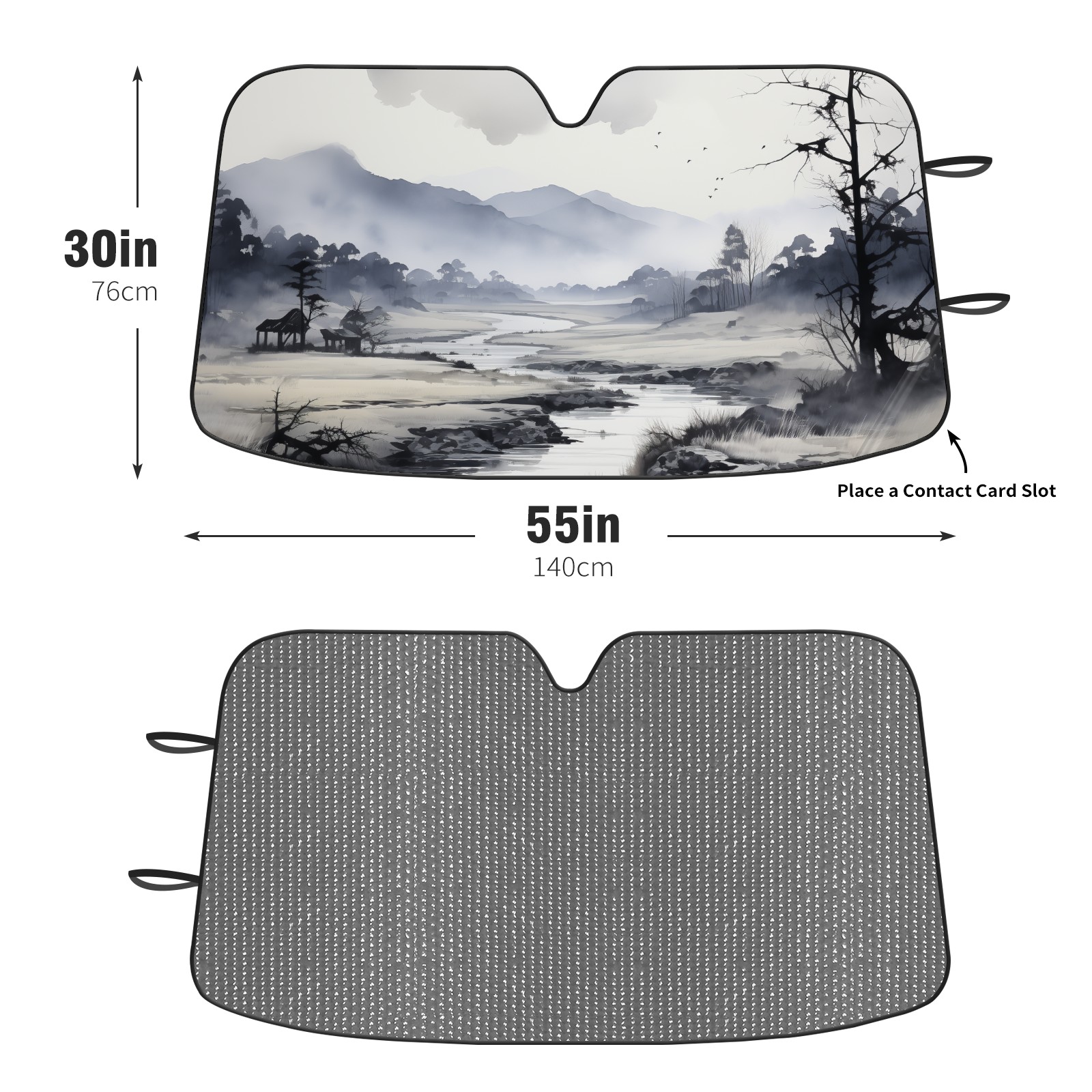 Diameter /Size 63"L x 33.5"W Made from excellent materials which makes it sturdy and protects the car from the sun. Easy to use and pack. Makes the interior of the car cooler.You can easily stash the sunshade in the storage bag or store long term.It open and closes easy. Also the leather storage bag is durable and easy to put the umbrella back into.This windshield sunshade provides complete coverage and keeps your car interior cool under direct sun. It is easy to open and position under the windshield and around the rear-view mirror. Makes Your Car Easy To Identify, Perfect For Finding Your Car In Crowded Parking Lots And Garages.Great Choice: It Is A Great Gift For Dad, Boyfriend, Brother, Brother And Uncle, Friends, Classmates, Family And So On. Notice: Due To Difference Computer Monitors, The Color Maybe Slightly Different From Picture. As Different Measurement Methods, Measurement Data Will Float Within 2%.I Hope You Understand. If You Have Any Question About The Item Please Do Not Hesitate To Contact Us Immediately And We Will Give You A Satisfactory Reply Within 24 Hours.