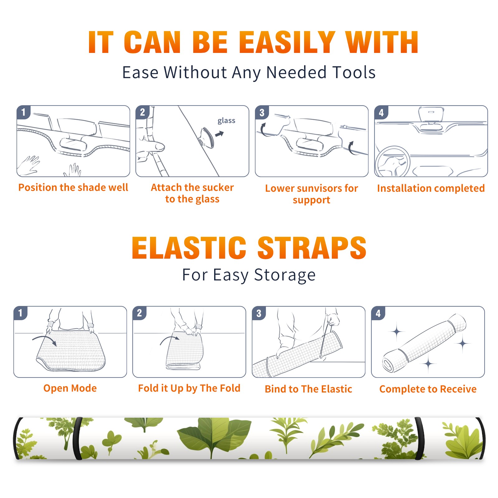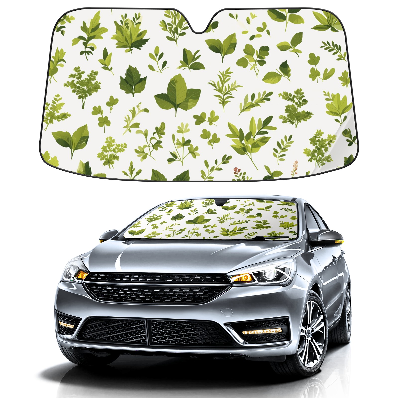 Car Windshield Sun Shade For Front Window Green Plant Foldable Vehicle Windshield Car Sun Visor Covers Automotive Window Protector Car Camping Privacy Sun Blocker