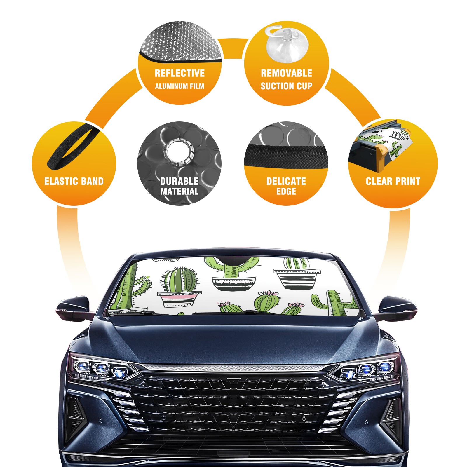Car Windshield Sun Shade For Front Window Cactus Foldable Vehicle Windshield Car Sun Visor Covers Automotive Window Protector Car Camping Privacy Sun Blocker