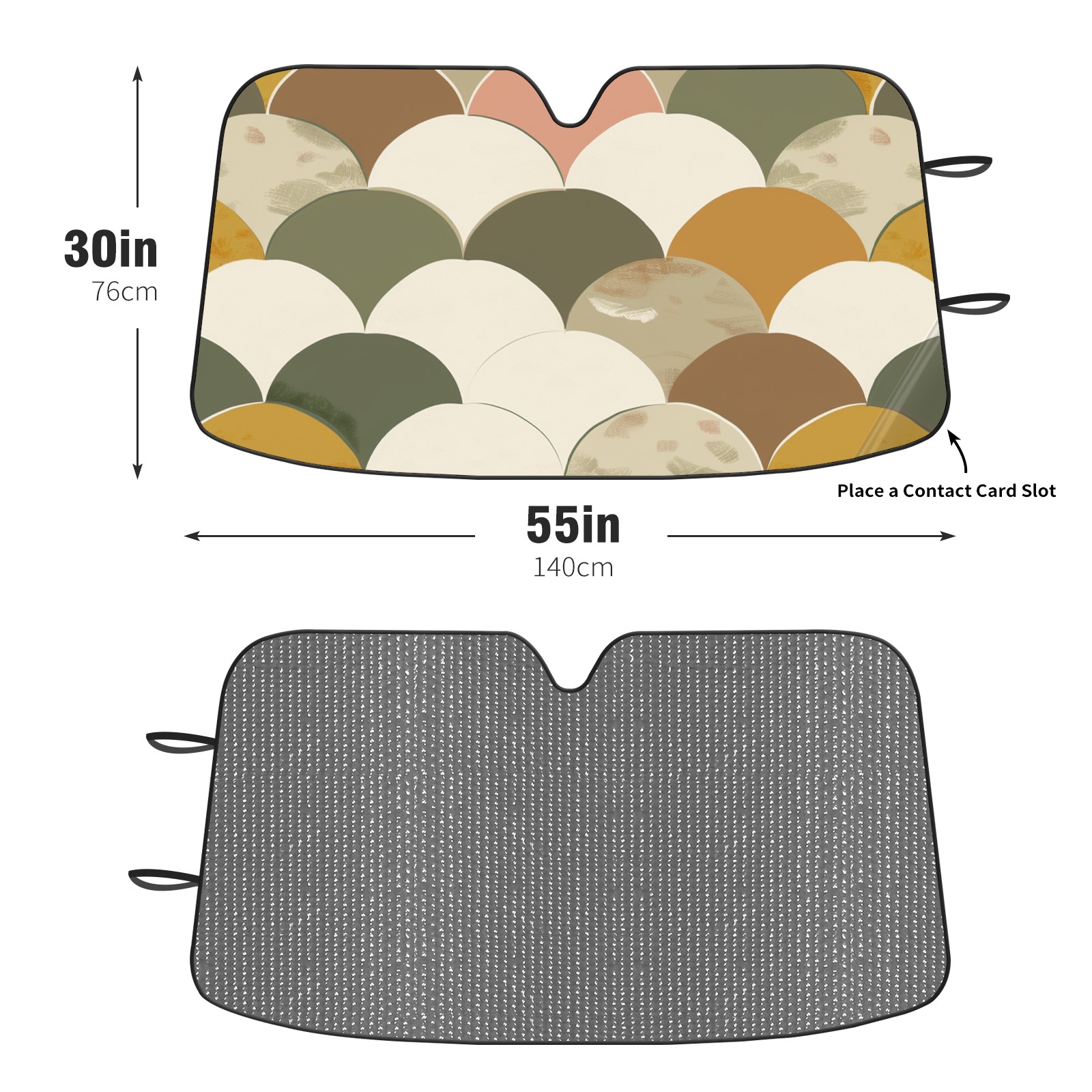 Diameter /Size 63"L x 33.5"W Made from excellent materials which makes it sturdy and protects the car from the sun. Easy to use and pack. Makes the interior of the car cooler.You can easily stash the sunshade in the storage bag or store long term.It open and closes easy. Also the leather storage bag is durable and easy to put the umbrella back into.This windshield sunshade provides complete coverage and keeps your car interior cool under direct sun. It is easy to open and position under the windshield and around the rear-view mirror. Makes Your Car Easy To Identify, Perfect For Finding Your Car In Crowded Parking Lots And Garages.Great Choice: It Is A Great Gift For Dad, Boyfriend, Brother, Brother And Uncle, Friends, Classmates, Family And So On. Notice: Due To Difference Computer Monitors, The Color Maybe Slightly Different From Picture. As Different Measurement Methods, Measurement Data Will Float Within 2%.I Hope You Understand. If You Have Any Question About The Item Please Do Not Hesitate To Contact Us Immediately And We Will Give You A Satisfactory Reply Within 24 Hours.