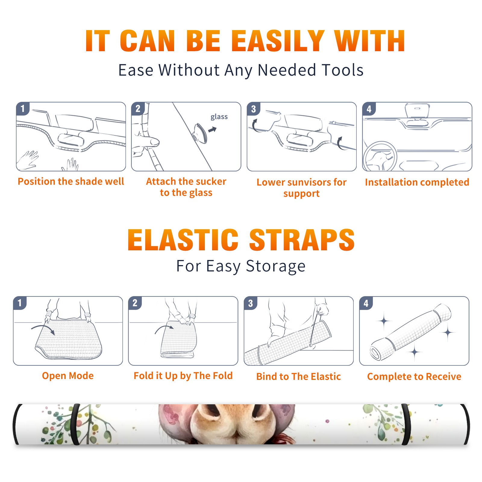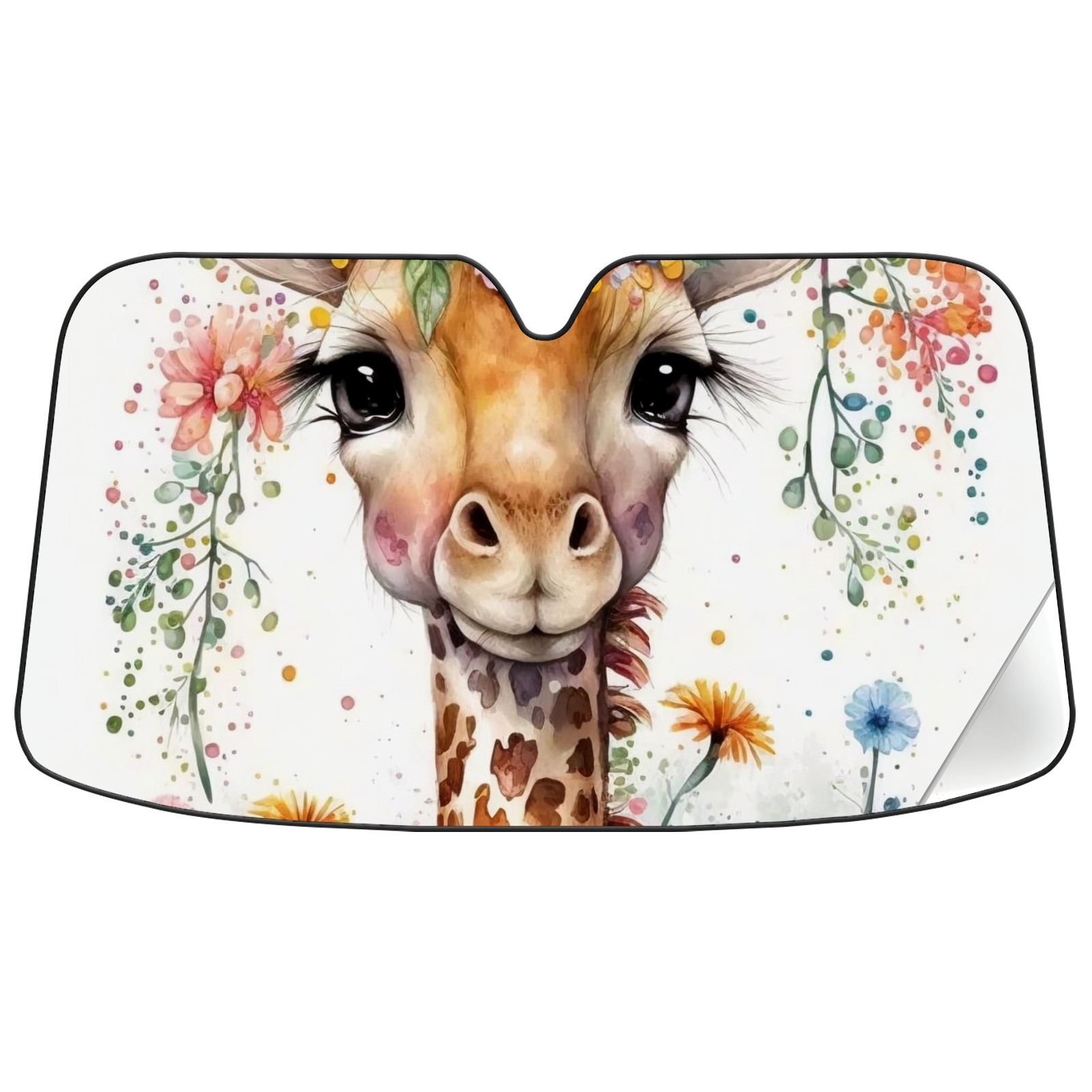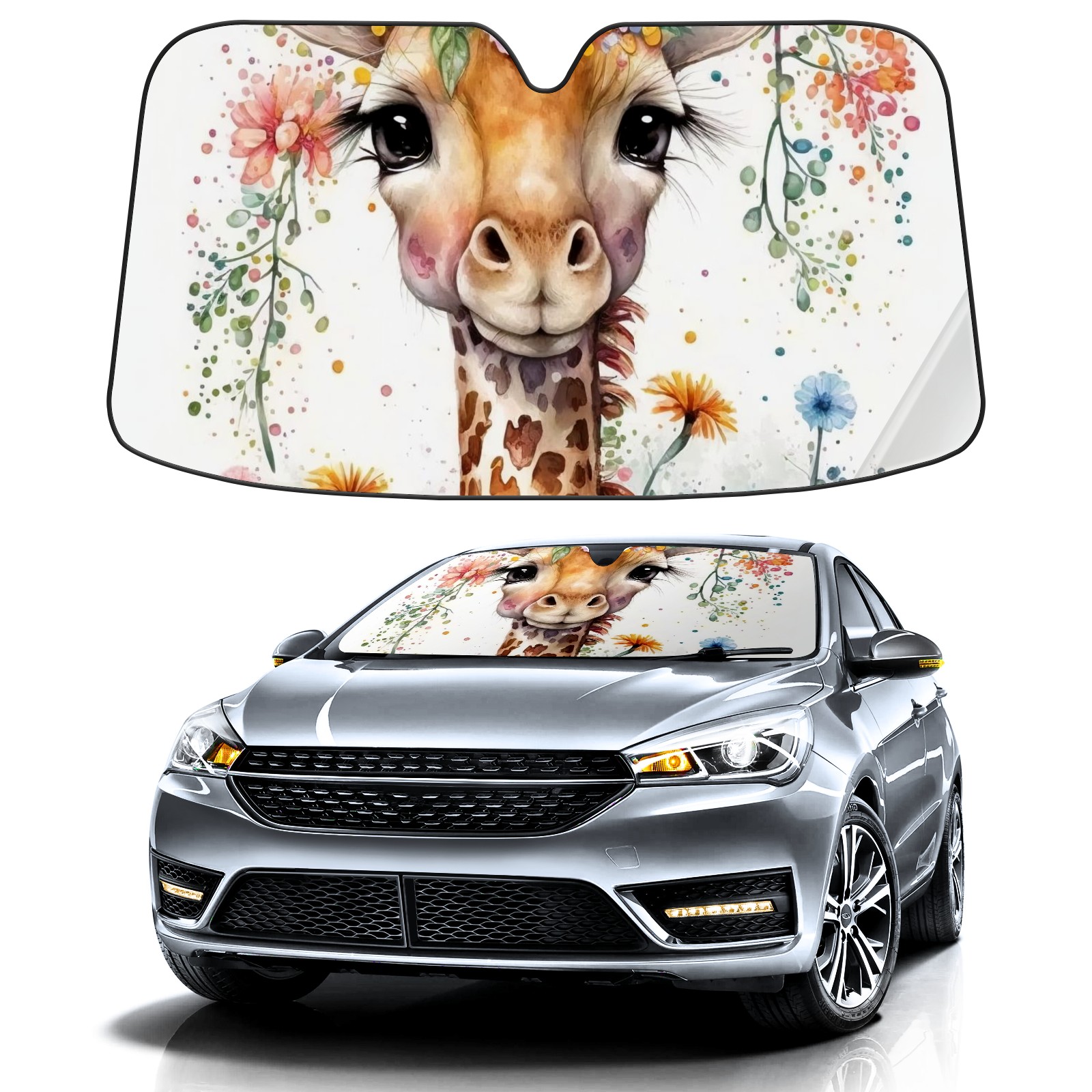 Car Windshield Sun Shade For Front Window Watercolor Painting Giraffe Flower (2) Foldable Vehicle Windshield Car Sun Visor Covers Automotive Window Protector Car Camping Privacy Sun Blocker