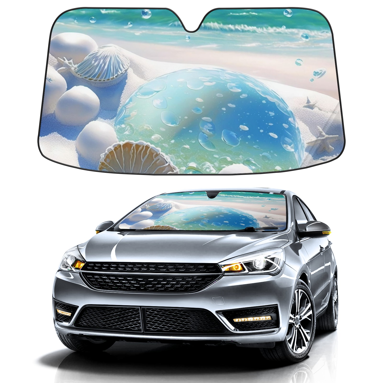 Car Windshield Sun Shade For Front Window Painting Beach Shells Foldable Vehicle Windshield Car Sun Visor Covers Automotive Window Protector Car Camping Privacy Sun Blocker