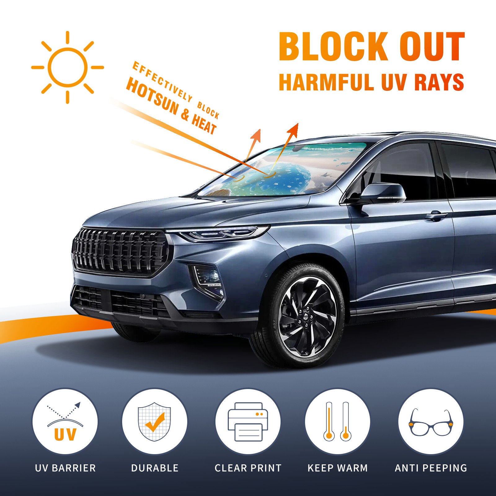 • Diameter /Size 63"L x 33.5"W Made from excellent materials which makes it sturdy and protects the car from the sun. Easy to use and pack. Makes the interior of the car cooler.You can easily stash the sunshade in the storage bag or store long term.It open and closes easy. Also the leather storage bag is durable and easy to put the umbrella back into.This windshield sunshade provides complete coverage and keeps your car interior cool under direct sun. It is easy to open and position under the windshield and around the rear-view mirror. Makes Your Car Easy To Identify, Perfect For Finding Your Car In Crowded Parking Lots And Garages.Great Choice: It Is A Great Gift For Dad, Boyfriend, Brother, Brother And Uncle, Friends, Classmates, Family And So On. Notice: Due To Difference Computer Monitors, The Color Maybe Slightly Different From Picture. As Different Measurement Methods, Measurement Data Will Float Within 2%.I Hope You Understand. If You Have Any Question About The Item Please Do Not Hesitate To Contact Us Immediately And We Will Give You A Satisfactory Reply Within 24 Hours.