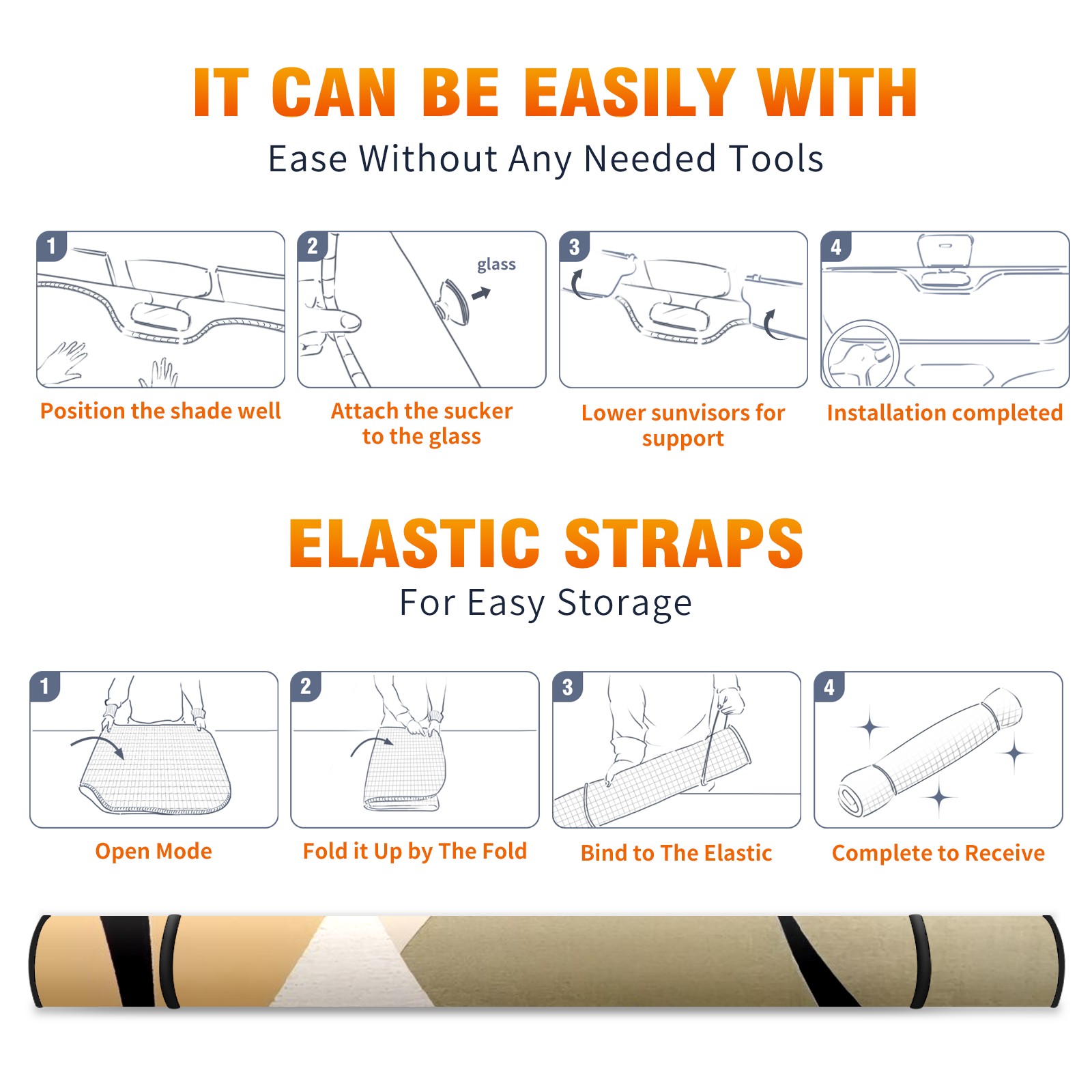 • Diameter /Size 63"L x 33.5"W Made from excellent materials which makes it sturdy and protects the car from the sun. Easy to use and pack. Makes the interior of the car cooler.You can easily stash the sunshade in the storage bag or store long term.It open and closes easy. Also the leather storage bag is durable and easy to put the umbrella back into.This windshield sunshade provides complete coverage and keeps your car interior cool under direct sun. It is easy to open and position under the windshield and around the rear-view mirror. Makes Your Car Easy To Identify, Perfect For Finding Your Car In Crowded Parking Lots And Garages.Great Choice: It Is A Great Gift For Dad, Boyfriend, Brother, Brother And Uncle, Friends, Classmates, Family And So On. Notice: Due To Difference Computer Monitors, The Color Maybe Slightly Different From Picture. As Different Measurement Methods, Measurement Data Will Float Within 2%.I Hope You Understand. If You Have Any Question About The Item Please Do Not Hesitate To Contact Us Immediately And We Will Give You A Satisfactory Reply Within 24 Hours.