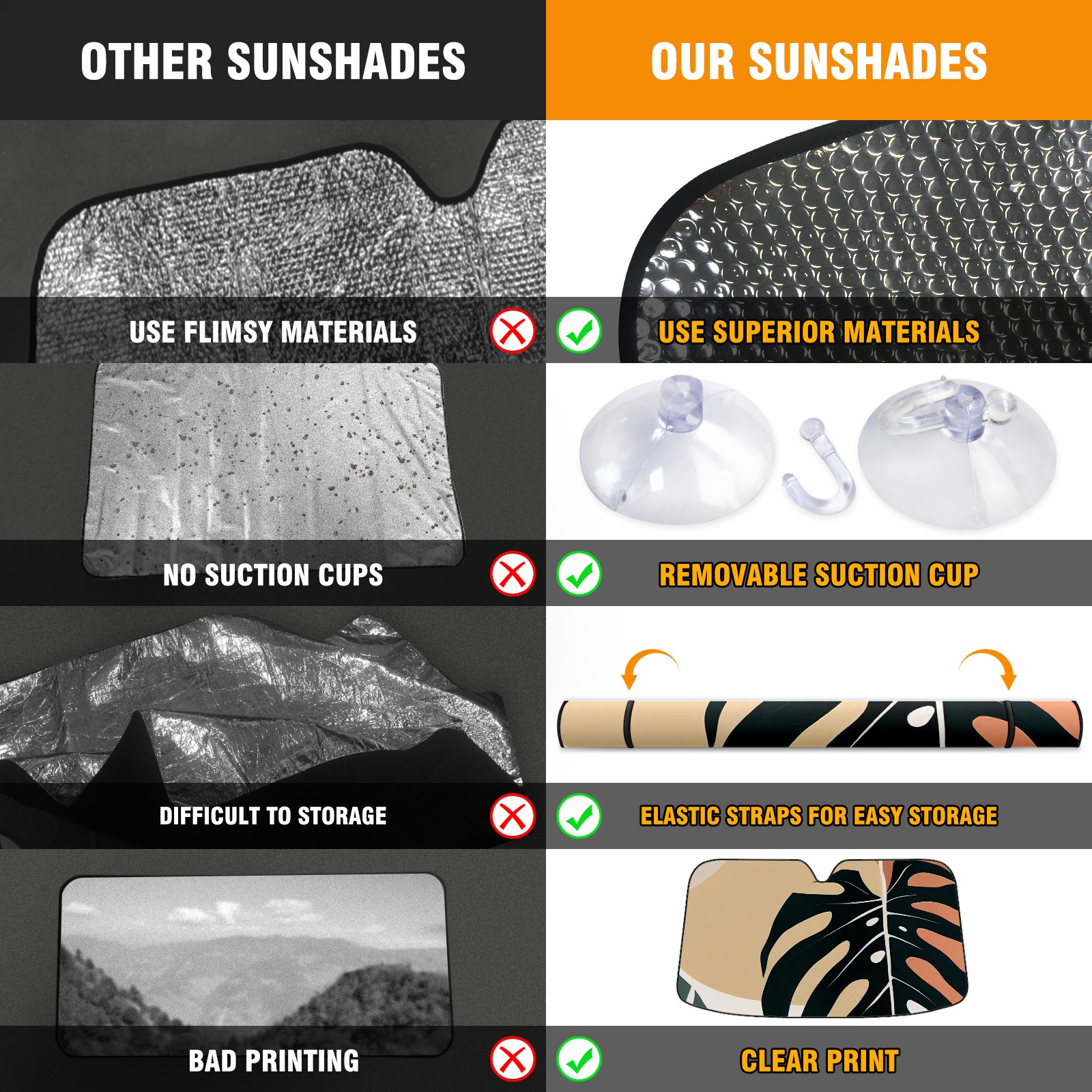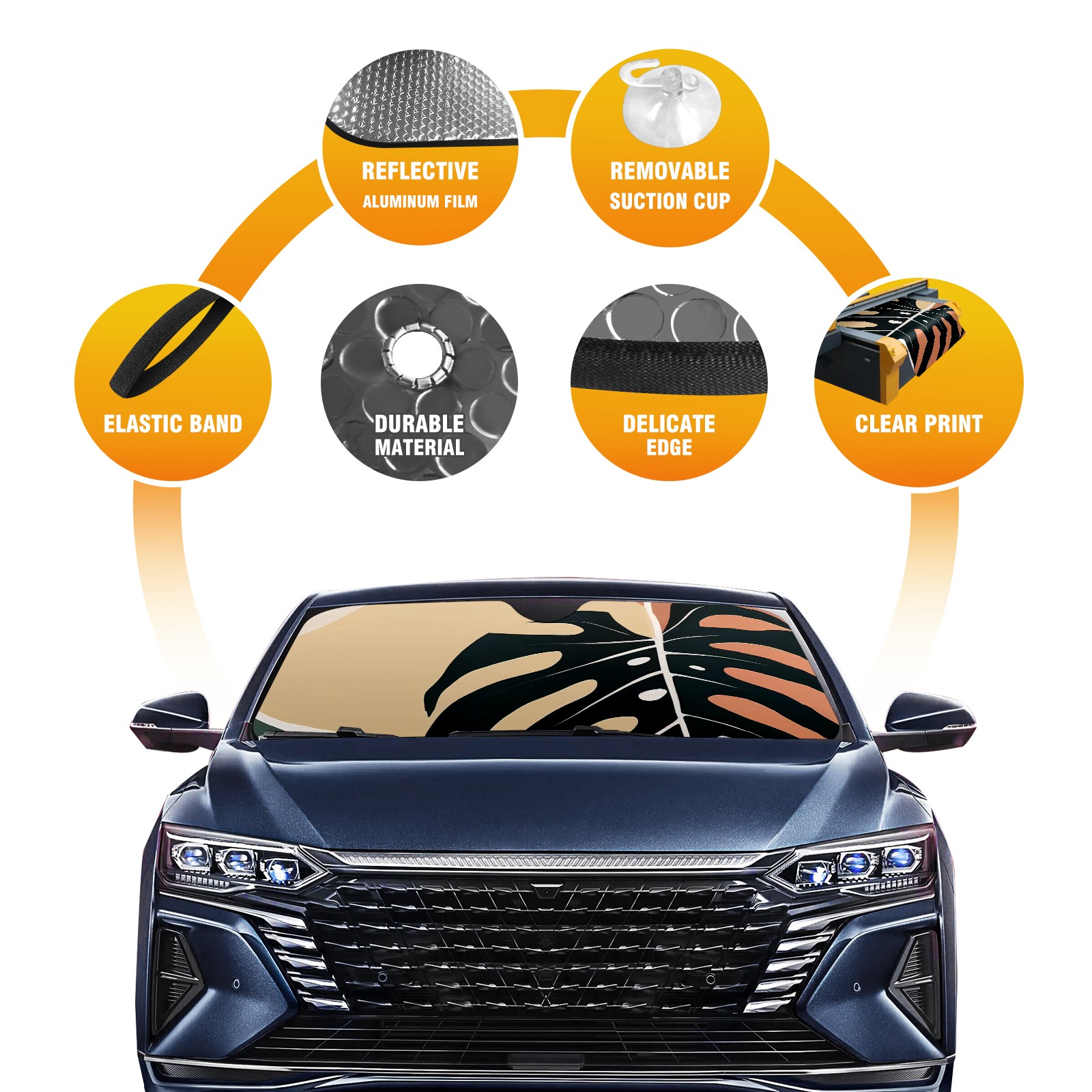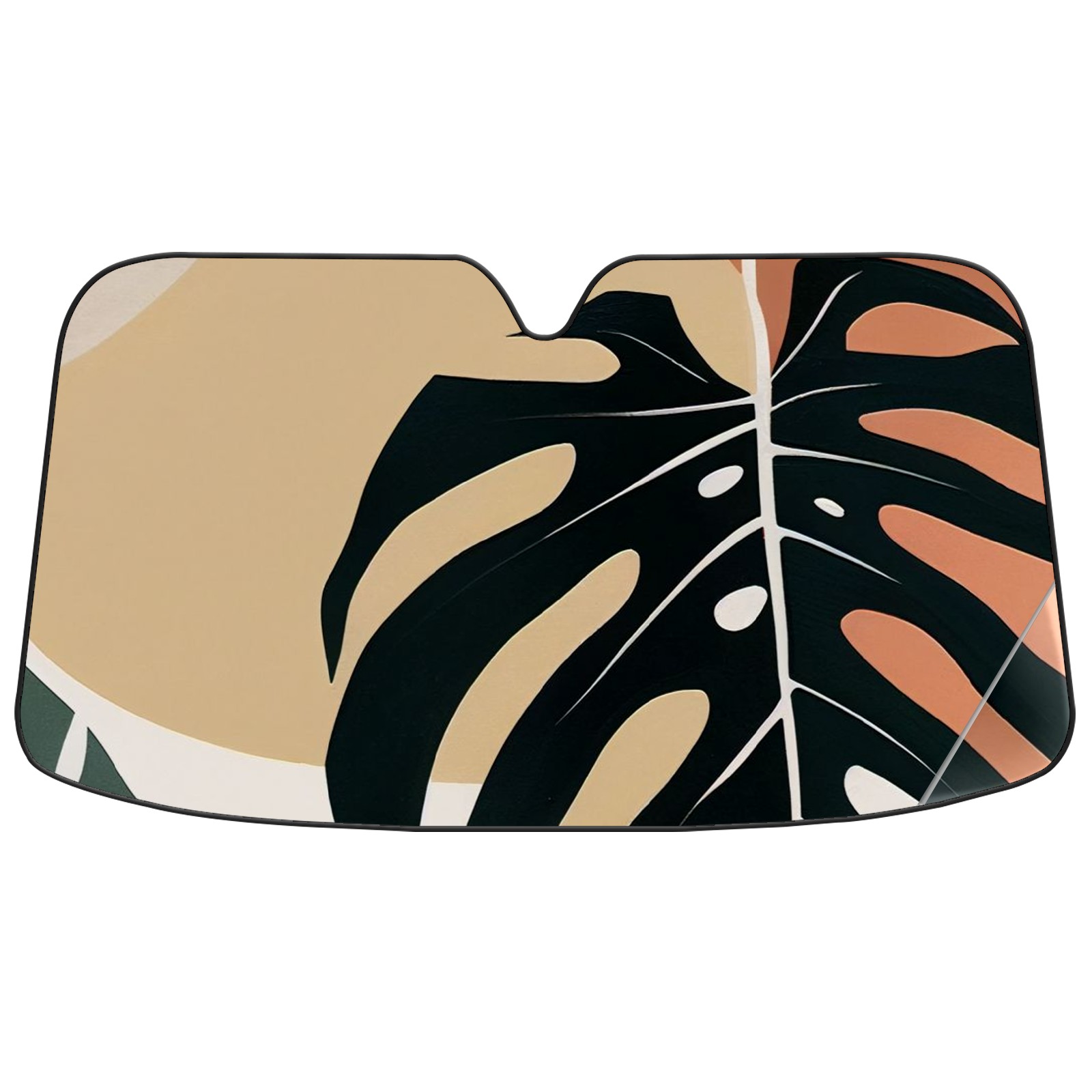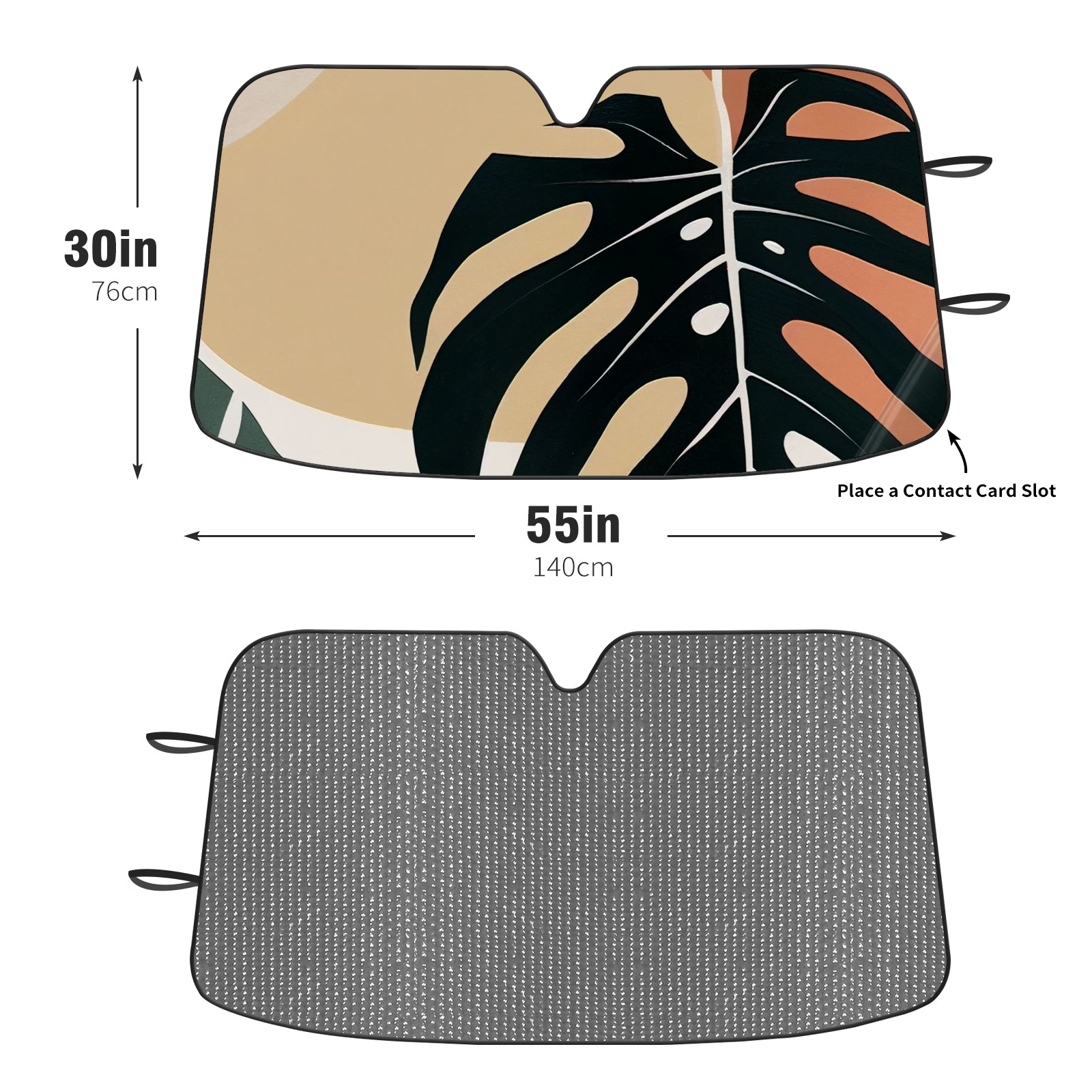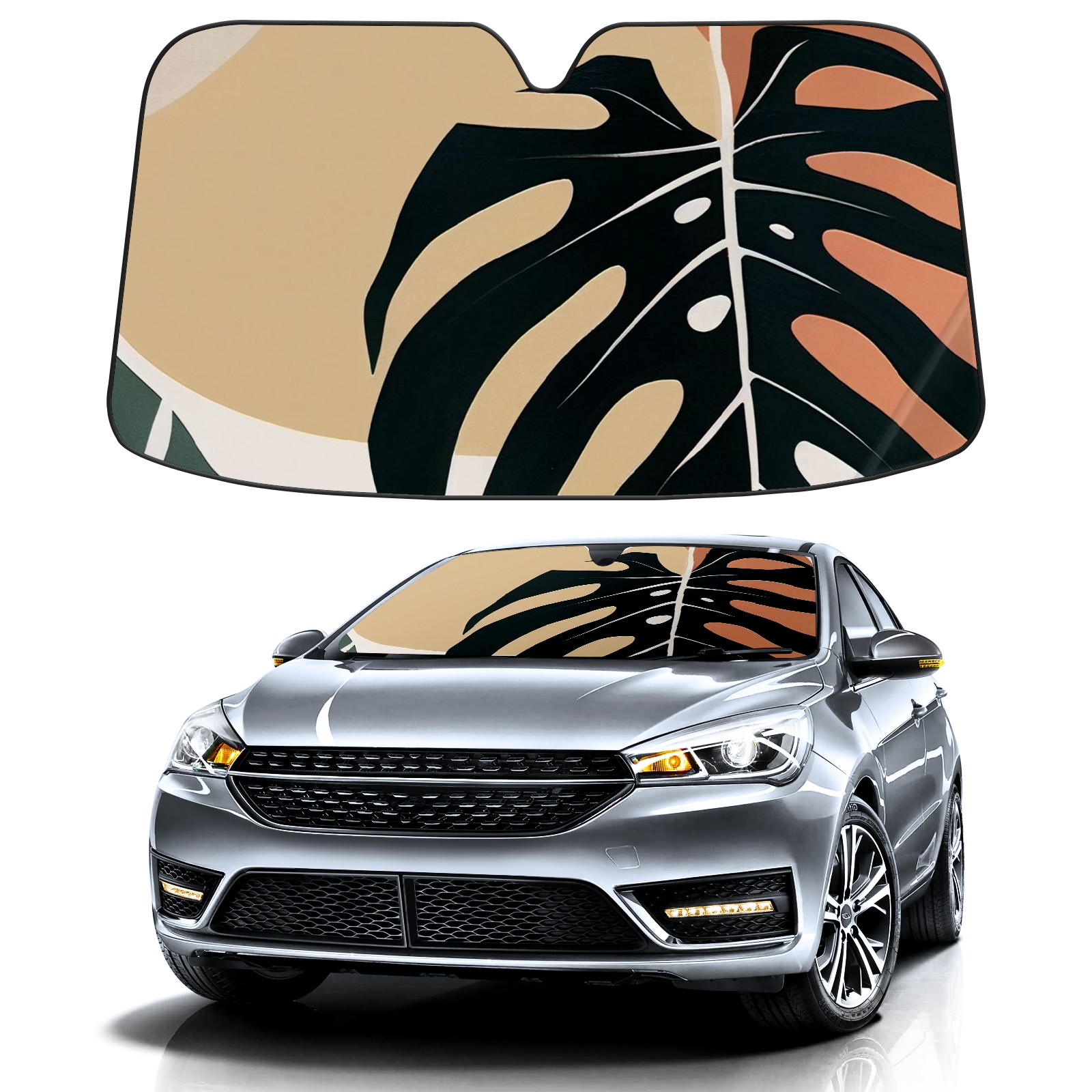 Car Windshield Sun Shade For Front Window Boho Tropical Leaves Foldable Vehicle Windshield Car Sun Visor Covers Automotive Window Protector Car Camping Privacy Sun Blocker