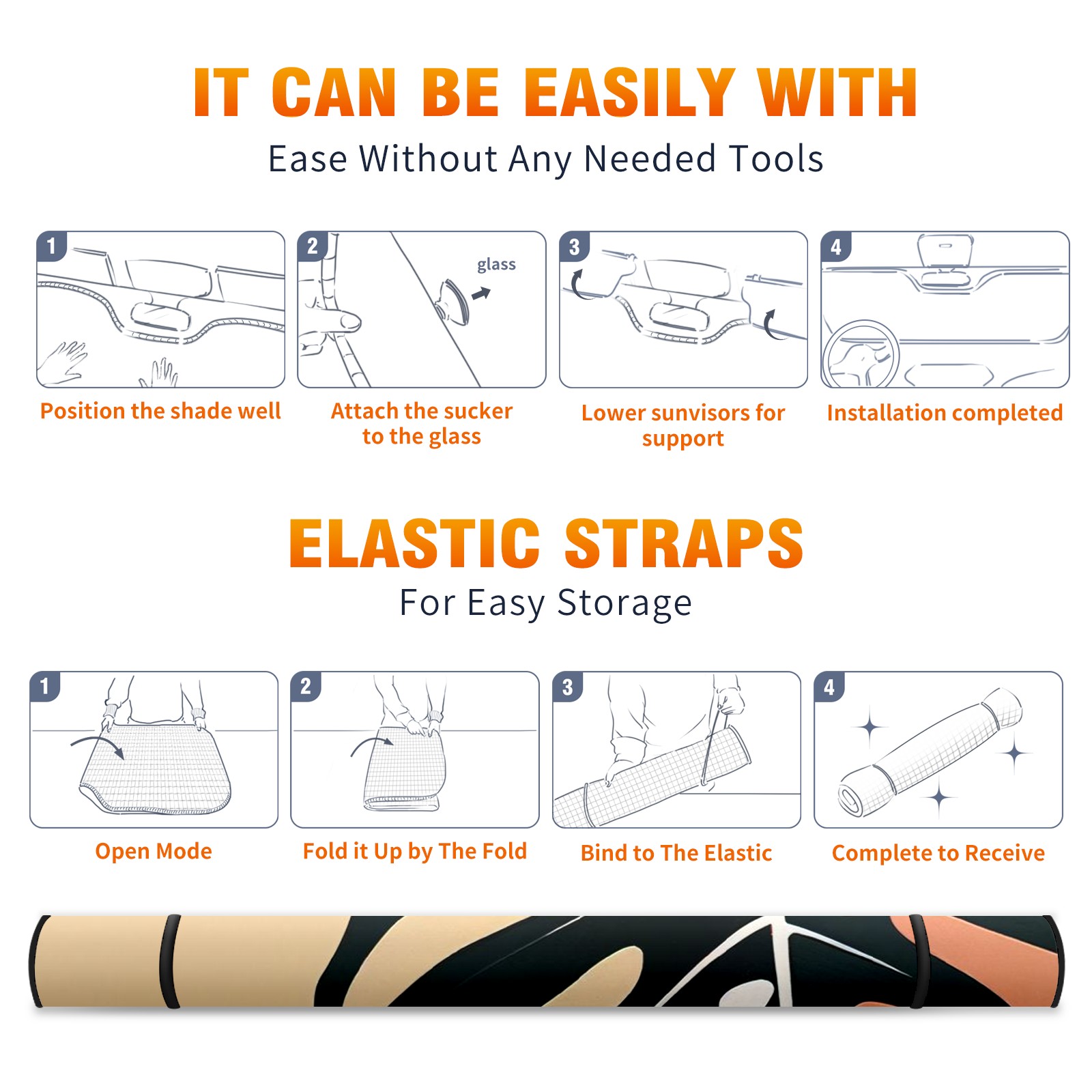 • Diameter /Size 63"L x 33.5"W Made from excellent materials which makes it sturdy and protects the car from the sun. Easy to use and pack. Makes the interior of the car cooler.You can easily stash the sunshade in the storage bag or store long term.It open and closes easy. Also the leather storage bag is durable and easy to put the umbrella back into.This windshield sunshade provides complete coverage and keeps your car interior cool under direct sun. It is easy to open and position under the windshield and around the rear-view mirror. Makes Your Car Easy To Identify, Perfect For Finding Your Car In Crowded Parking Lots And Garages.Great Choice: It Is A Great Gift For Dad, Boyfriend, Brother, Brother And Uncle, Friends, Classmates, Family And So On. Notice: Due To Difference Computer Monitors, The Color Maybe Slightly Different From Picture. As Different Measurement Methods, Measurement Data Will Float Within 2%.I Hope You Understand. If You Have Any Question About The Item Please Do Not Hesitate To Contact Us Immediately And We Will Give You A Satisfactory Reply Within 24 Hours.