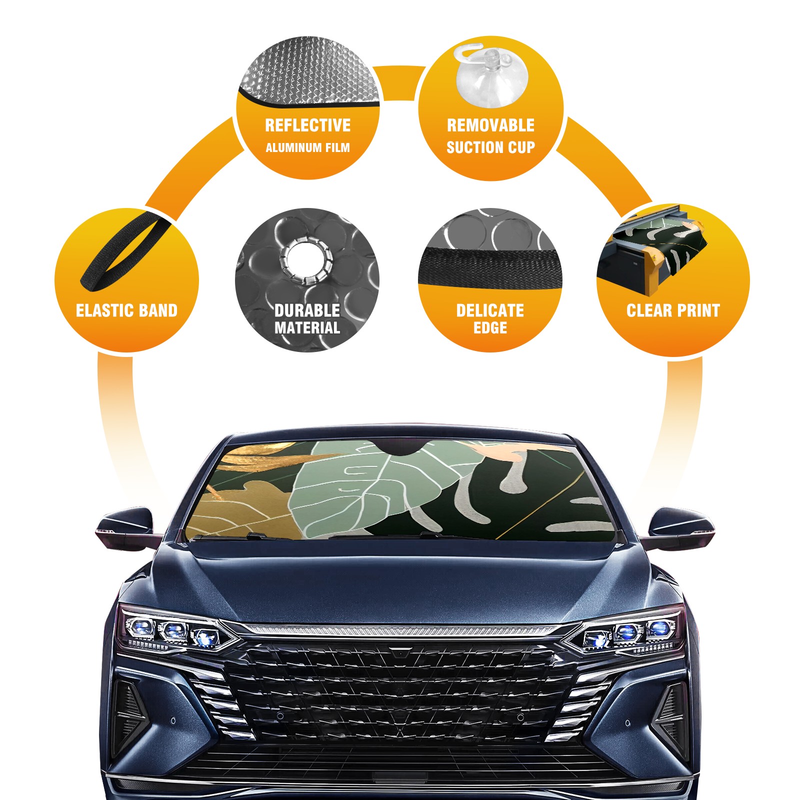 • Diameter /Size 63"L x 33.5"W Made from excellent materials which makes it sturdy and protects the car from the sun. Easy to use and pack. Makes the interior of the car cooler.You can easily stash the sunshade in the storage bag or store long term.It open and closes easy. Also the leather storage bag is durable and easy to put the umbrella back into.This windshield sunshade provides complete coverage and keeps your car interior cool under direct sun. It is easy to open and position under the windshield and around the rear-view mirror. Makes Your Car Easy To Identify, Perfect For Finding Your Car In Crowded Parking Lots And Garages.Great Choice: It Is A Great Gift For Dad, Boyfriend, Brother, Brother And Uncle, Friends, Classmates, Family And So On. Notice: Due To Difference Computer Monitors, The Color Maybe Slightly Different From Picture. As Different Measurement Methods, Measurement Data Will Float Within 2%.I Hope You Understand. If You Have Any Question About The Item Please Do Not Hesitate To Contact Us Immediately And We Will Give You A Satisfactory Reply Within 24 Hours.
