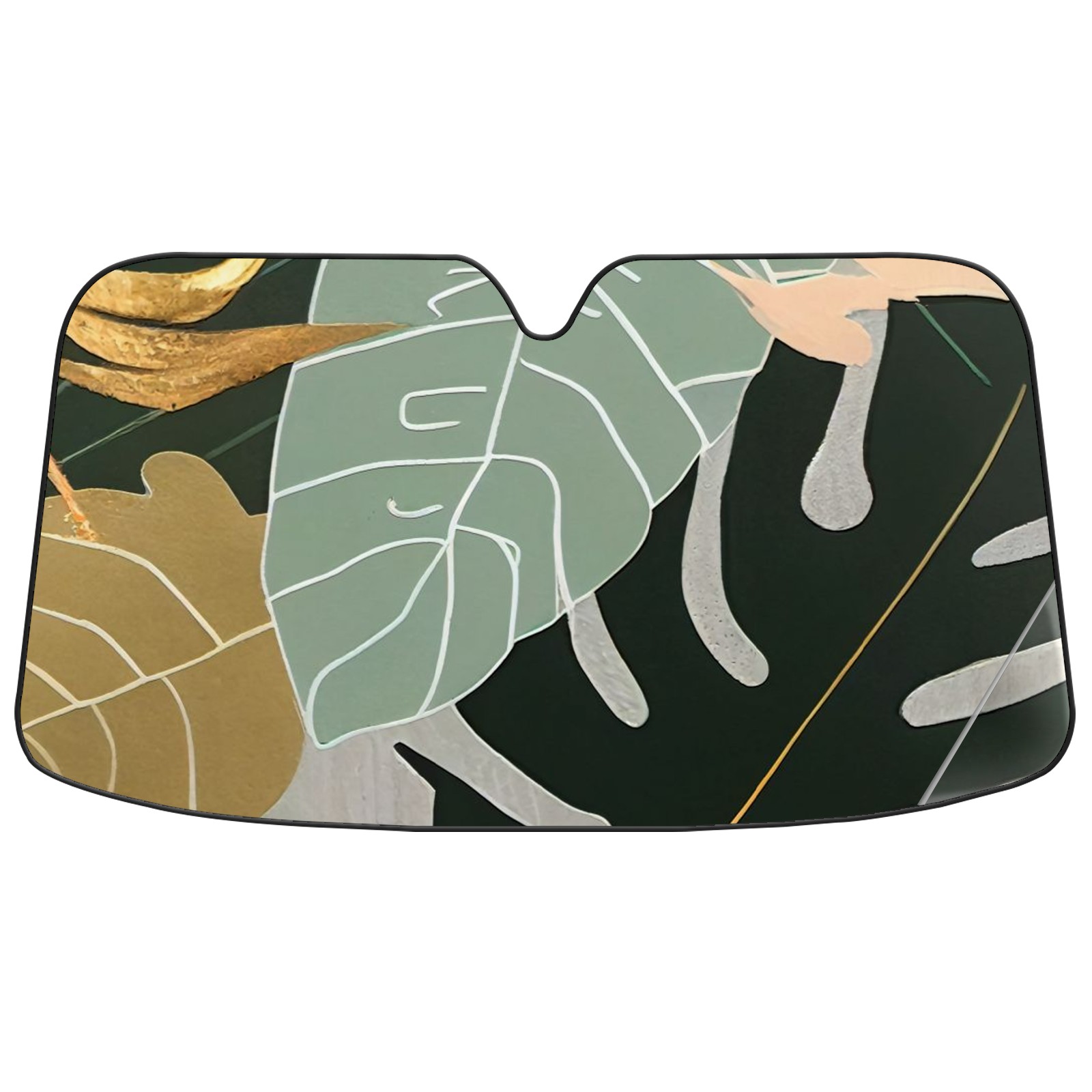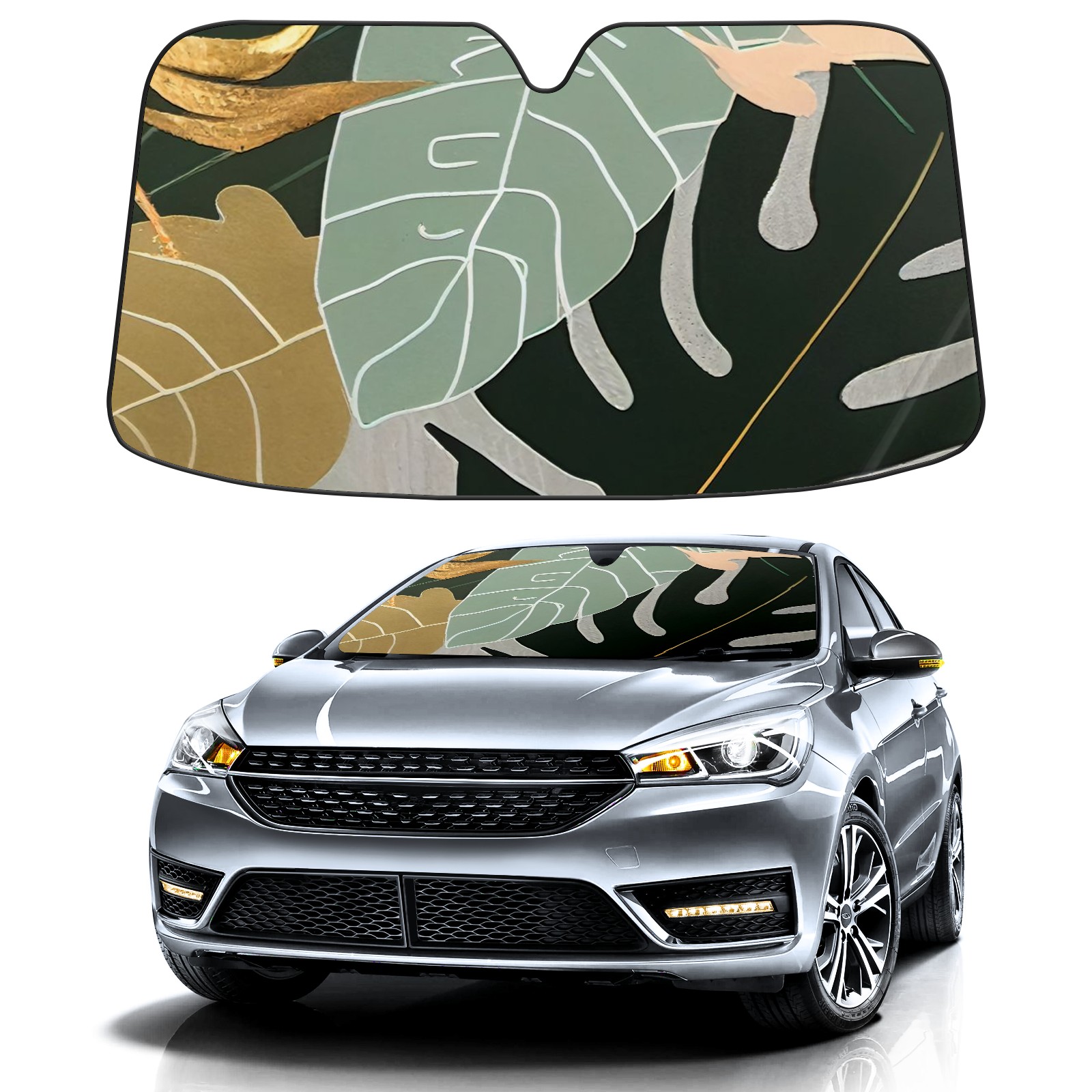 Car Windshield Sun Shade For Front Window Abstract Gold Painting Leaves Foldable Vehicle Windshield Car Sun Visor Covers Automotive Window Protector Car Camping Privacy Sun Blocker