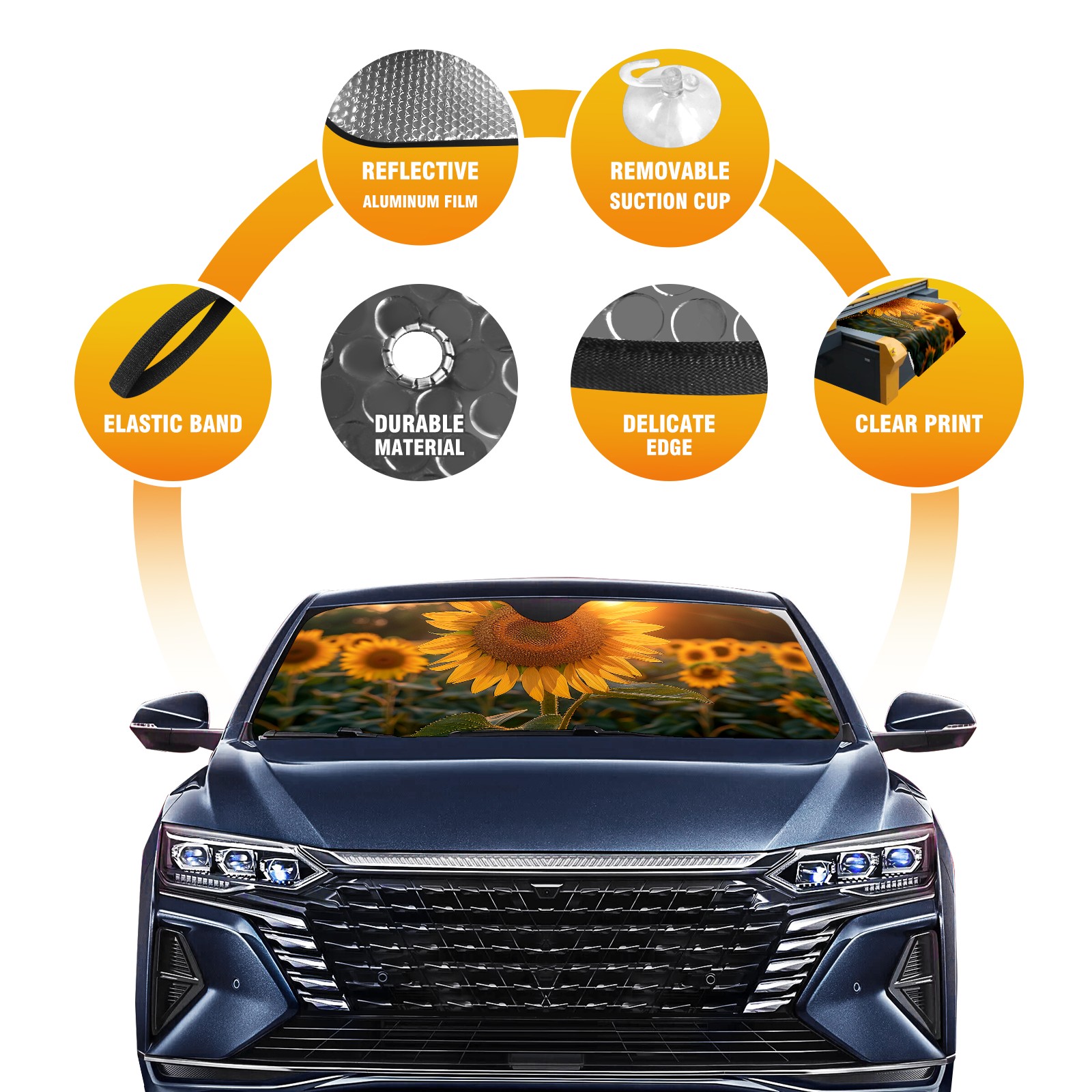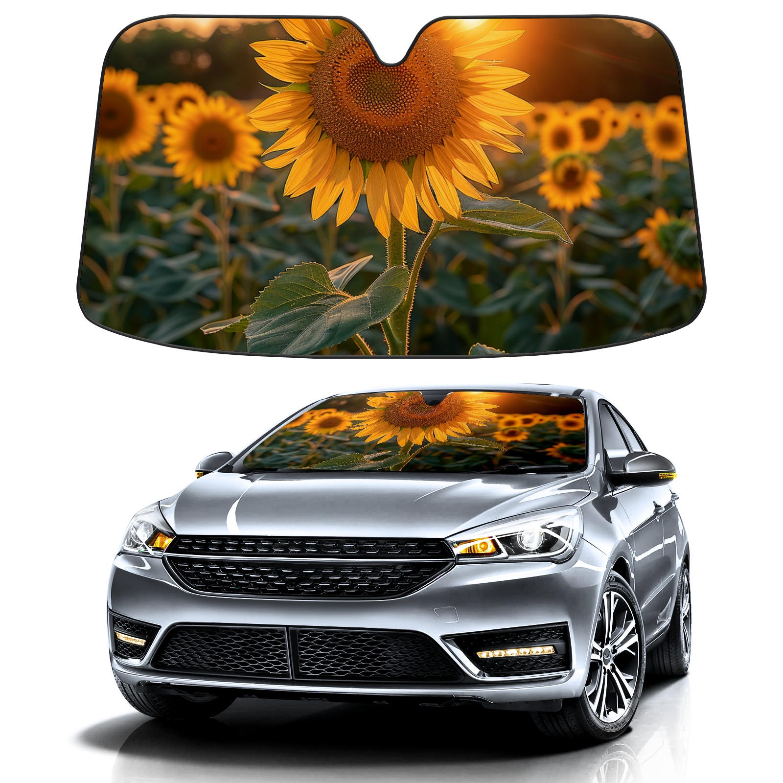 Car Windshield Sun Shade For Front Window Sunflower Foldable Vehicle Windshield Car Sun Visor Covers Automotive Window Protector Car Camping Privacy Sun Blocker