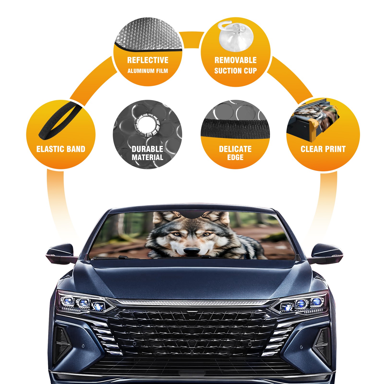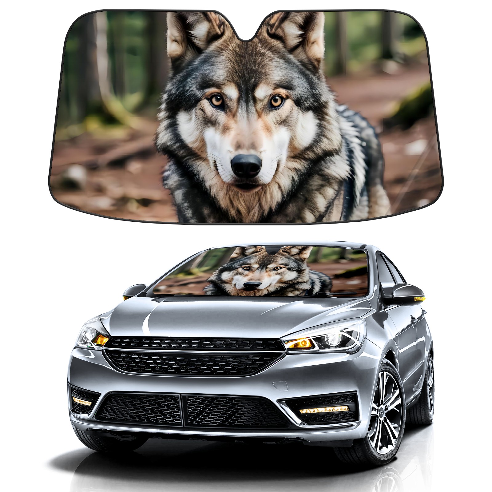 Car Windshield Sun Shade For Front Window Wolf Foldable Vehicle Windshield Car Sun Visor Covers Automotive Window Protector Car Camping Privacy Sun Blocker