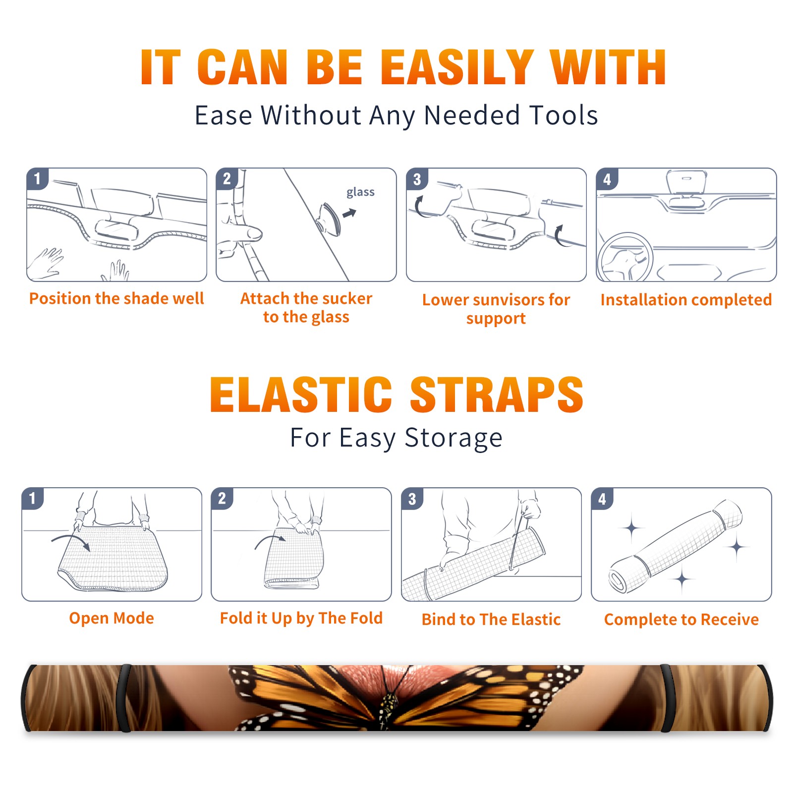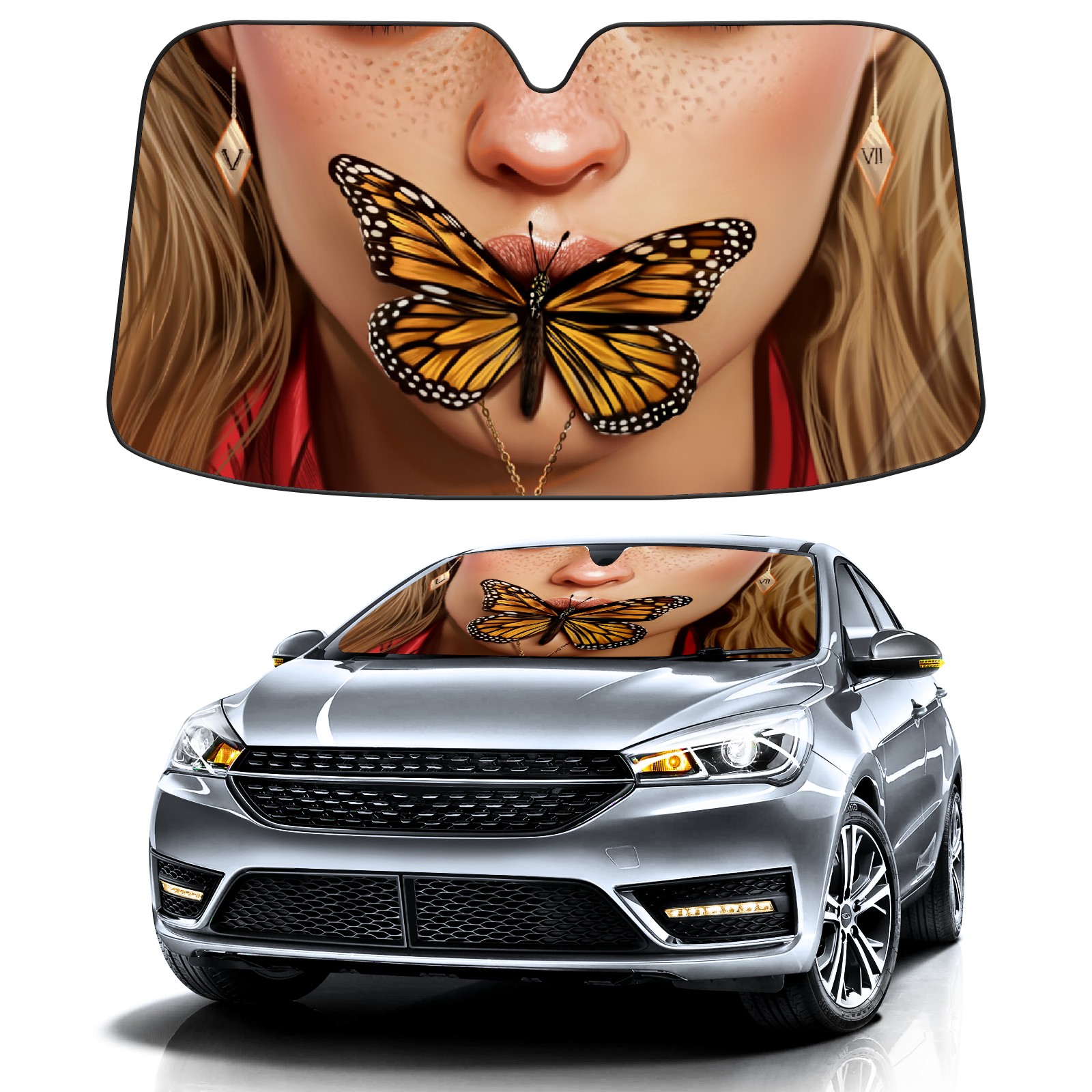 Car Windshield Sun Shade For Front Window Beautiful-girl-butterfly Foldable Vehicle Windshield Car Sun Visor Covers Automotive Window Protector Car Camping Privacy Sun Blocker