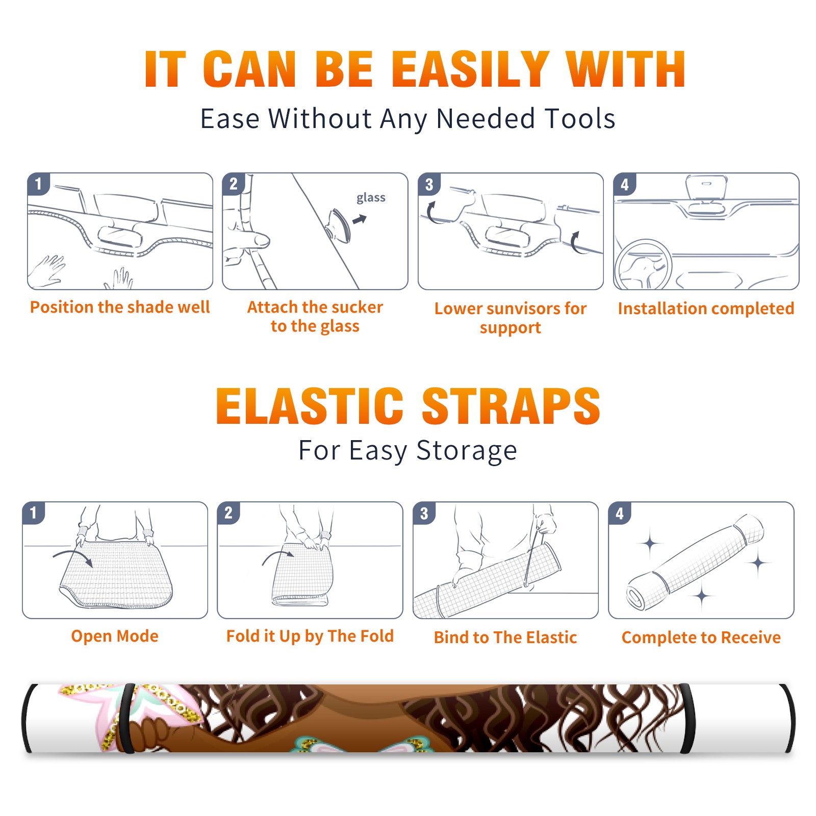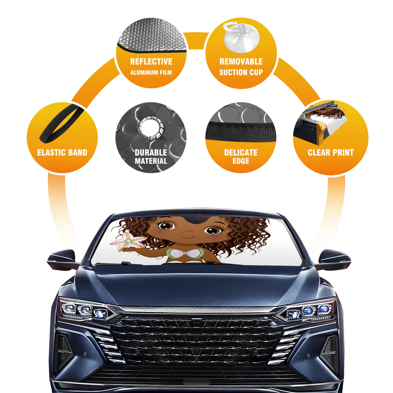 Car Windshield Sun Shade For Front Window Baby Mermaid Girl Foldable Vehicle Windshield Car Sun Visor Covers Automotive Window Protector Car Camping Privacy Sun Blocker