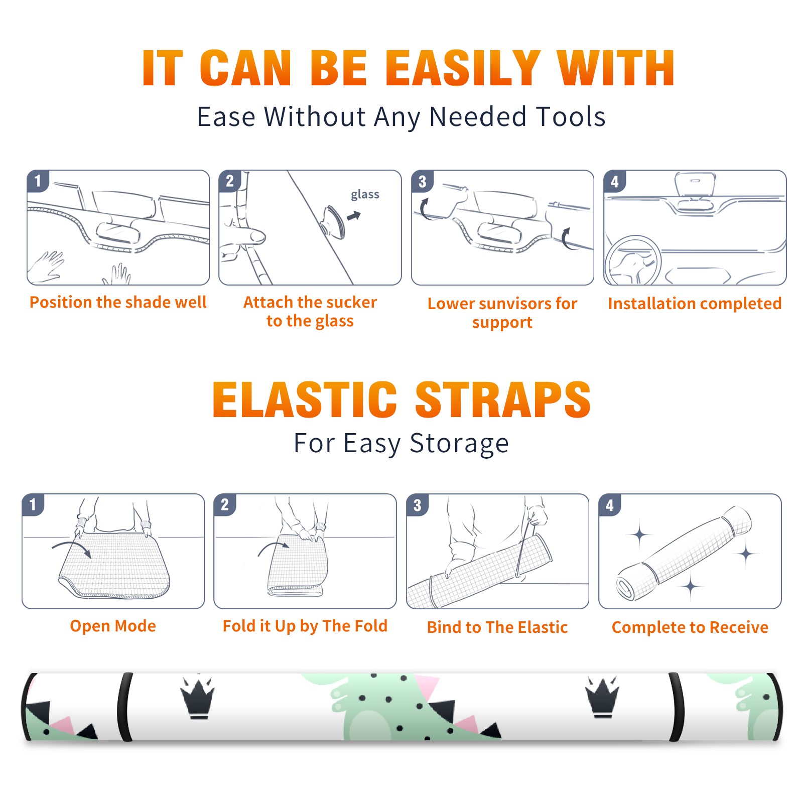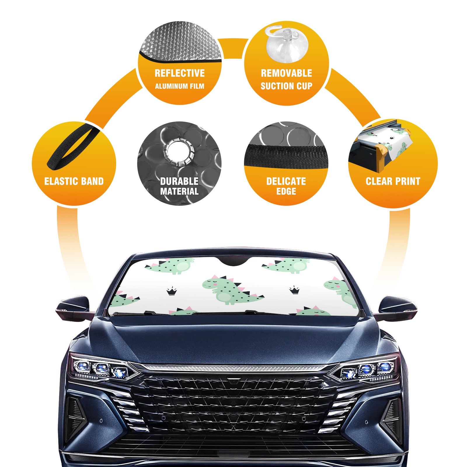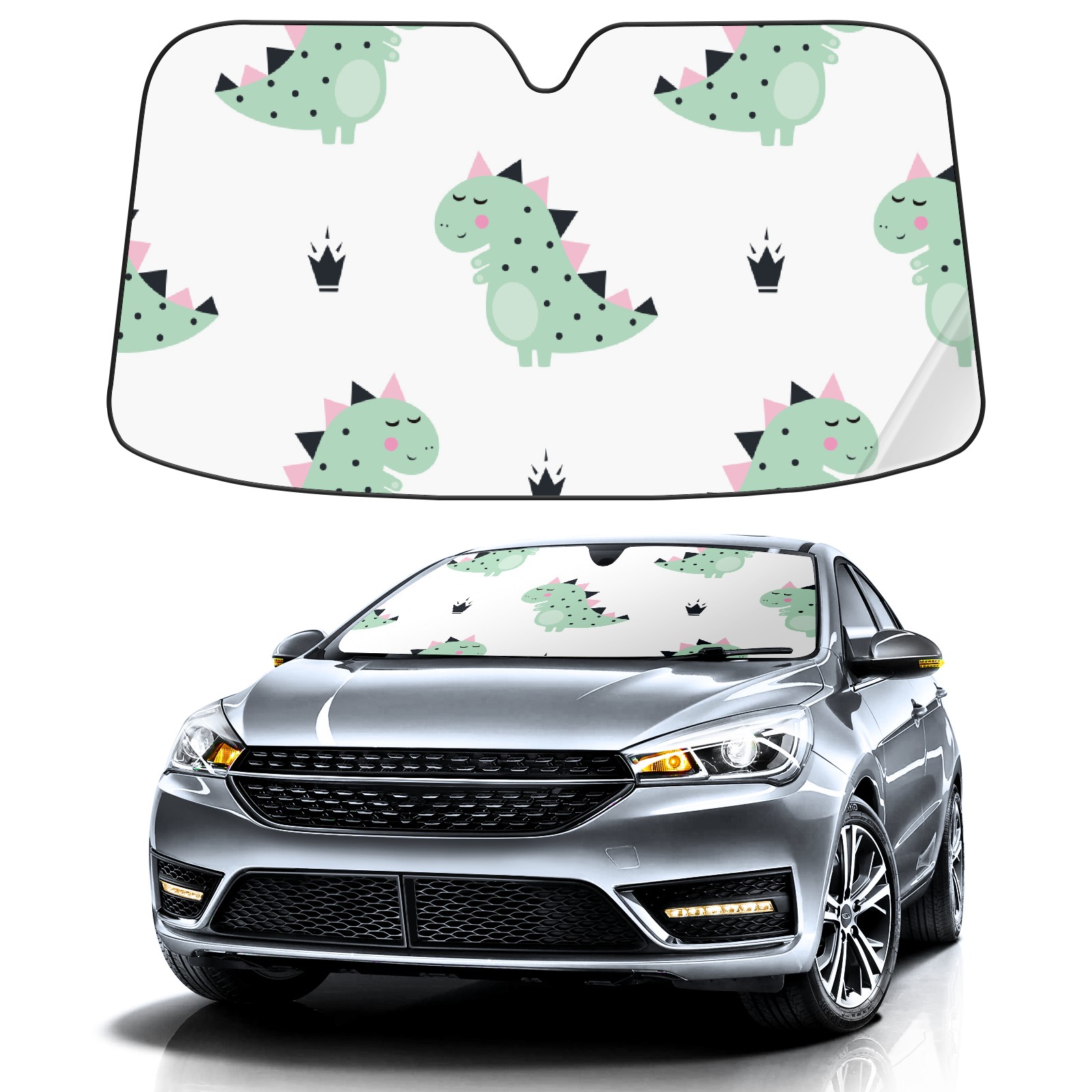 Car Windshield Sun Shade For Front Window Green Cartoon Dinosaur Baby Girls Foldable Vehicle Windshield Car Sun Visor Covers Automotive Window Protector Car Camping Privacy Sun Blocker