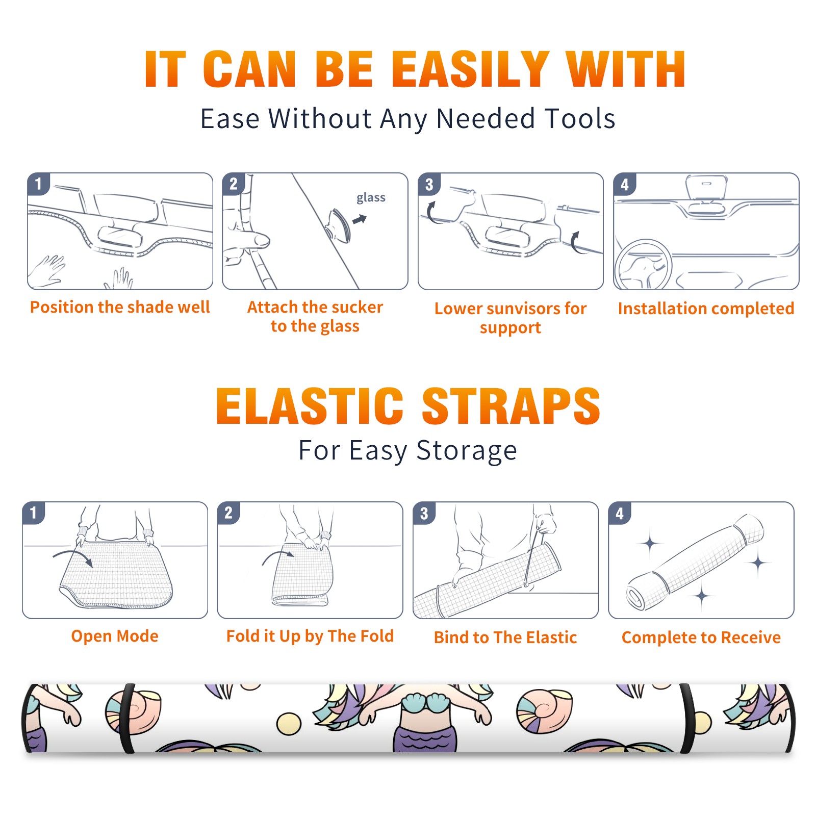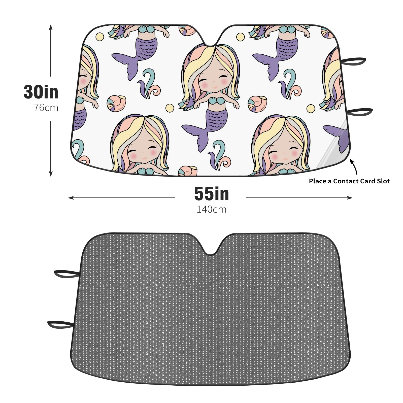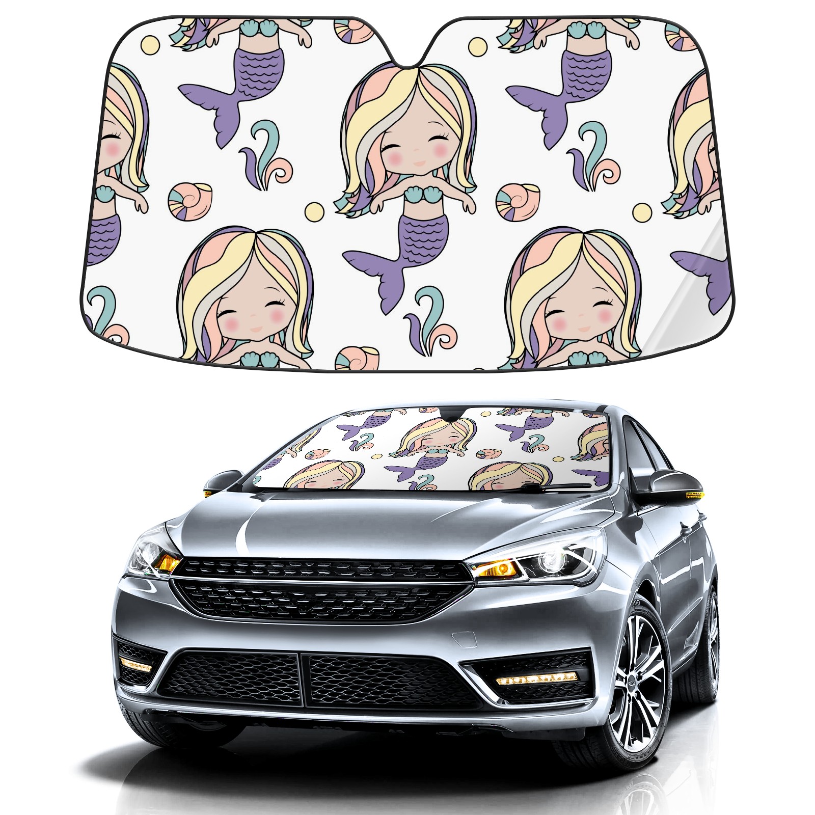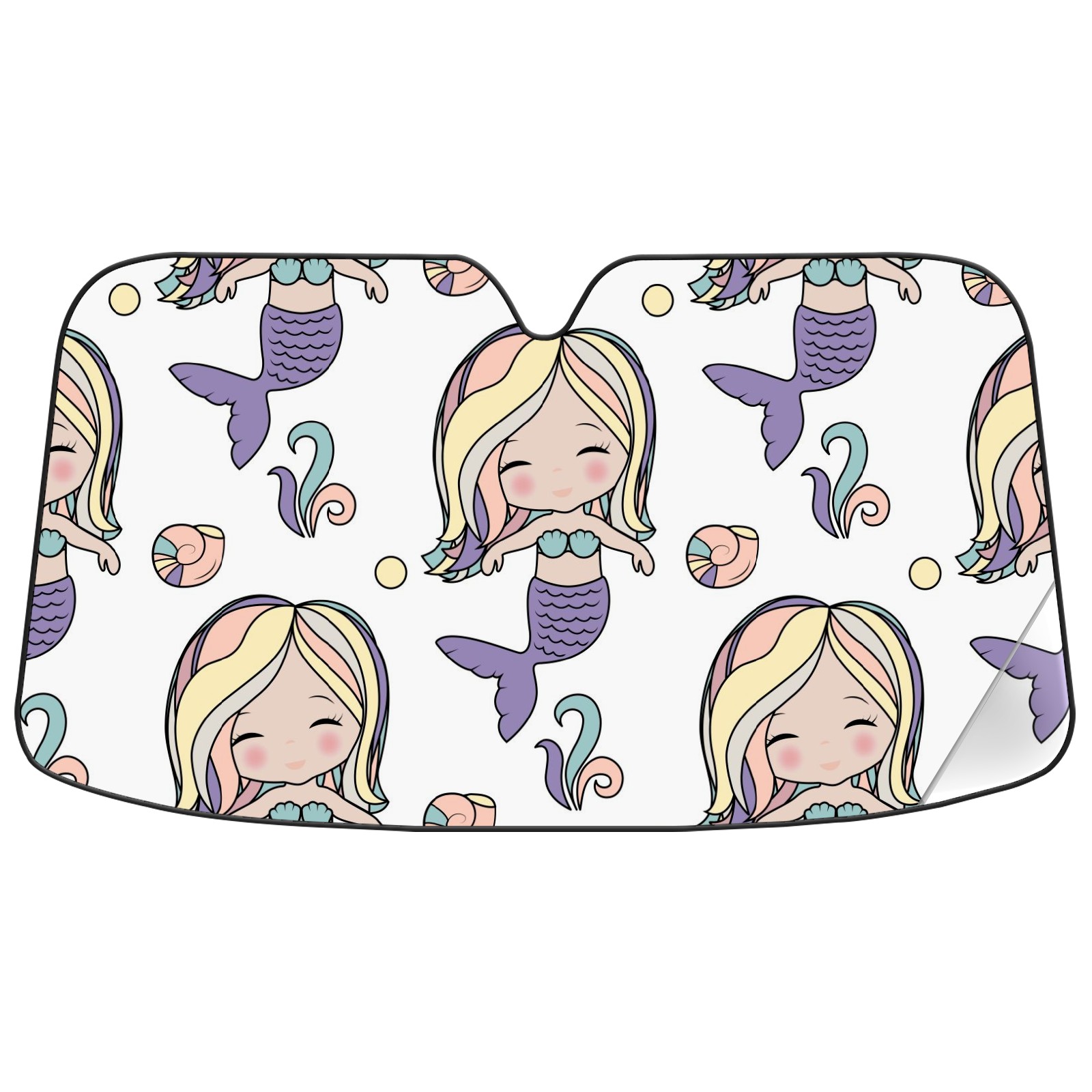 Car Windshield Sun Shade For Front Window Cute Mermaid Girl Pattern Foldable Vehicle Windshield Car Sun Visor Covers Automotive Window Protector Car Camping Privacy Sun Blocker