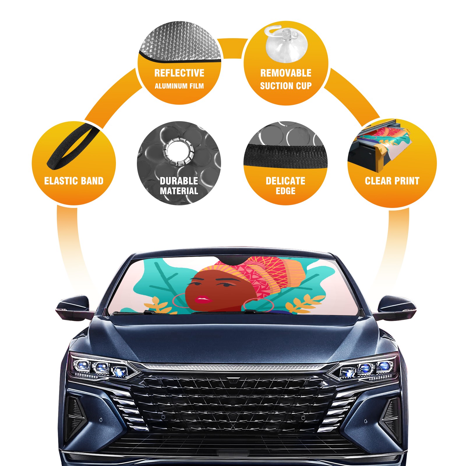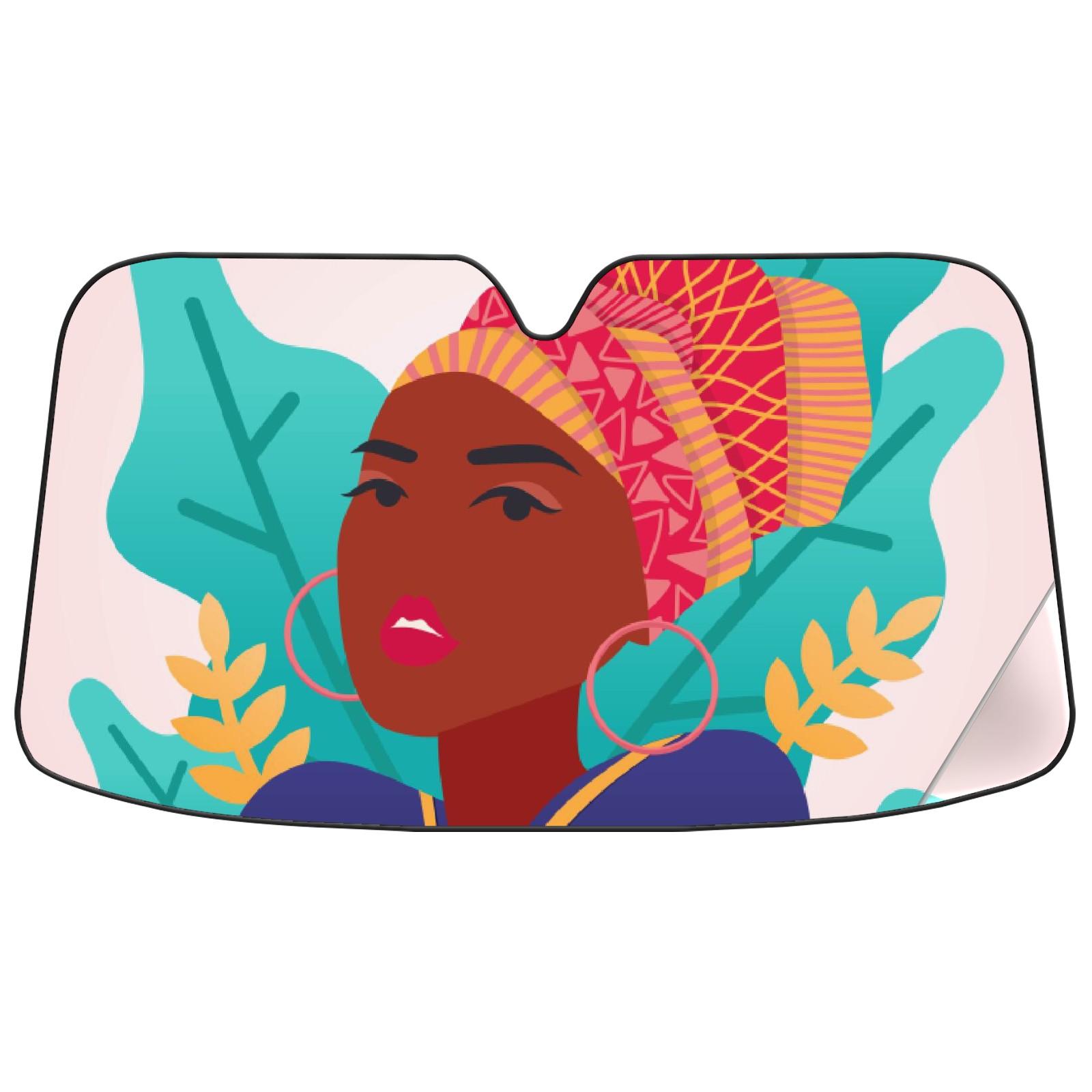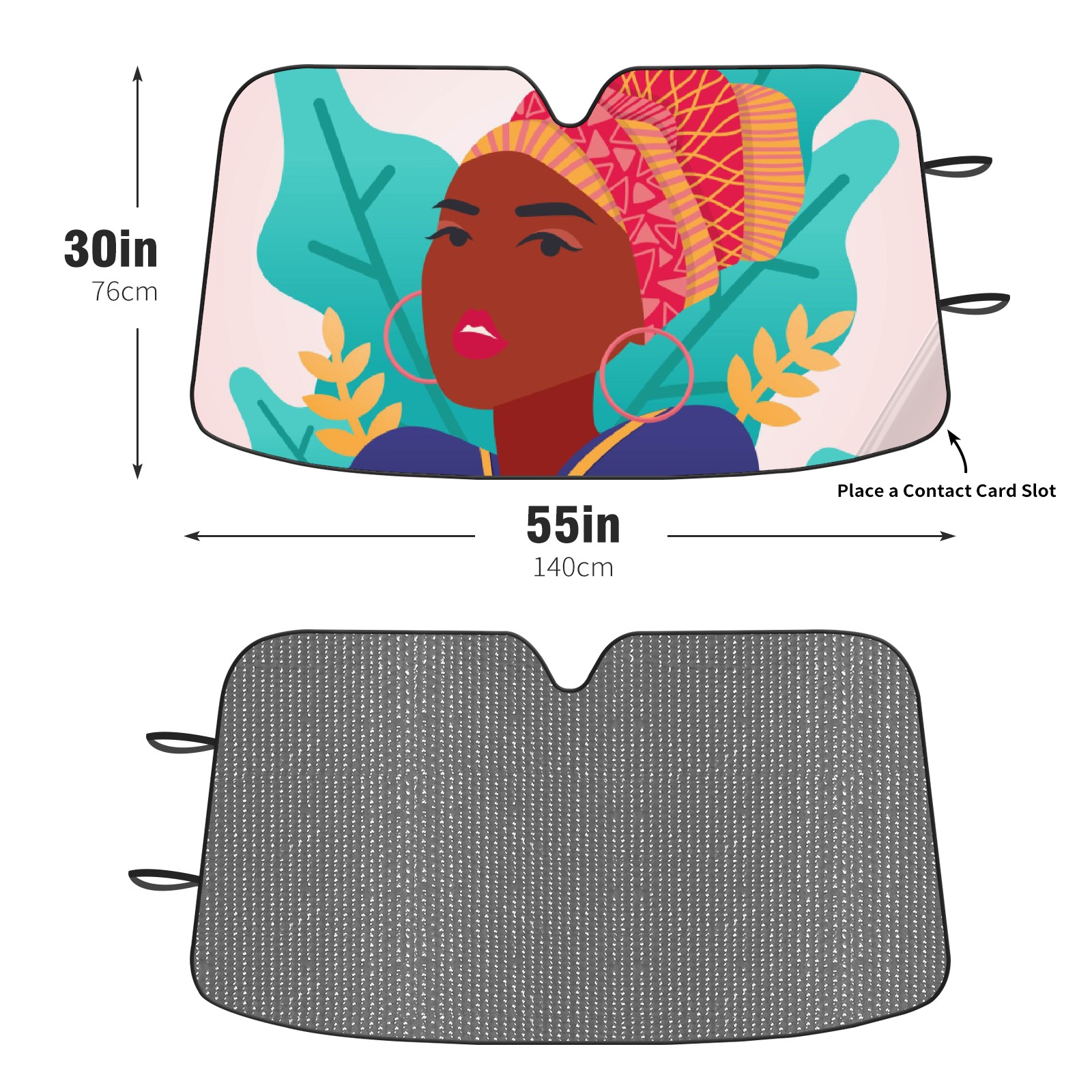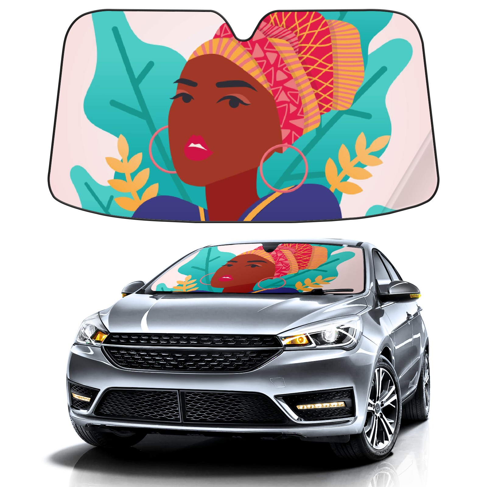 Car Windshield Sun Shade For Front Window African Women Girl Foldable Vehicle Windshield Car Sun Visor Covers Automotive Window Protector Car Camping Privacy Sun Blocker