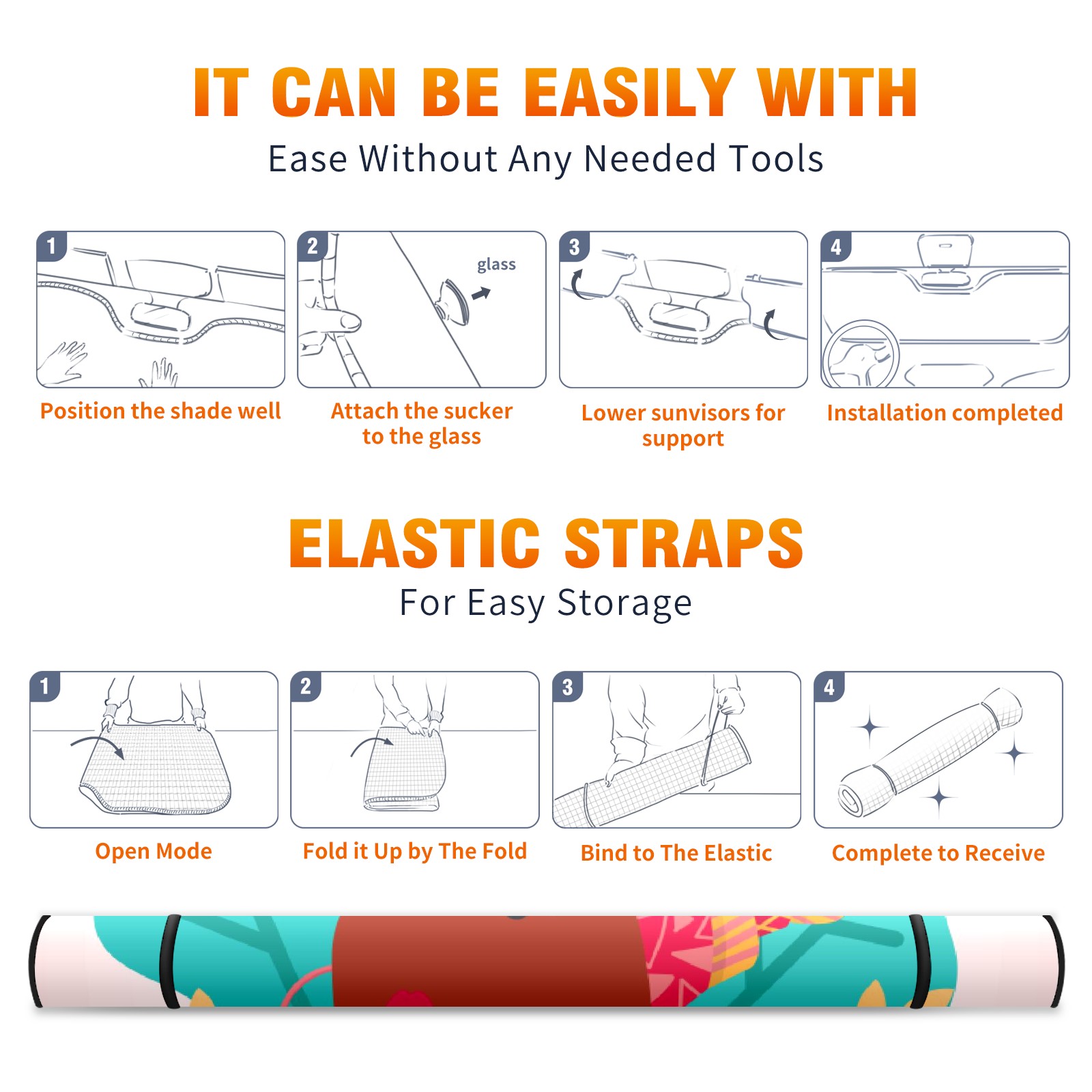 • Diameter /Size 63"L x 33.5"W Made from excellent materials which makes it sturdy and protects the car from the sun. Easy to use and pack. Makes the interior of the car cooler.You can easily stash the sunshade in the storage bag or store long term.It open and closes easy. Also the leather storage bag is durable and easy to put the umbrella back into.This windshield sunshade provides complete coverage and keeps your car interior cool under direct sun. It is easy to open and position under the windshield and around the rear-view mirror. Makes Your Car Easy To Identify, Perfect For Finding Your Car In Crowded Parking Lots And Garages.Great Choice: It Is A Great Gift For Dad, Boyfriend, Brother, Brother And Uncle, Friends, Classmates, Family And So On. Notice: Due To Difference Computer Monitors, The Color Maybe Slightly Different From Picture. As Different Measurement Methods, Measurement Data Will Float Within 2%.I Hope You Understand. If You Have Any Question About The Item Please Do Not Hesitate To Contact Us Immediately And We Will Give You A Satisfactory Reply Within 24 Hours.